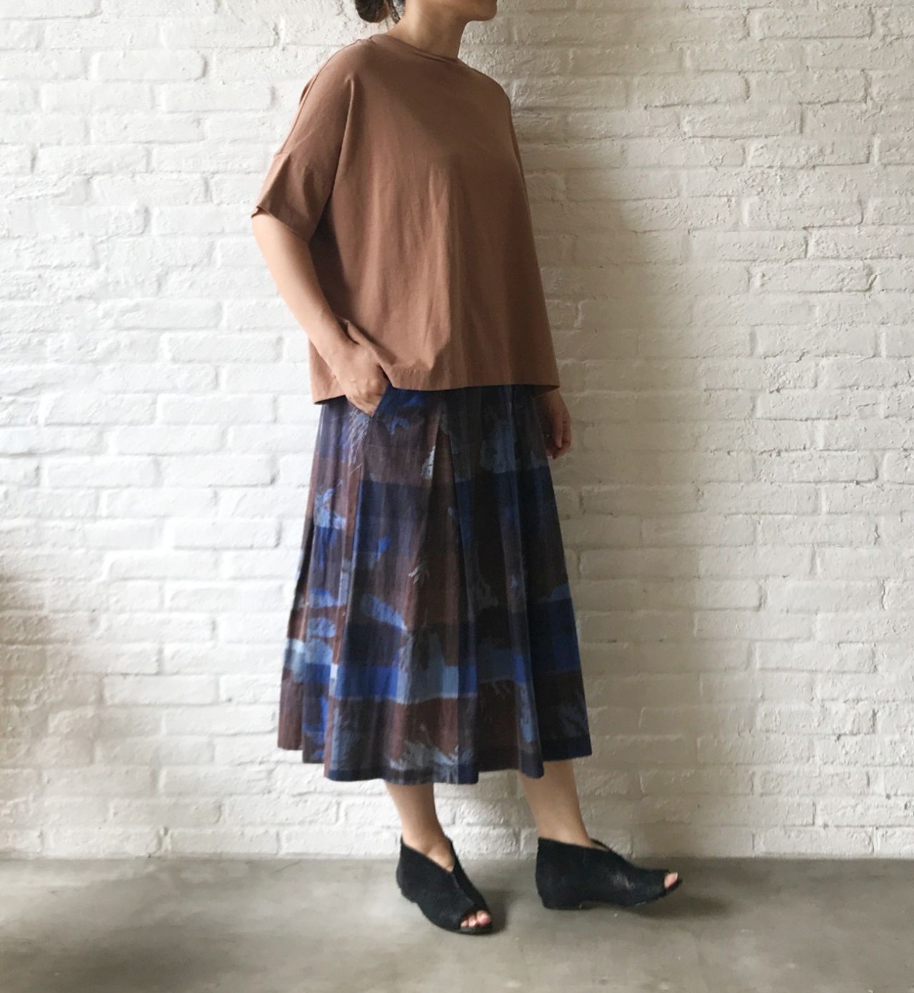no.7022【期間限定!20%OFF】先染めチェック染料プリント スカート