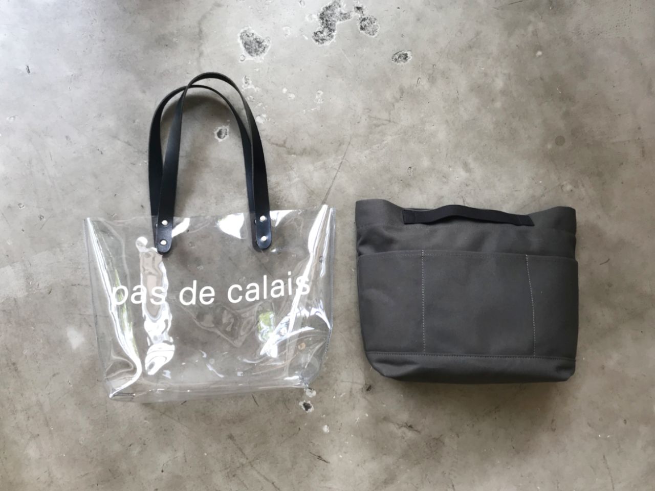 雑誌もお弁当も入るトートバッグは、昨日 再入荷。