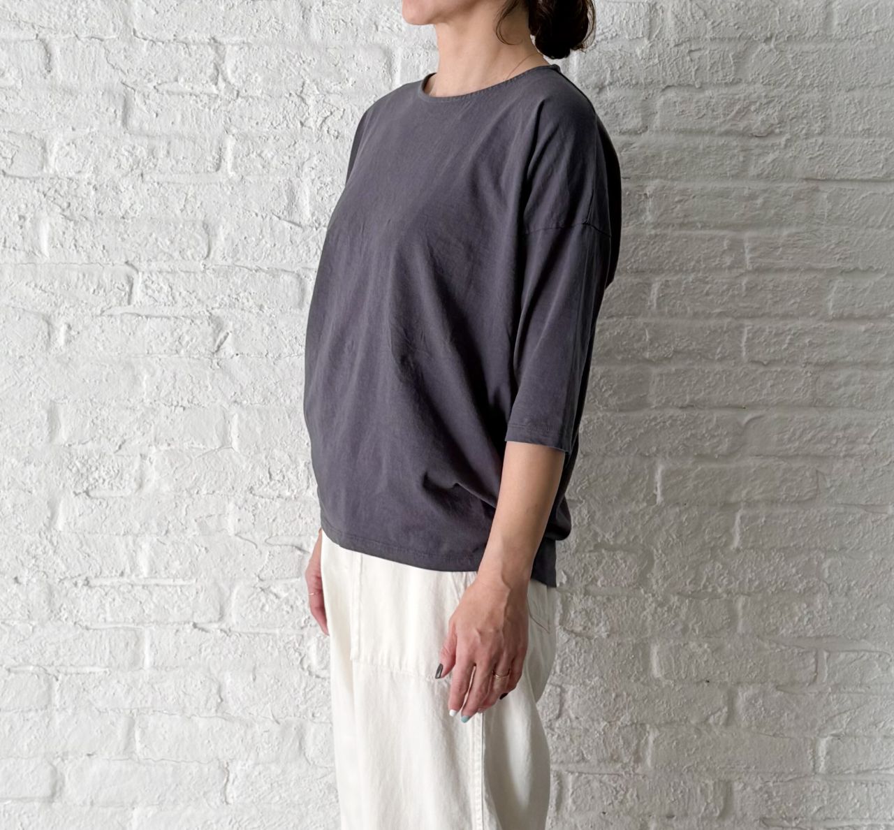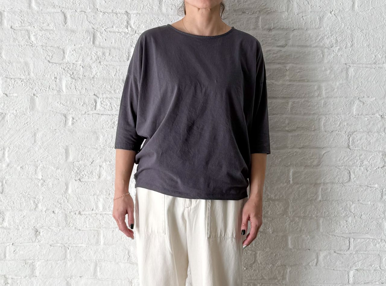 着用したチャコールは、ネイビーも感じるようなニュアンスカラー。