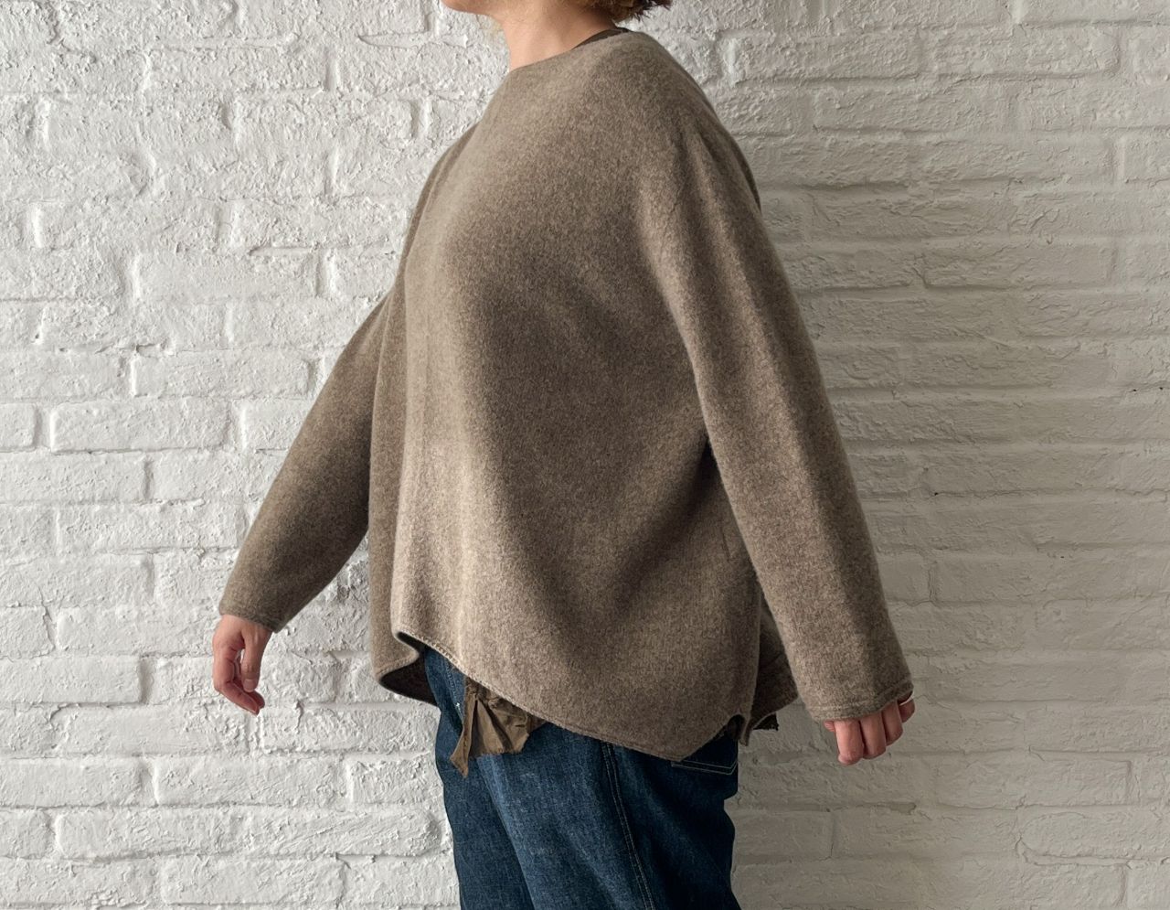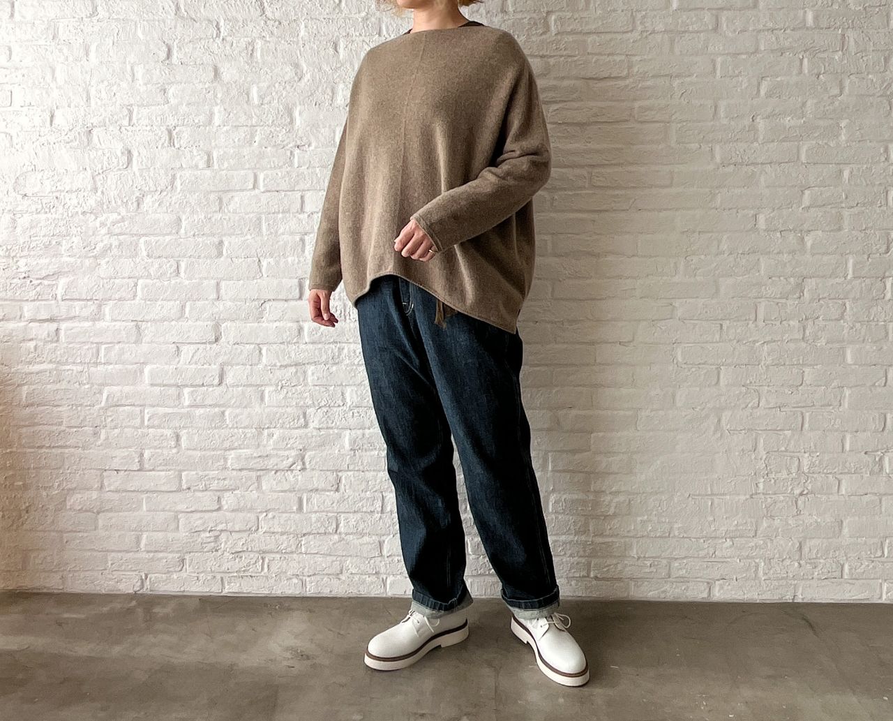 お顔周りがすっきりするニットは、ゆったりしたシルエットです。