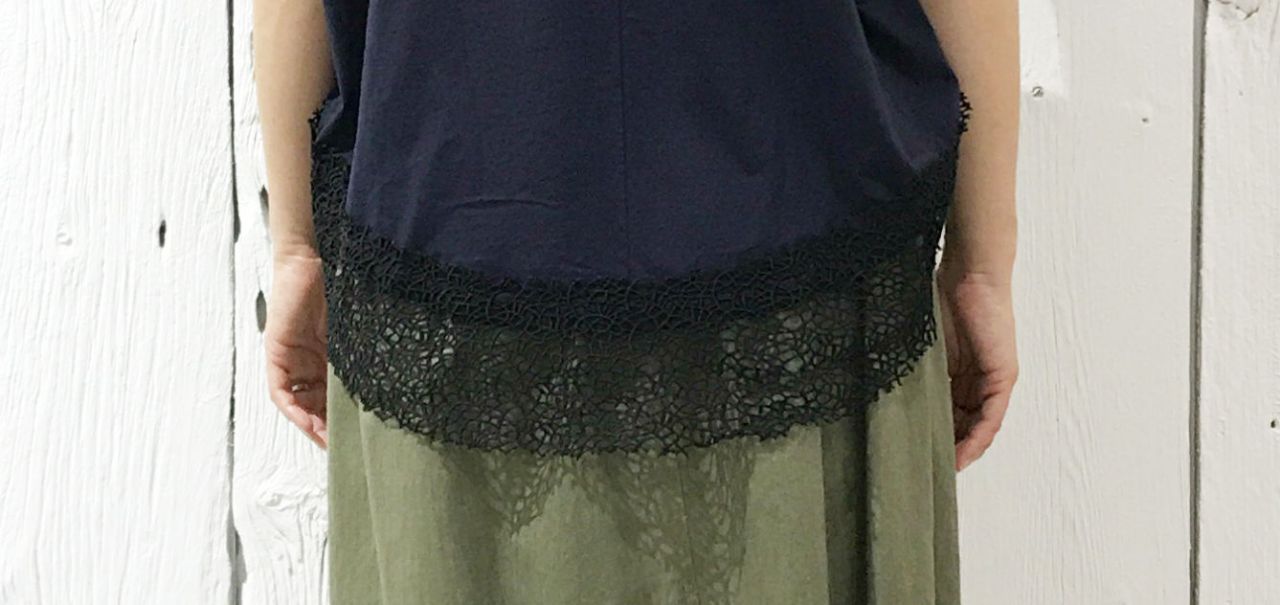 さらに、後裾には太めのレース使いで透け感がポイント。