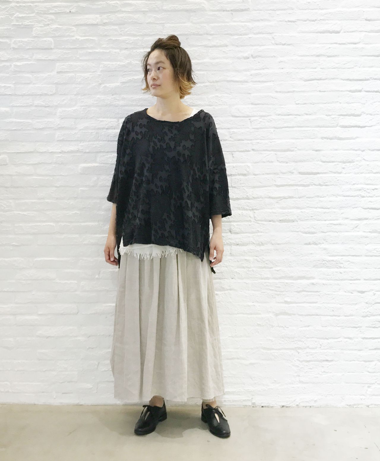 ゆるっとしたシルエットのプルオーバー。