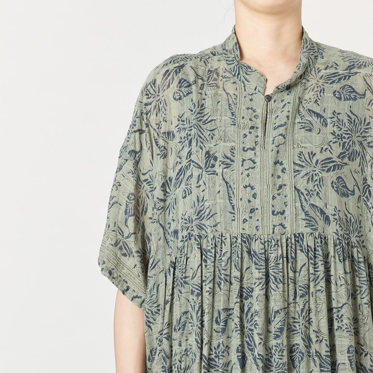 コットン×キュプラの素材でキュプラのサラッとした爽やかさとひんやりとした肌触り、初夏にぴったりな素材で作りました。