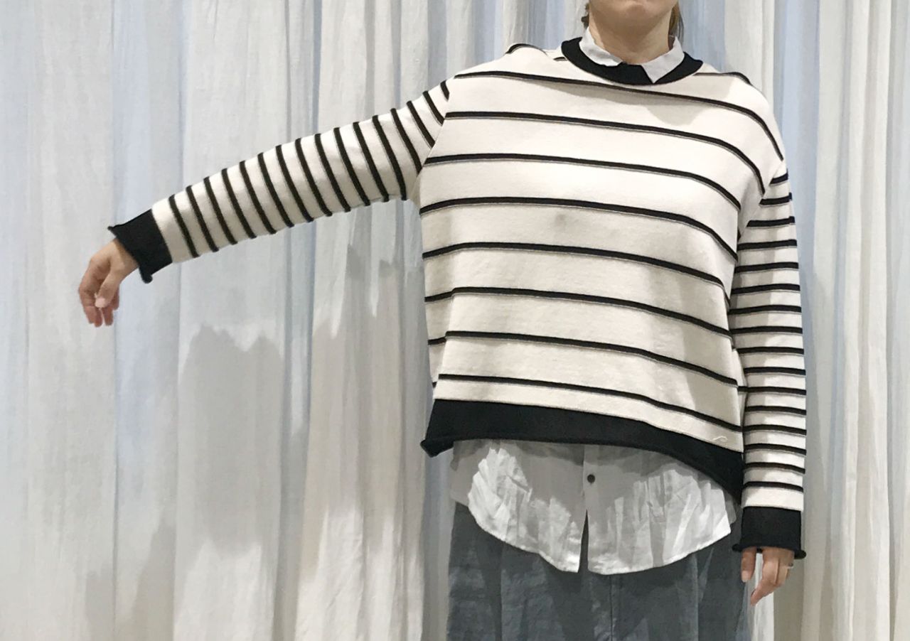 ボーダーの太さに変化を持たせていて、店頭でも人気のアイテムです。