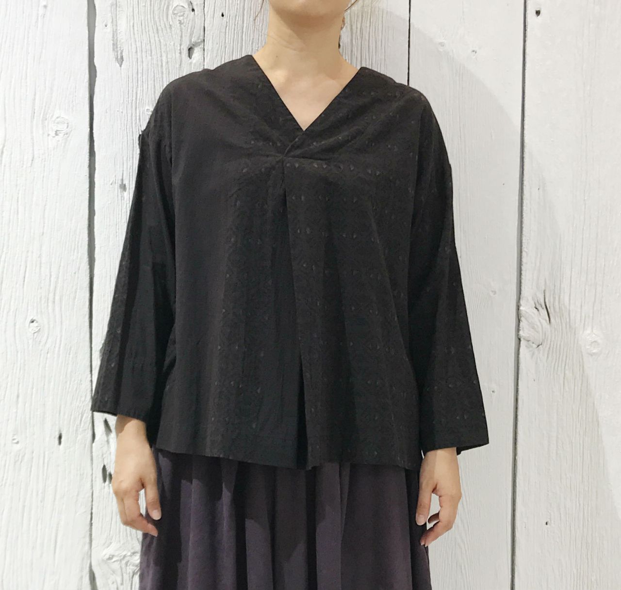 以前のブログ ではシャツワンピースをご紹介しましたが、同じブロックプリントのブラウス。