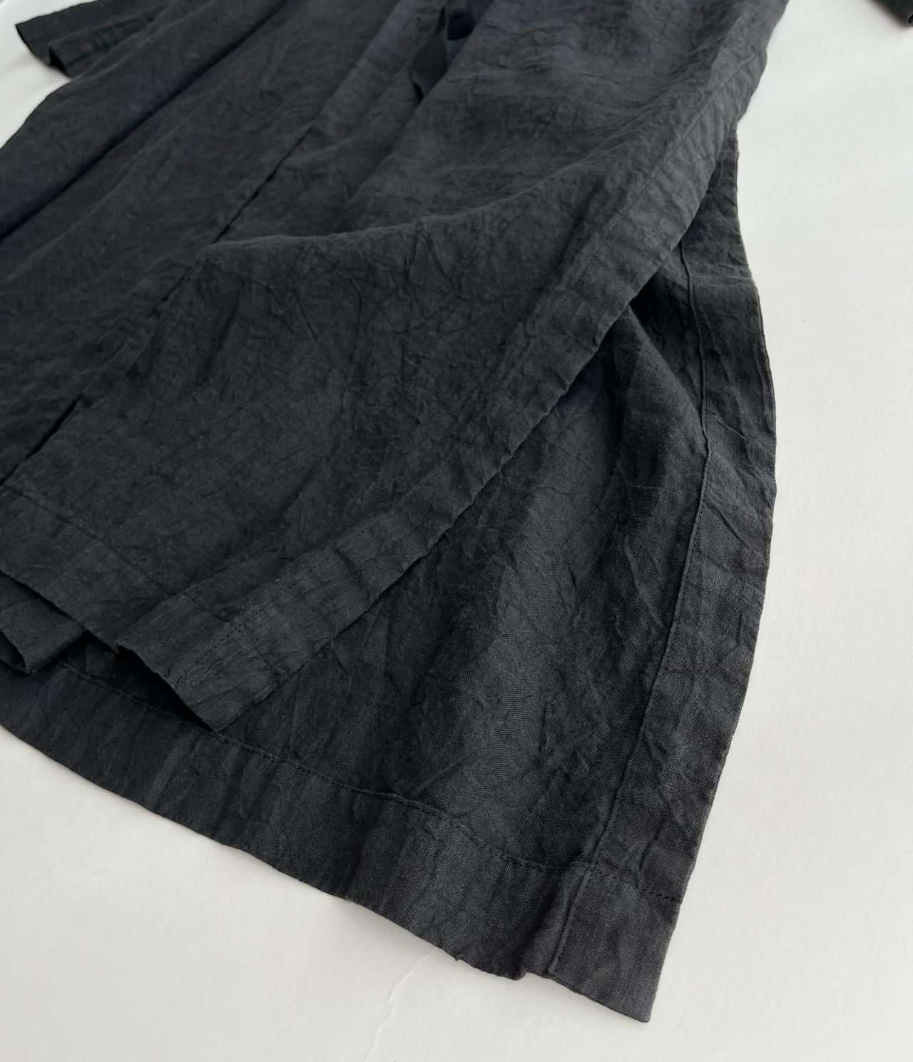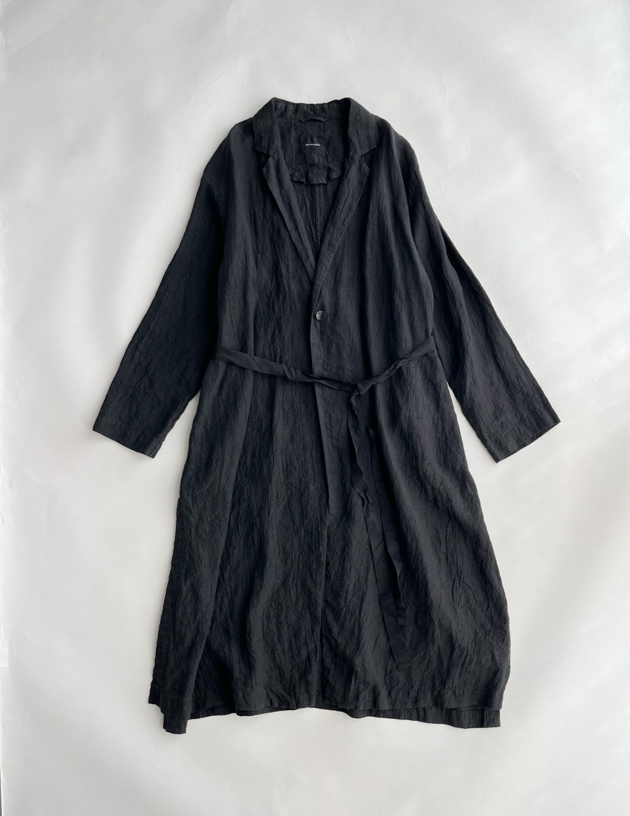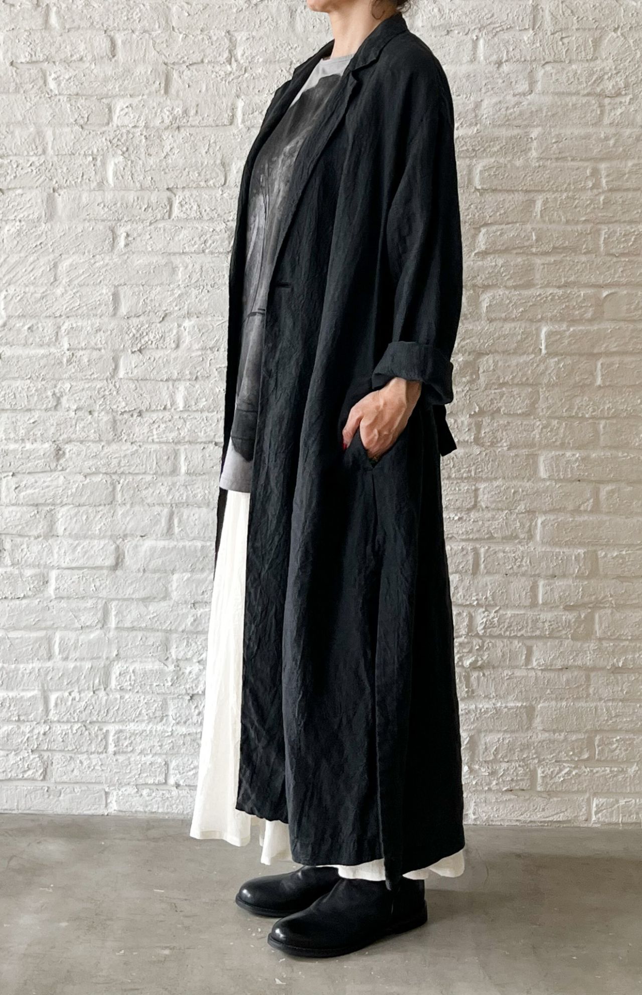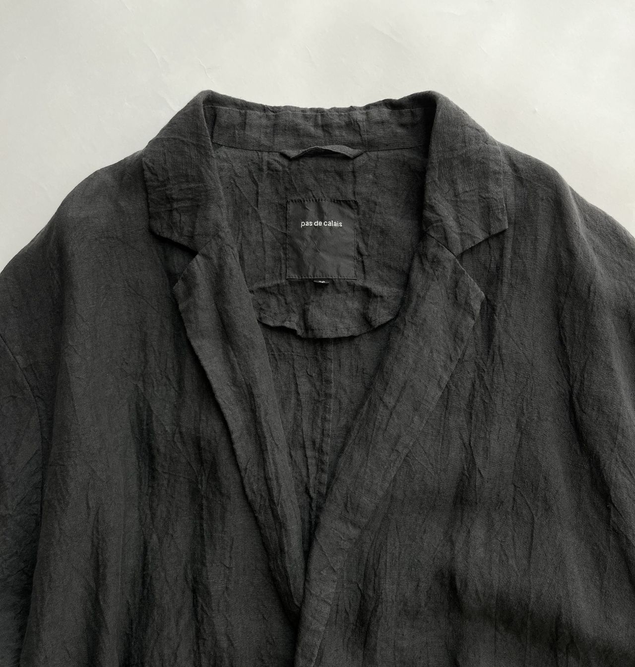 細めのテーラード襟や深いスリットデザインも、ラフな雰囲気が出て普段着使いに◎。