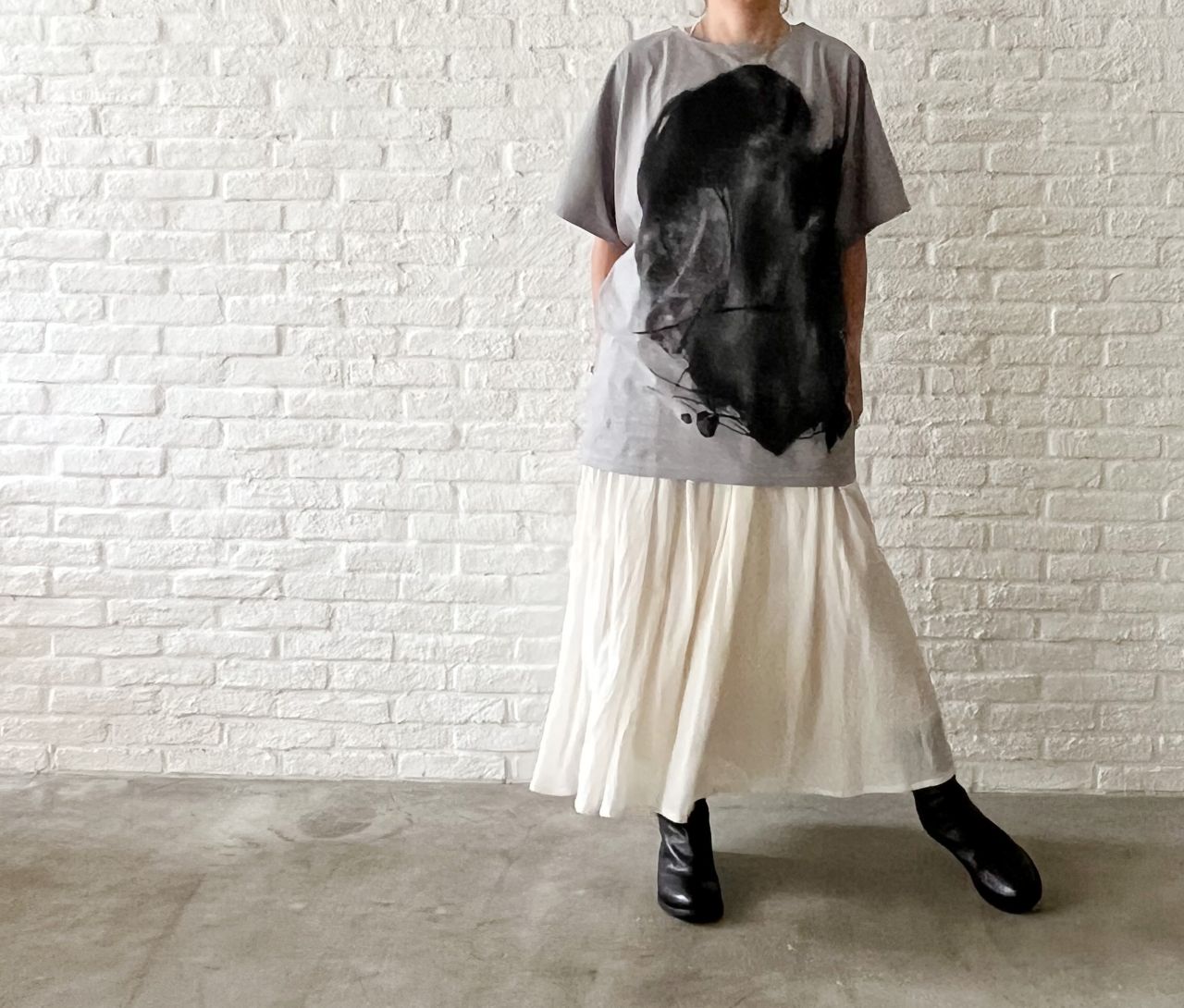 染めや総プリントはあるものの、パドカレではいままであまりなかったモチーフTシャツ。
