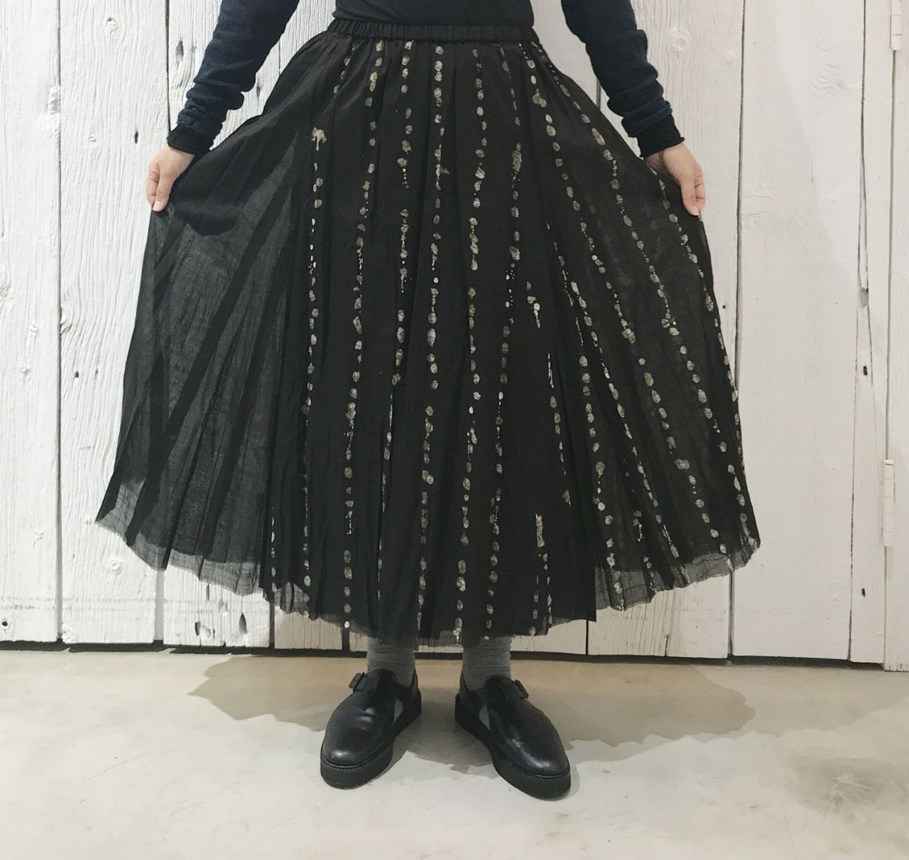 no.7914【期間限定!10%OFF】コットンラミースラブローン点々ろうけつ染め スカート