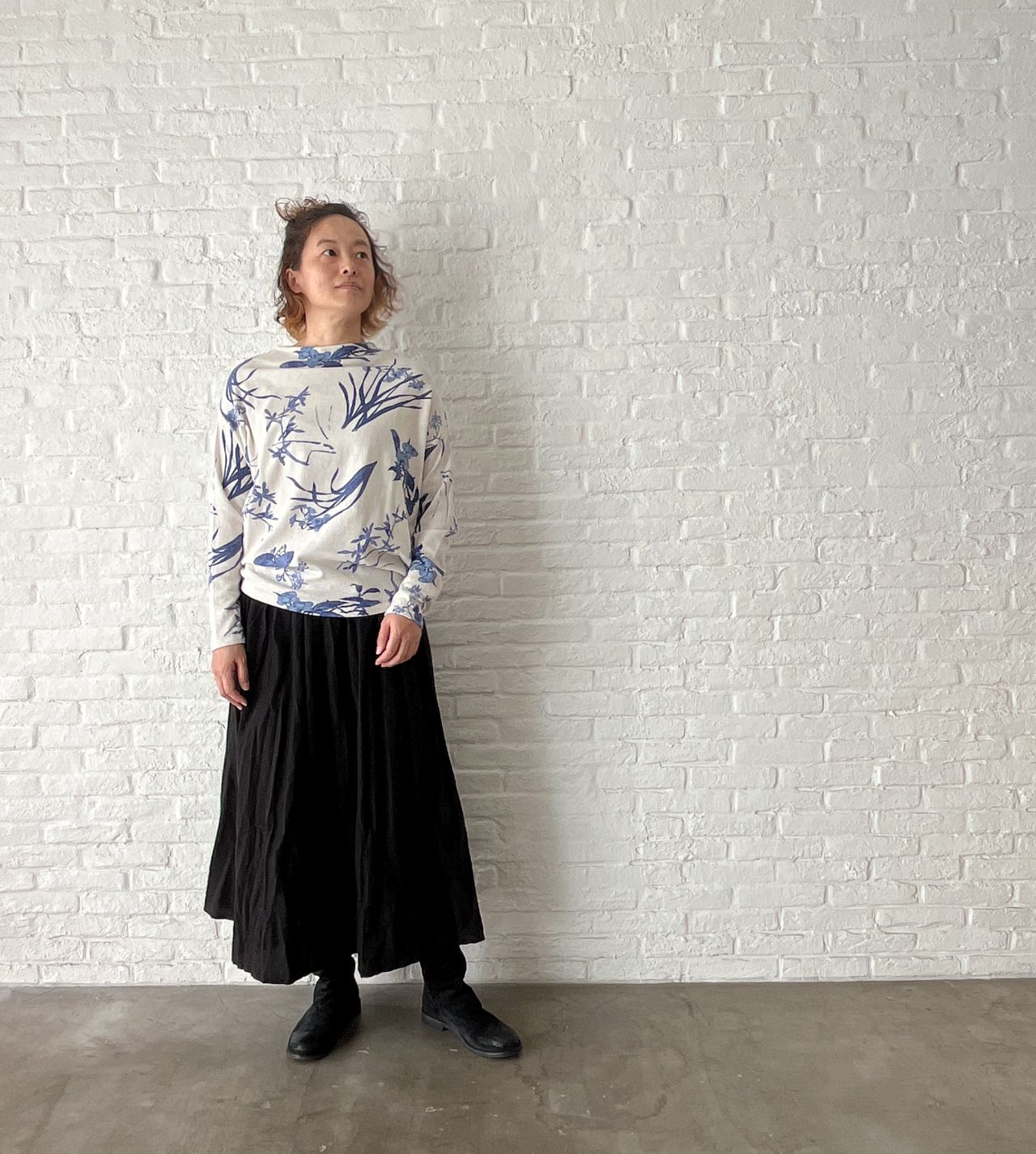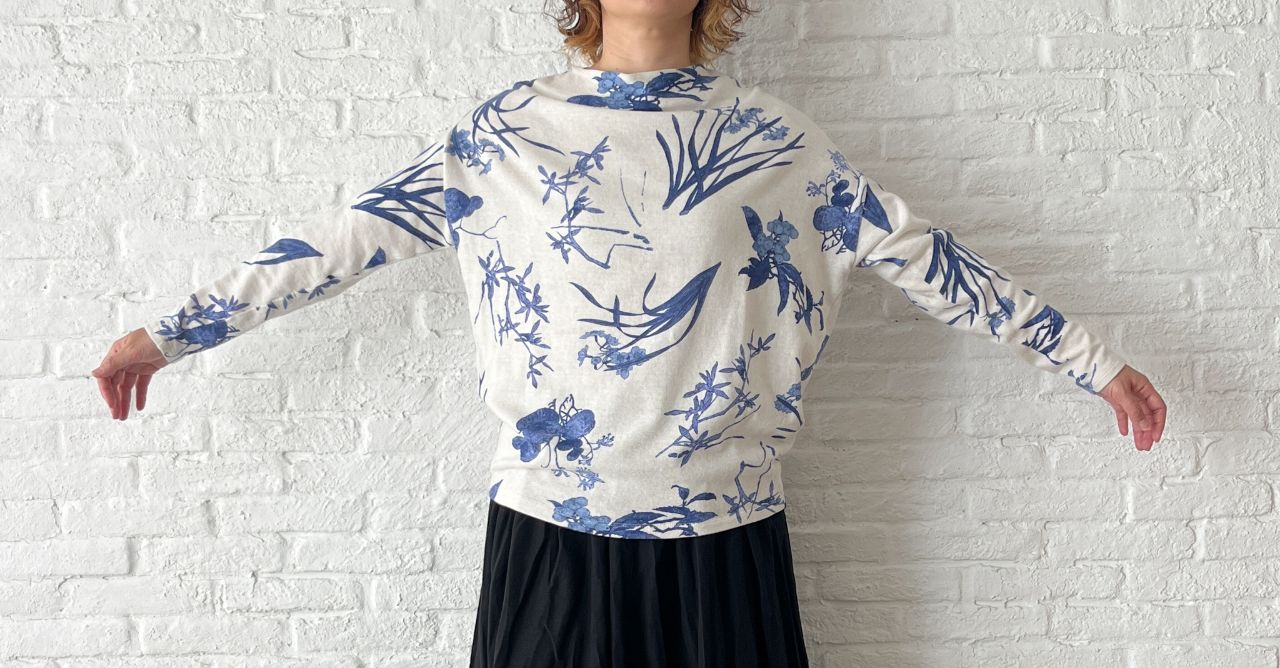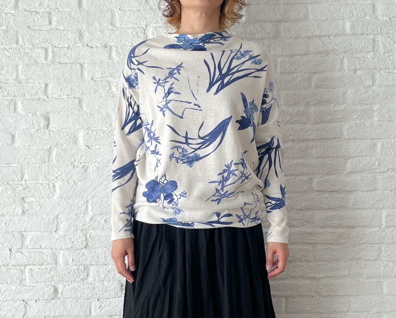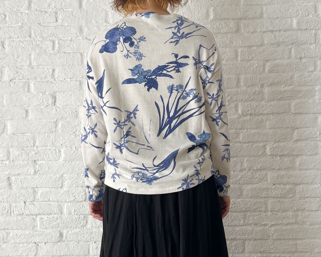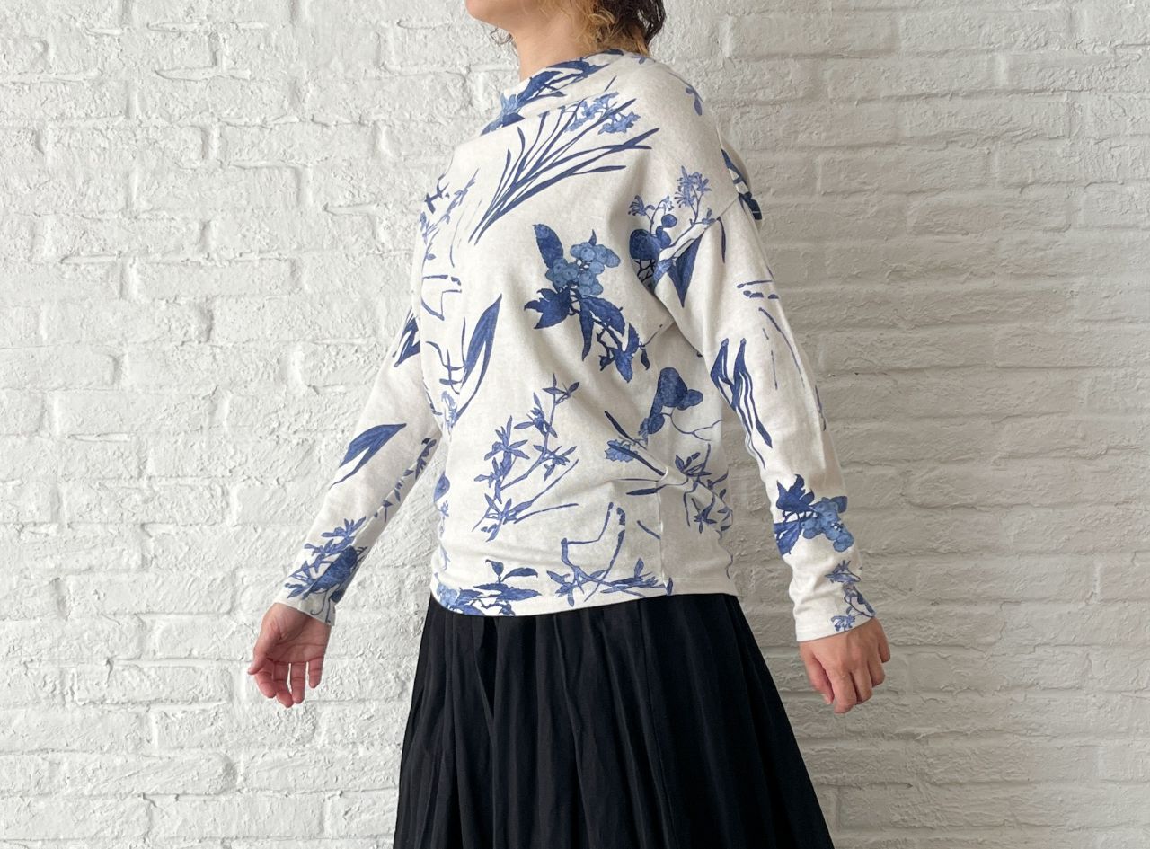 Japonism flowerプリント・ナチュラルネップムラ天竺 プルオーバー