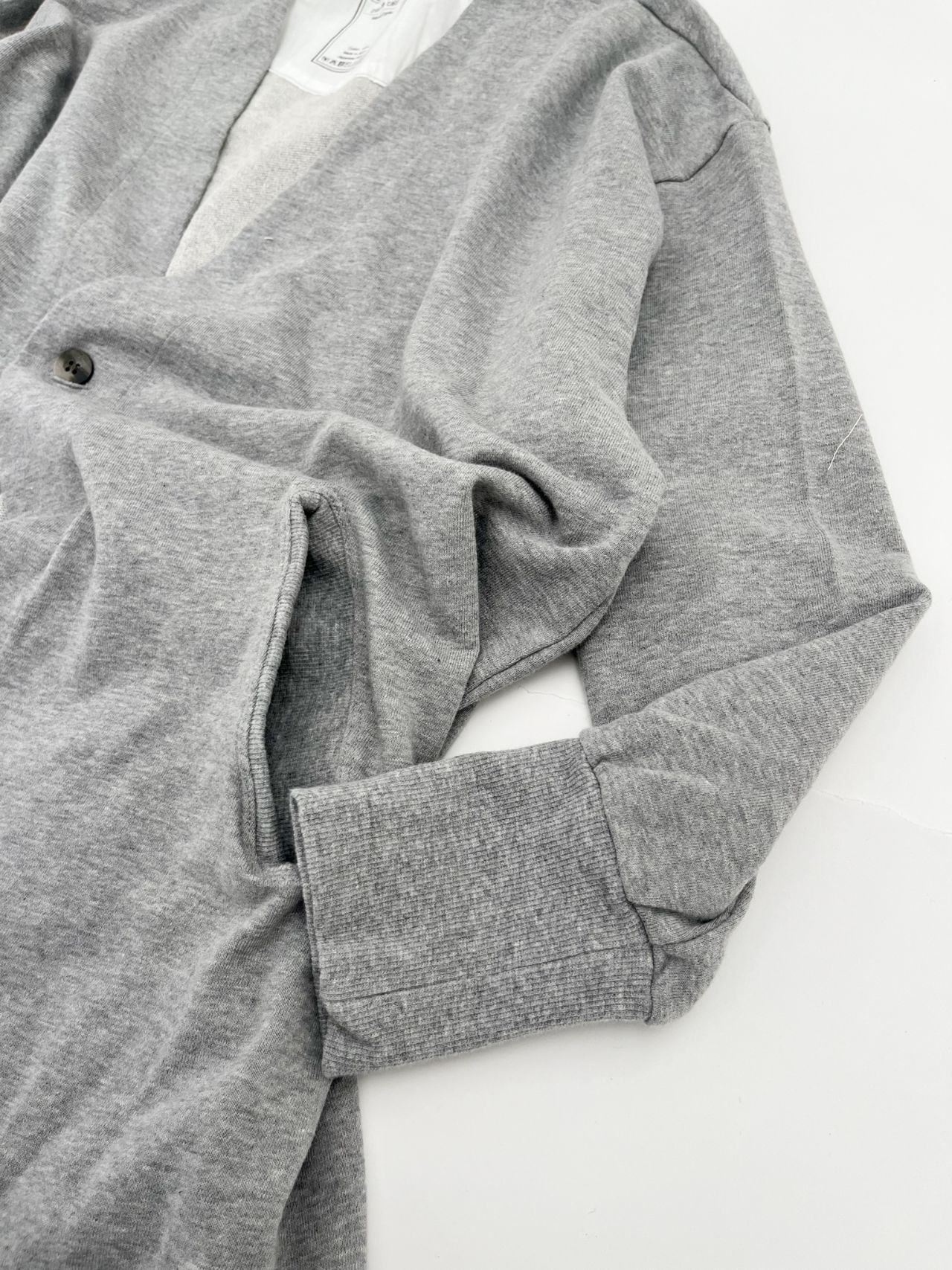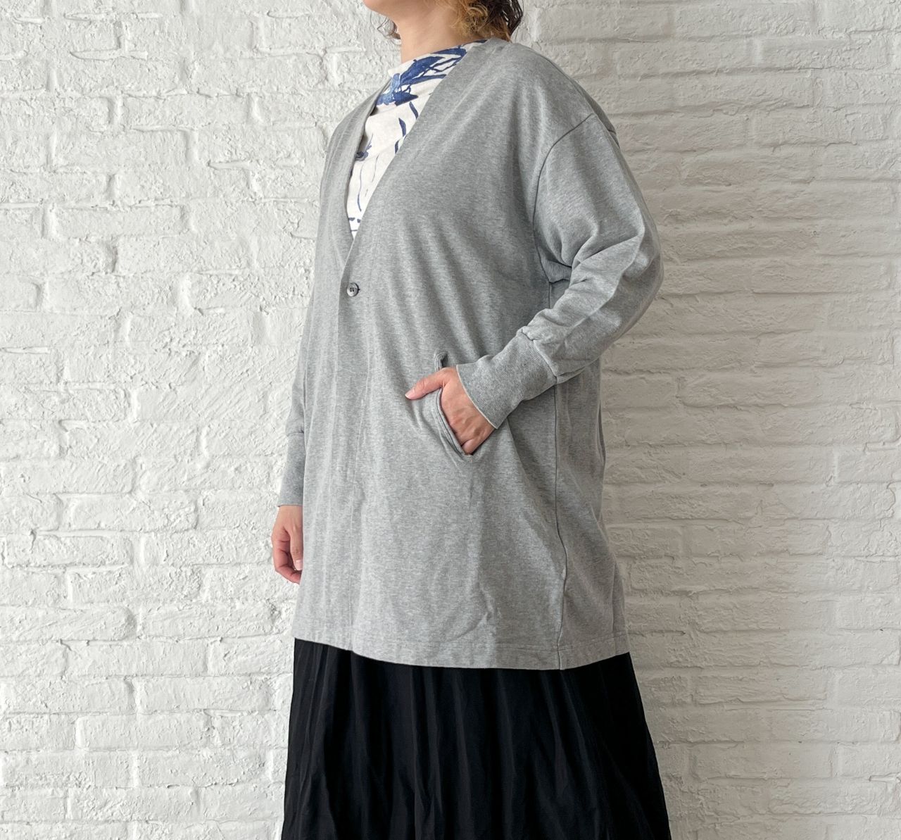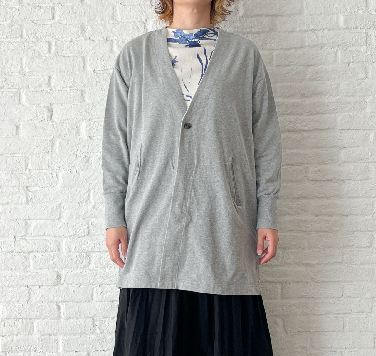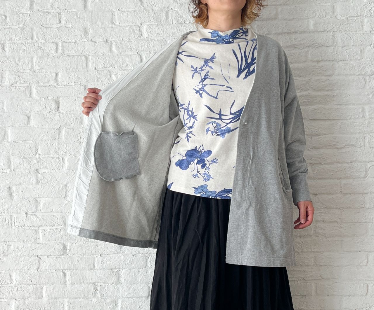端境期の不安定な時期に便利な、厚すぎず薄すぎない、アウターインにもできるしアウターとしても着ていただけて便利です。