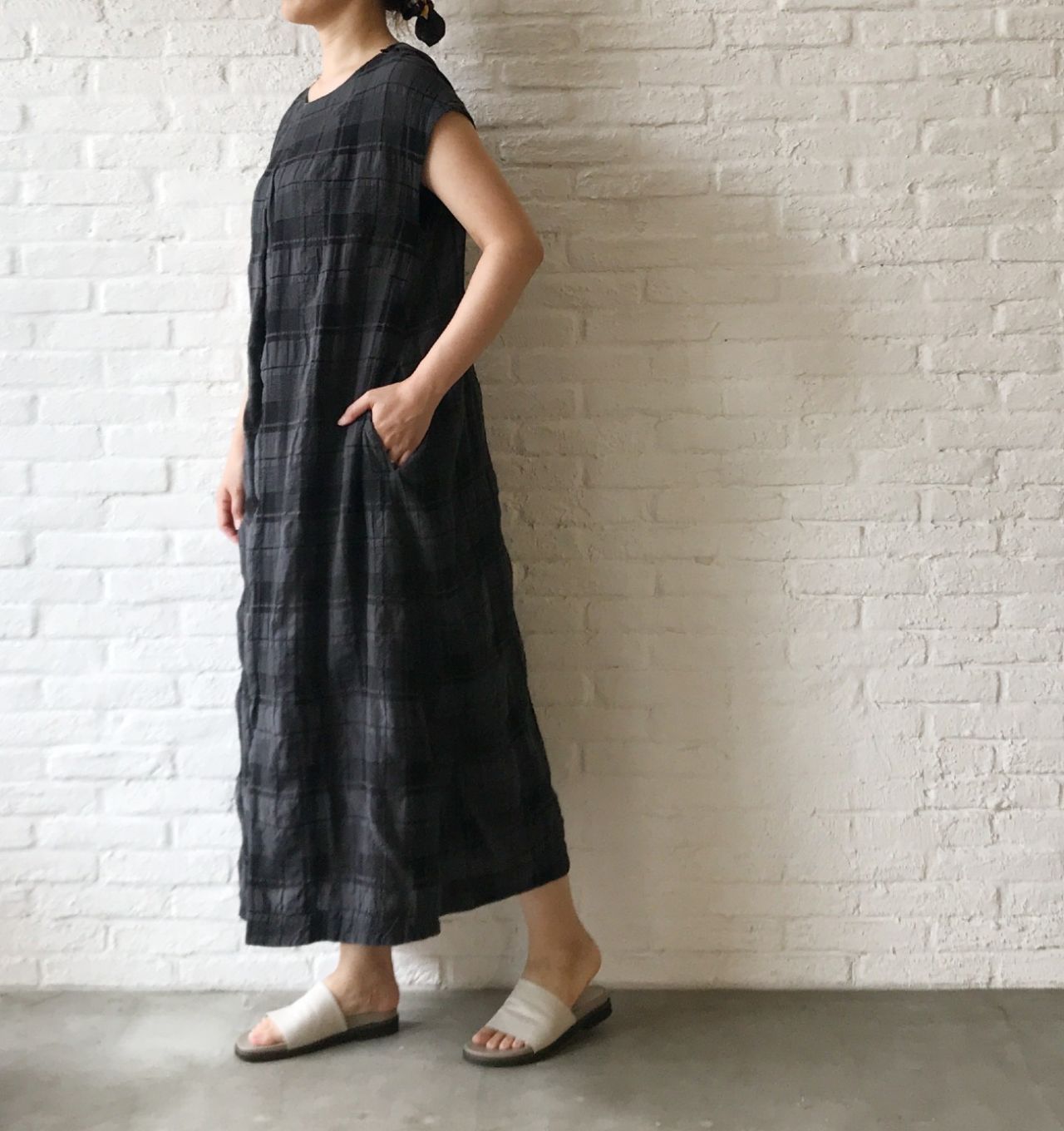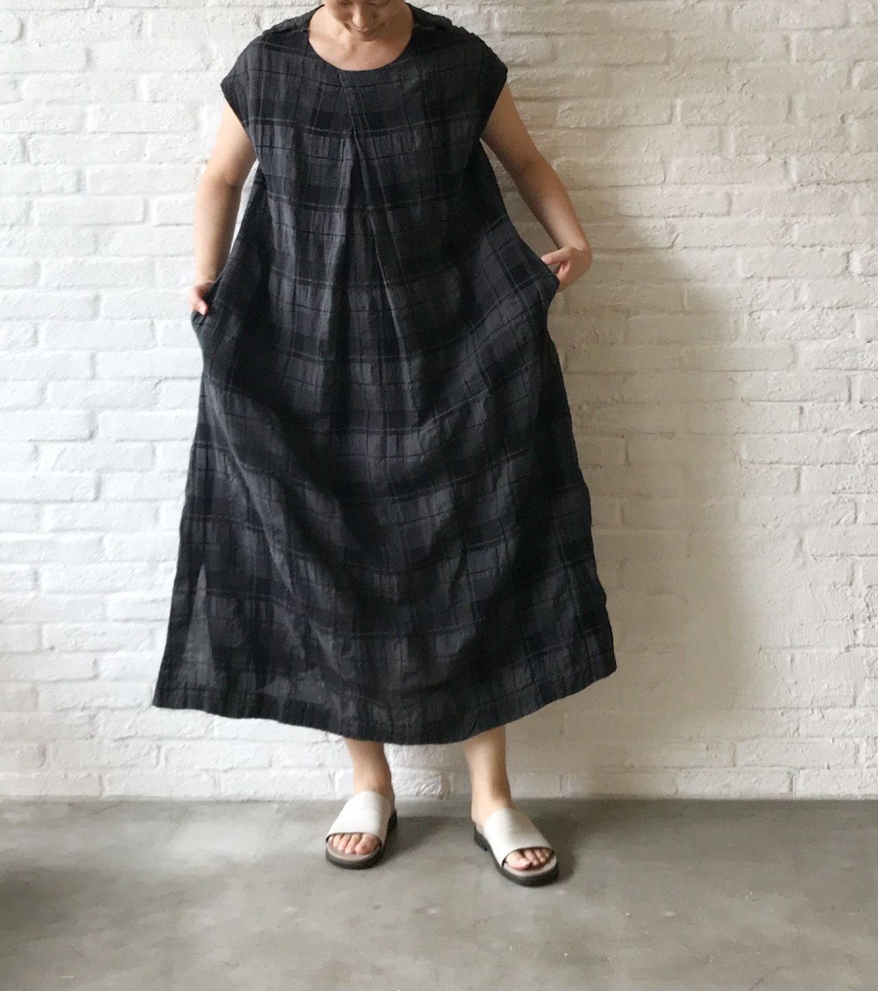 ノースリーブのワンピースをインナーにして上から被りました。
