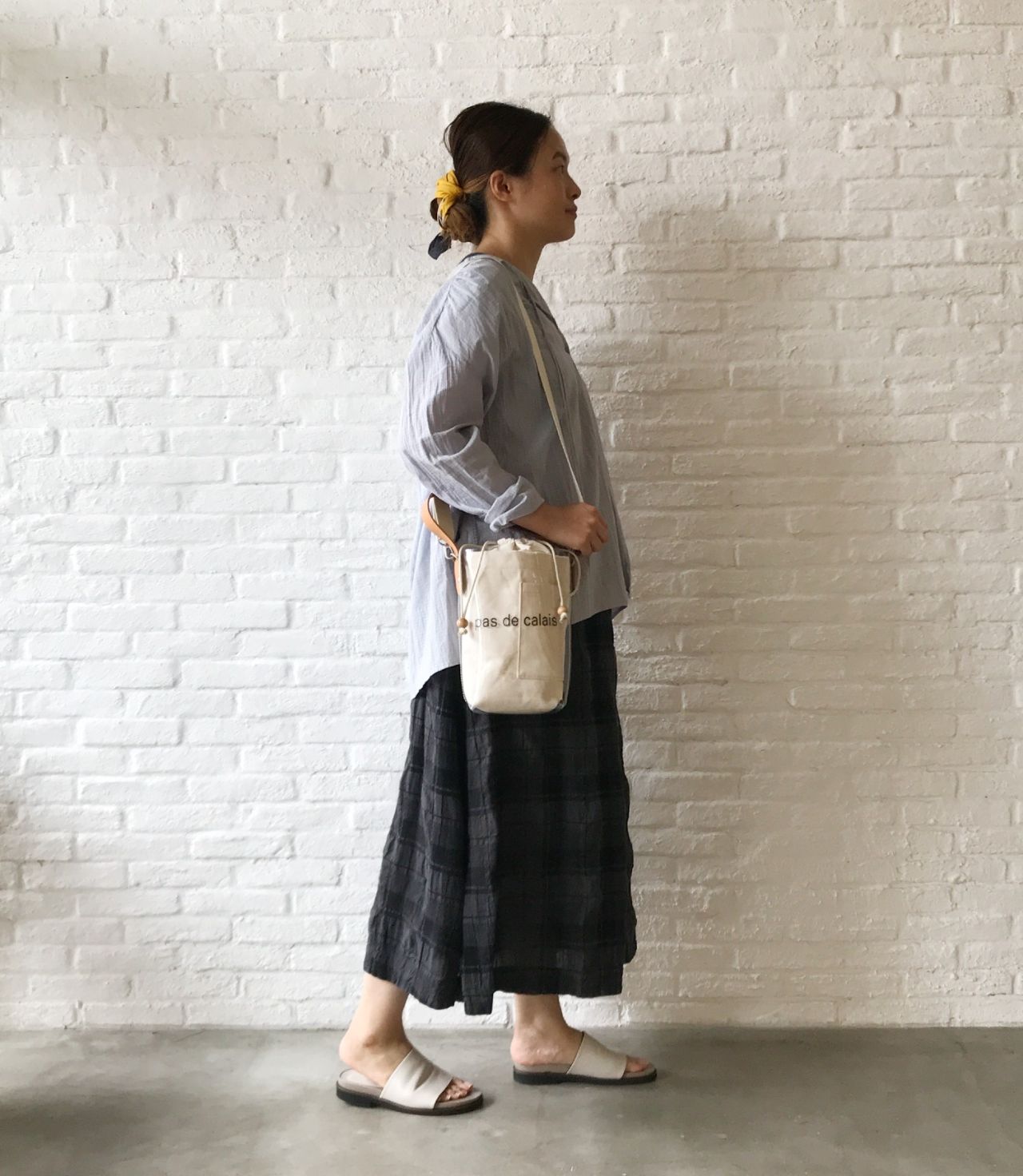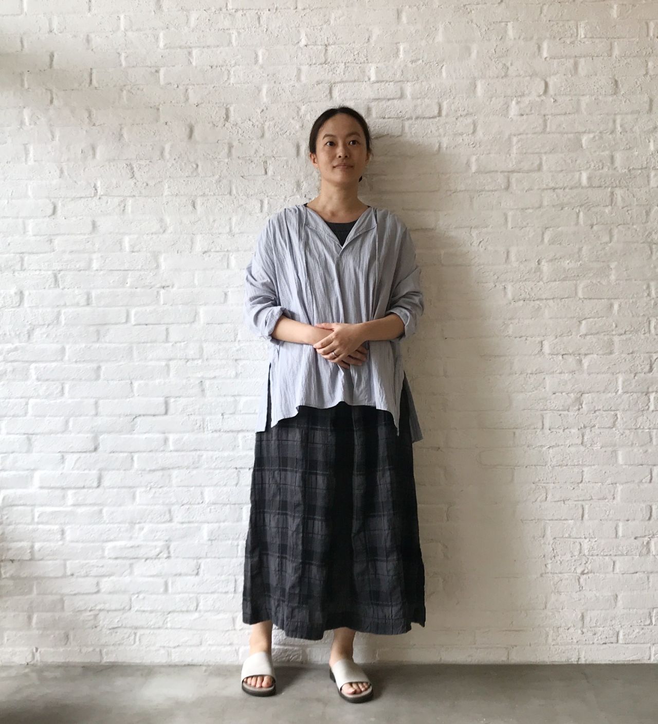 《着回しコーディネート》ドビーチェック&ストライプ ブラウス