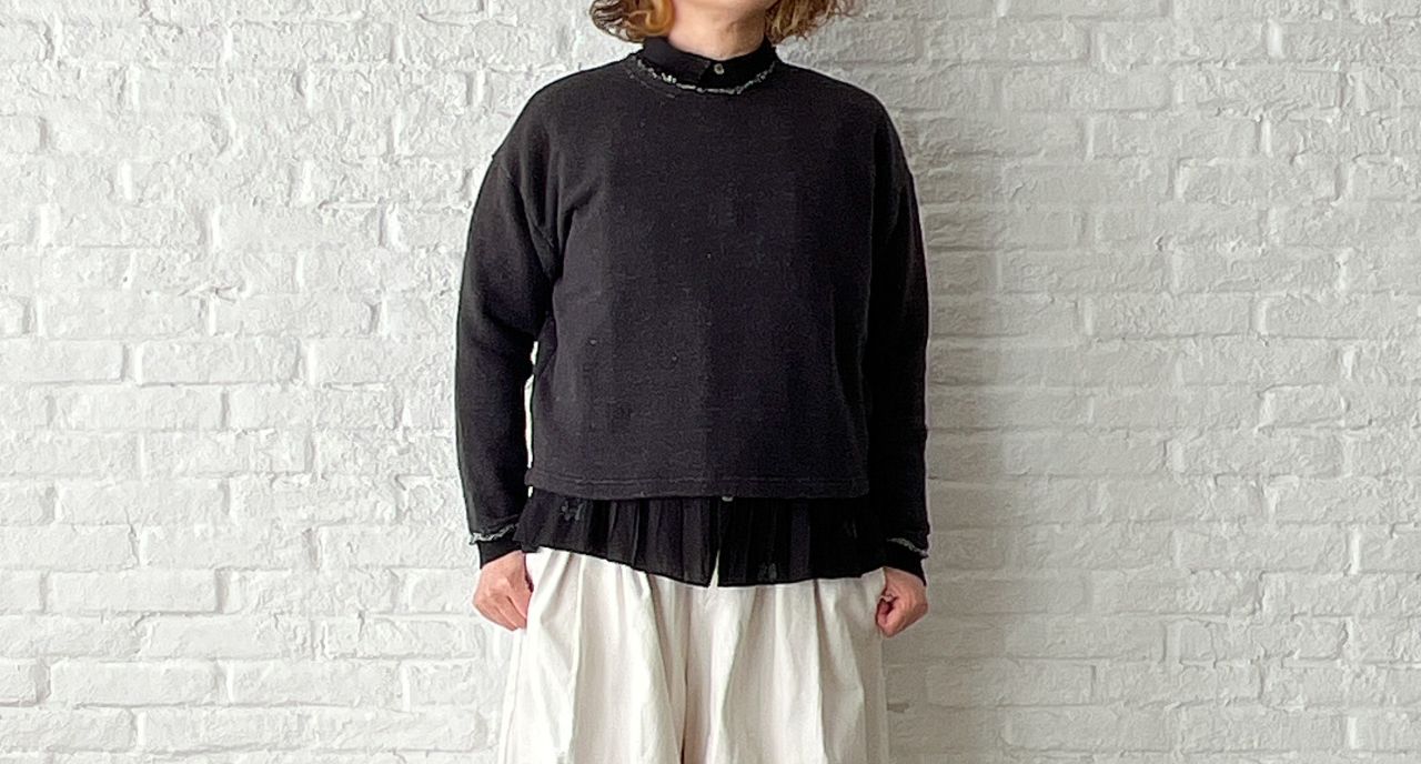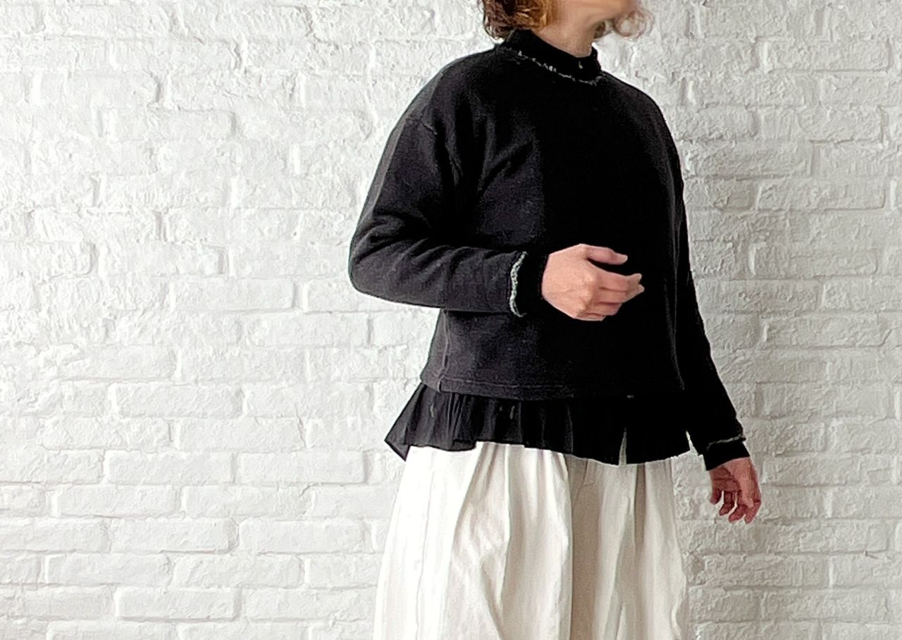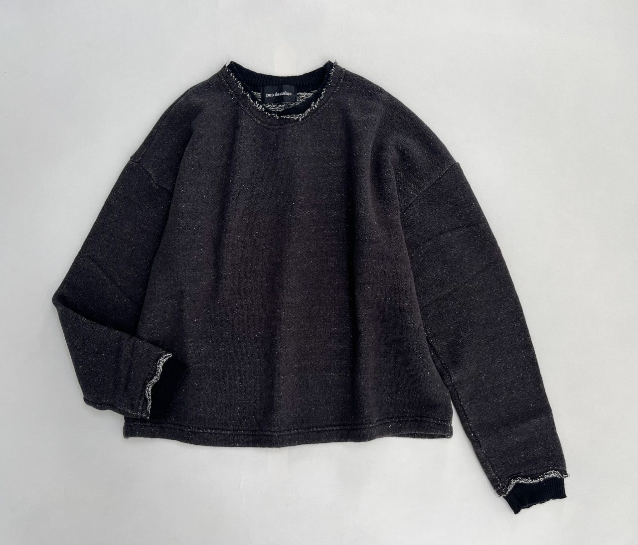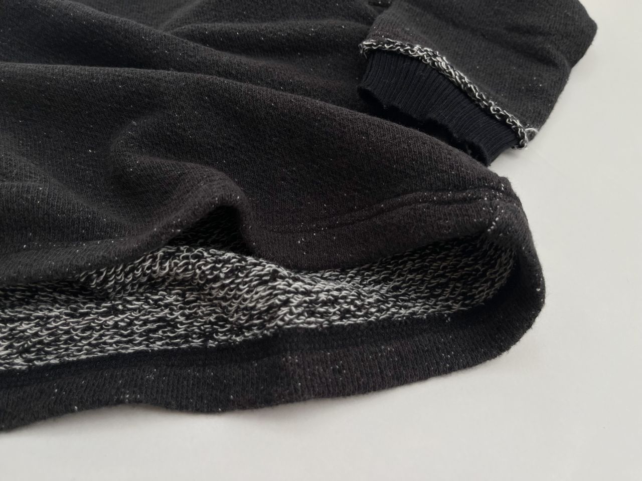 袖と首元はリブの付け位置部分をカットオフさせて、カジュアル感を出したデザイン。