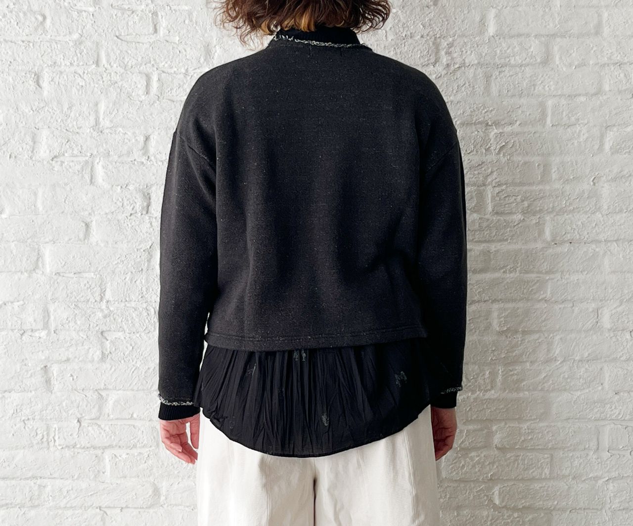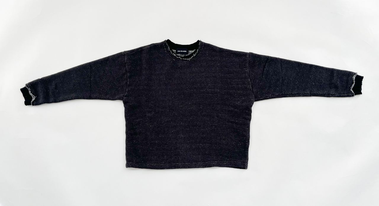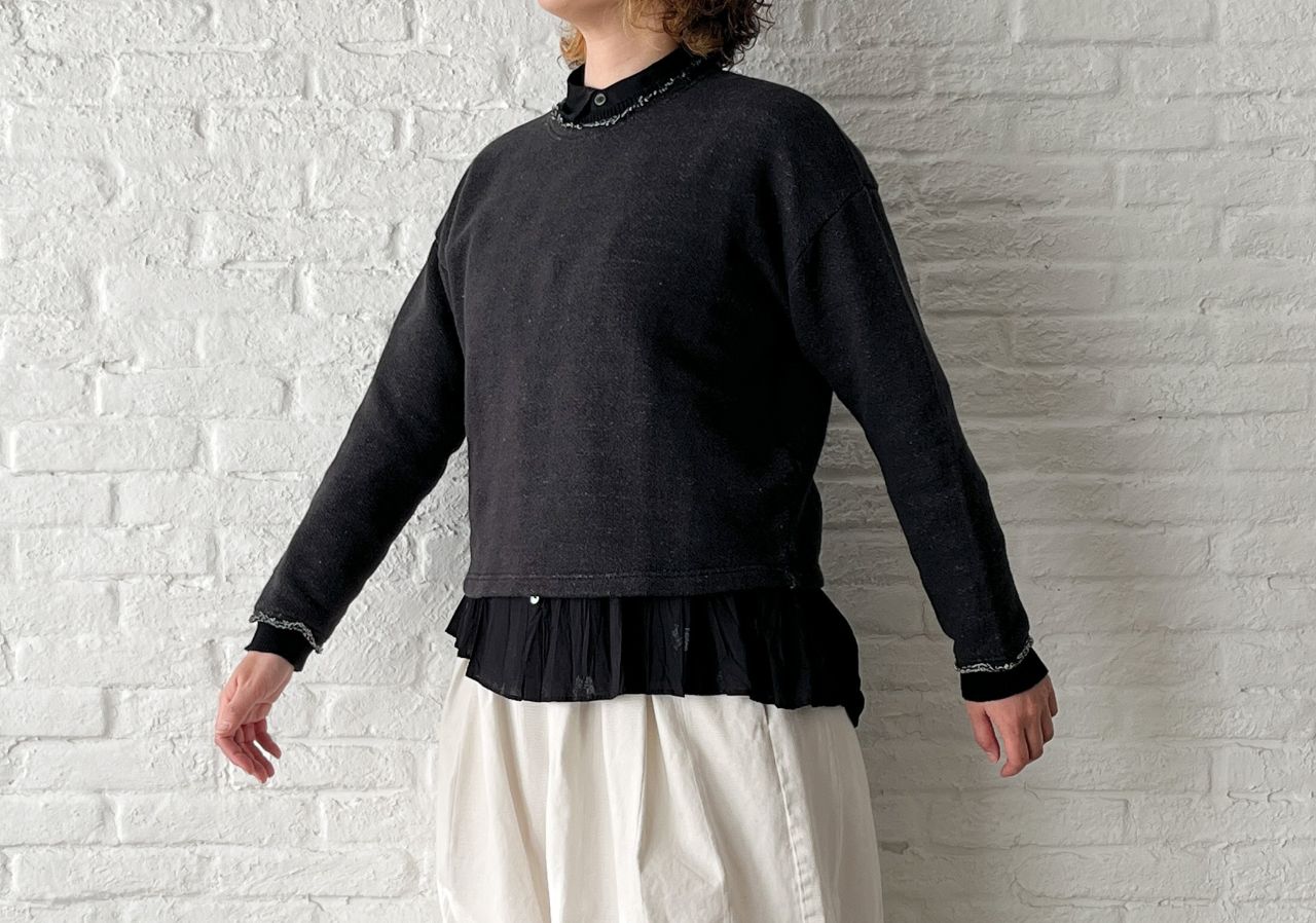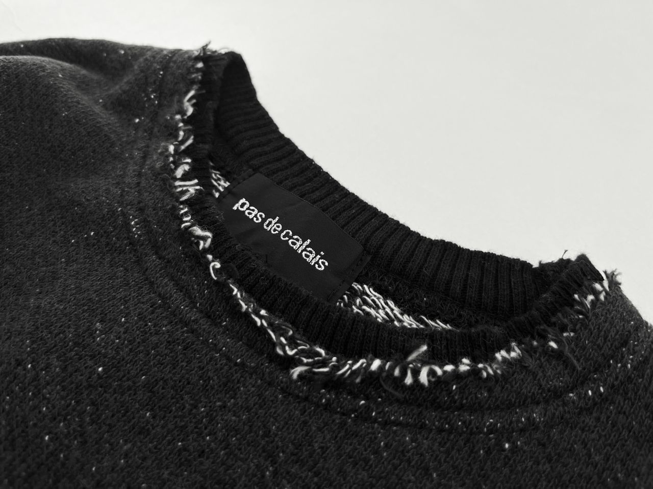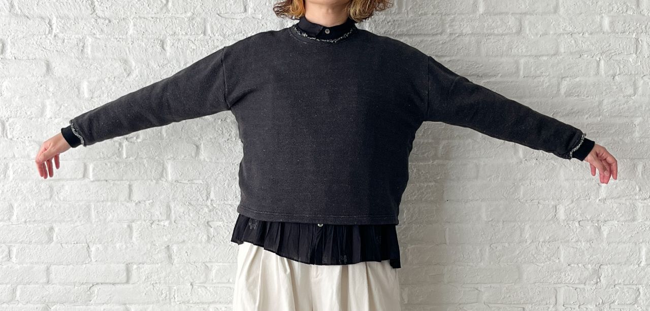 袖と首元はリブの付け位置部分をカットオフさせて、カジュアル感を出したデザイン。