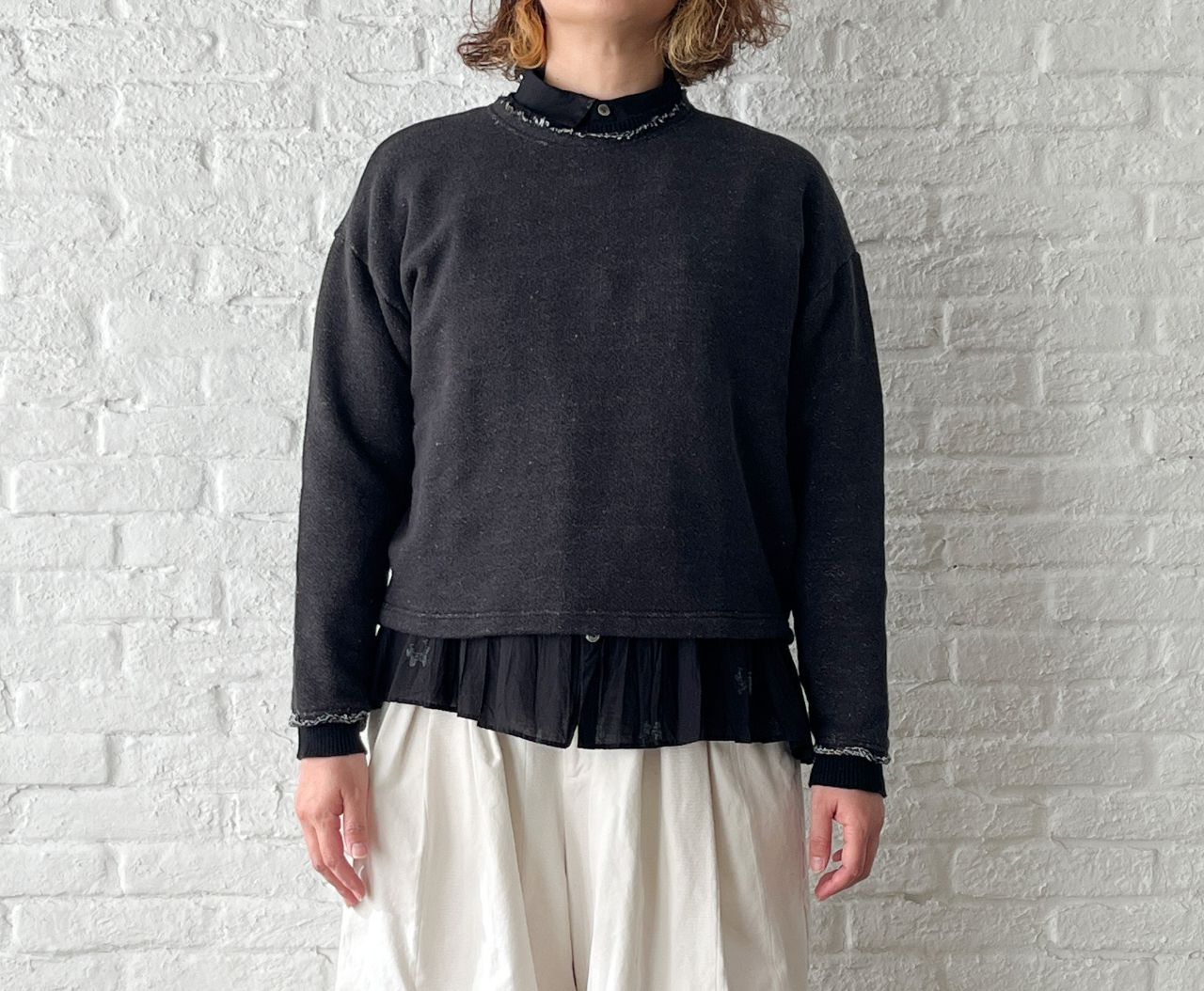 身幅は100cm以上でゆったり、着丈は50cm台で短め... な、バランスのかわいい裏毛プルオーバーです。