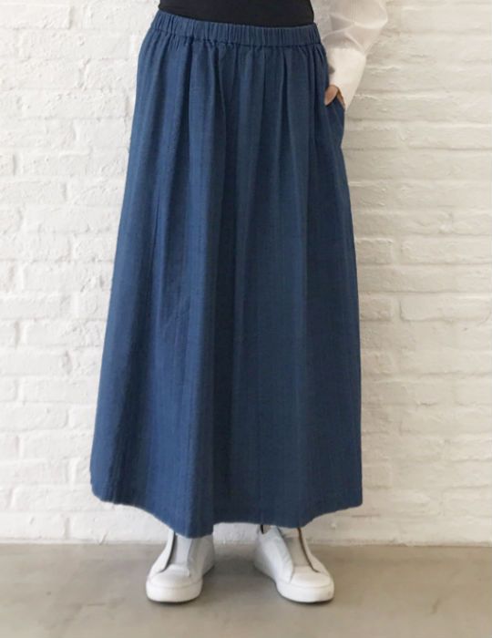 ウエストがゴム仕様の楽ちんロングスカートは、