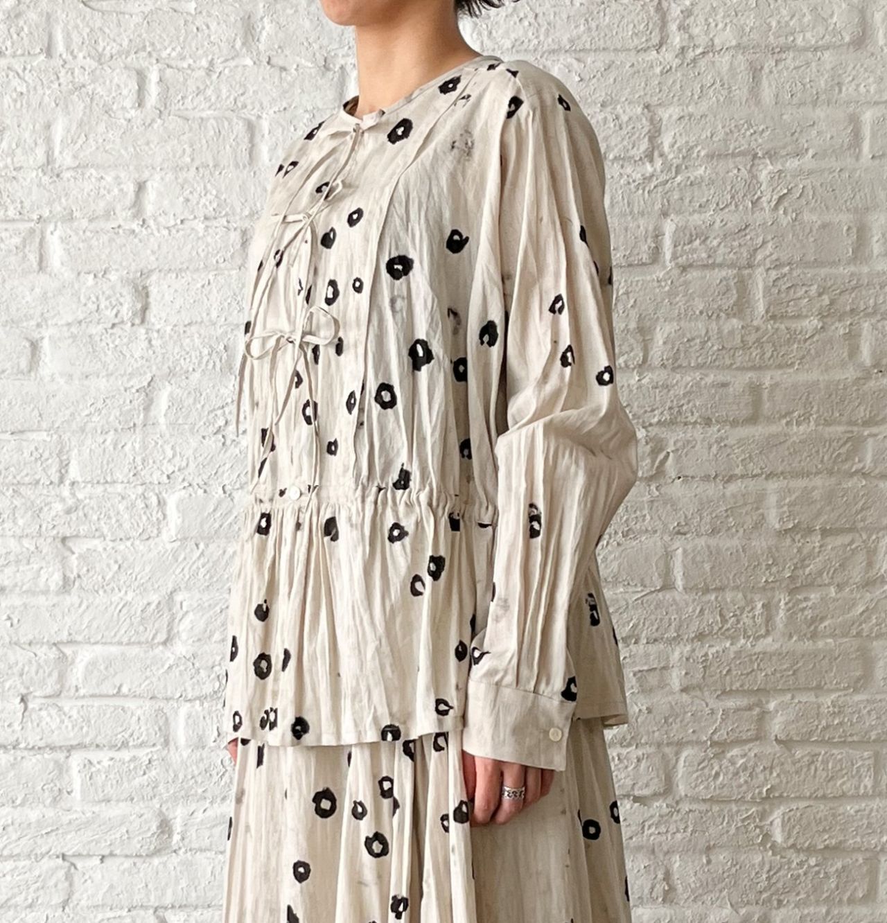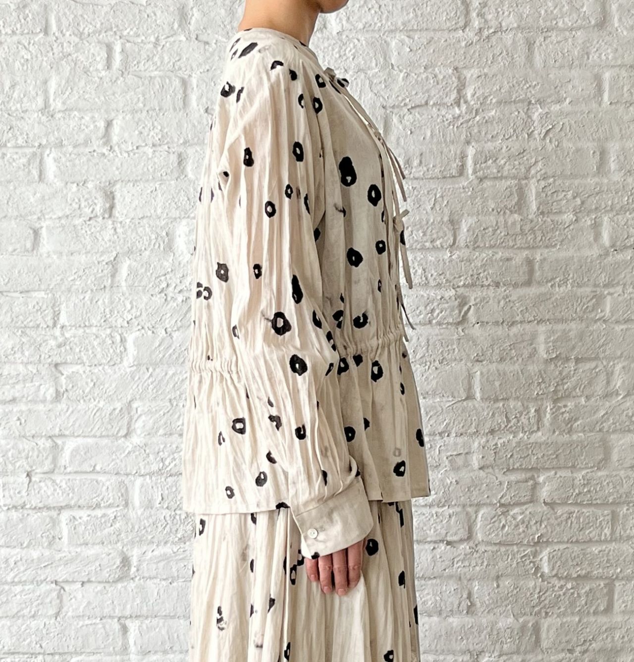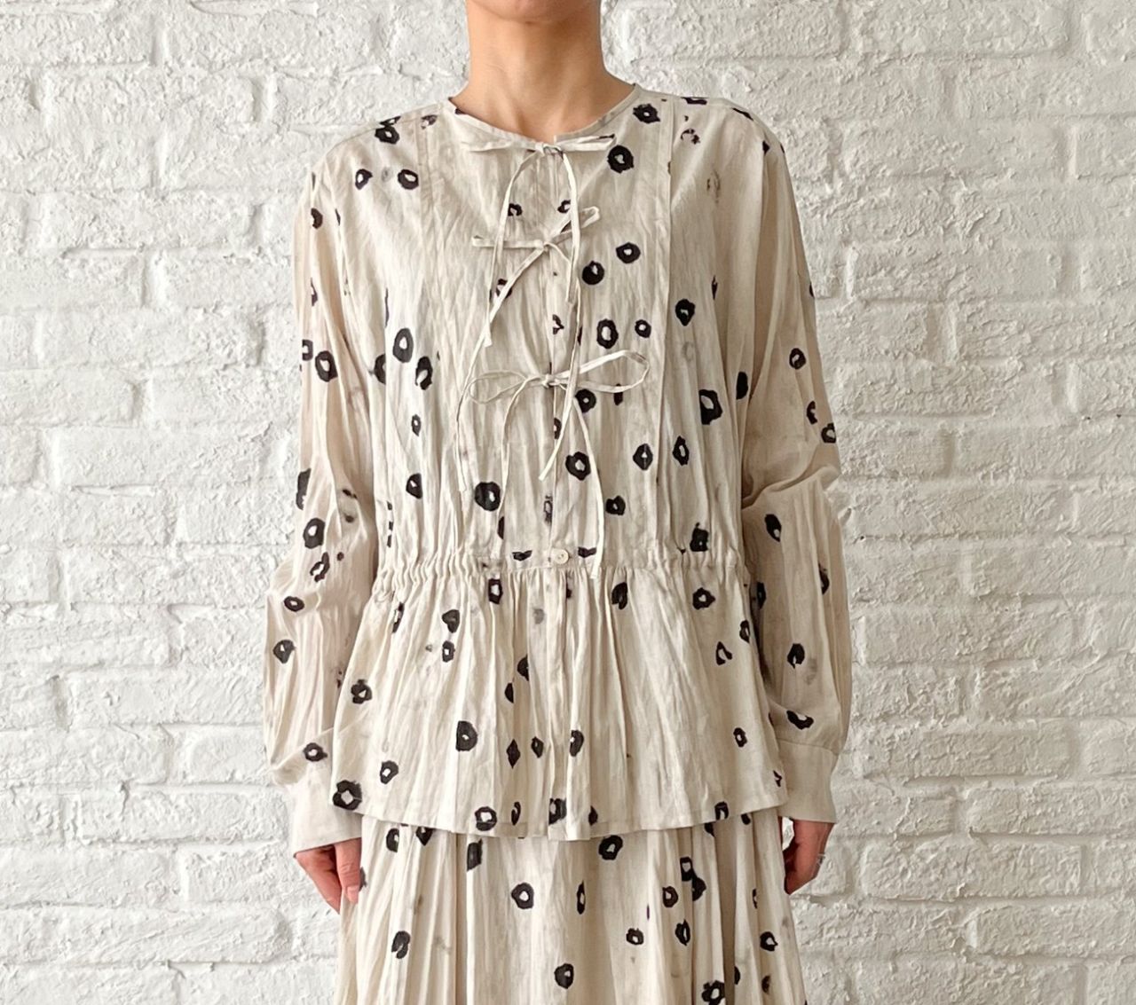 no.6373《HAPPY HOLIDAY》綿麻ボイルプリント ブラウス