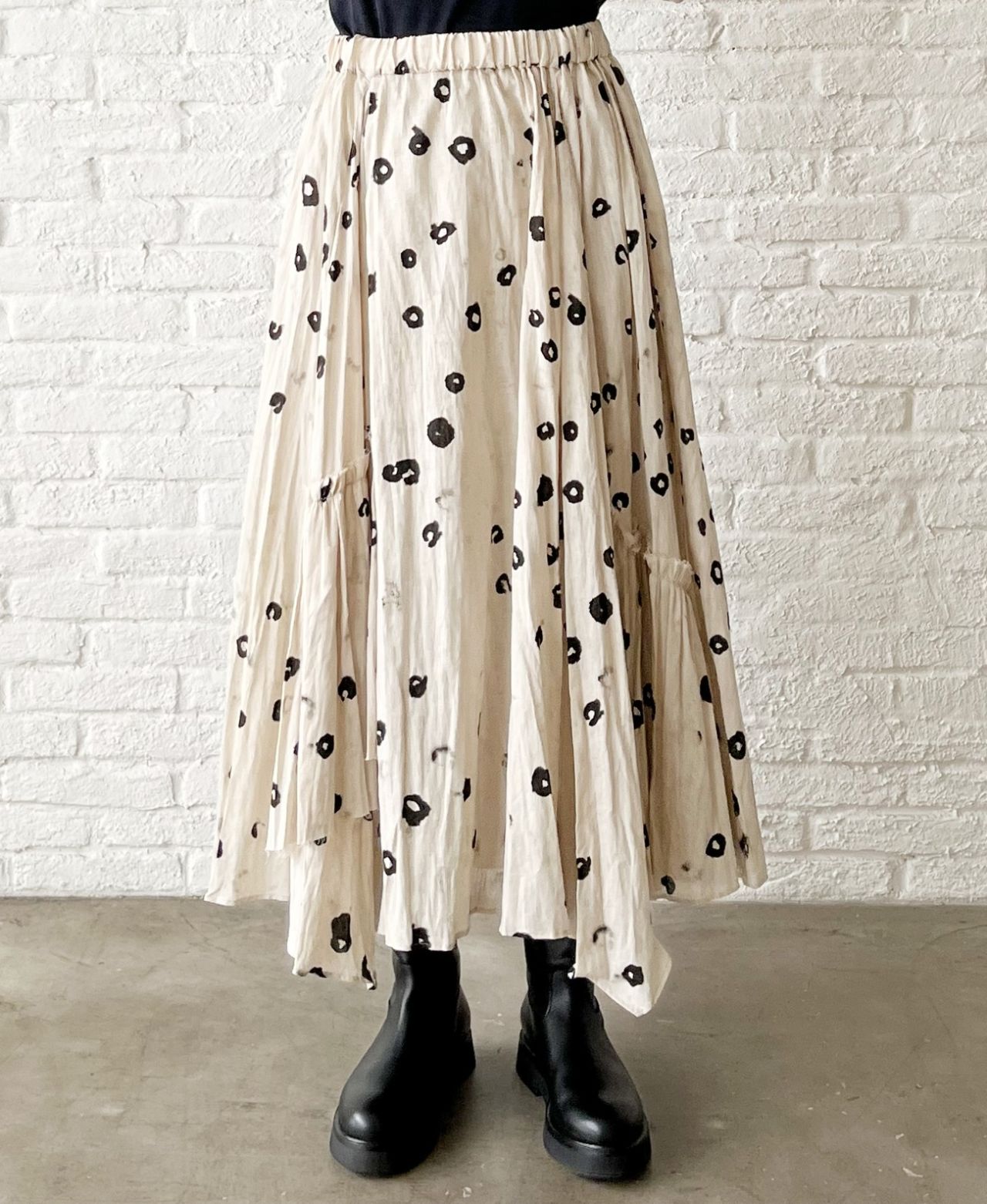 《HAPPY HOLIDAY》綿麻ボイルプリント スカート
