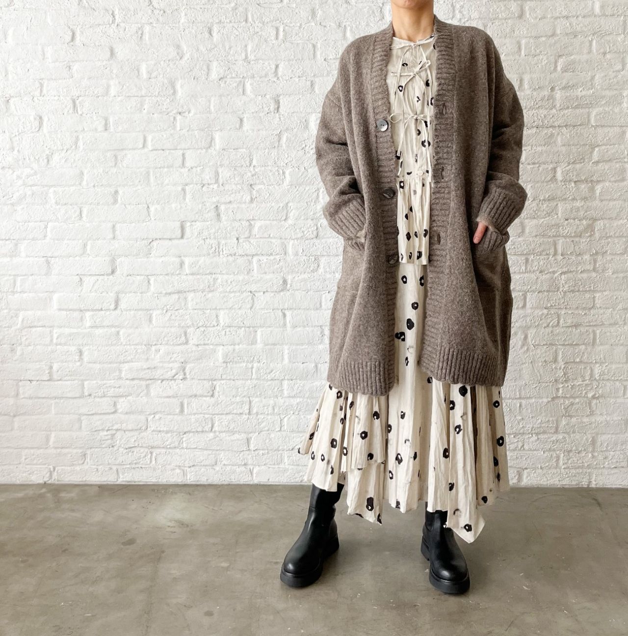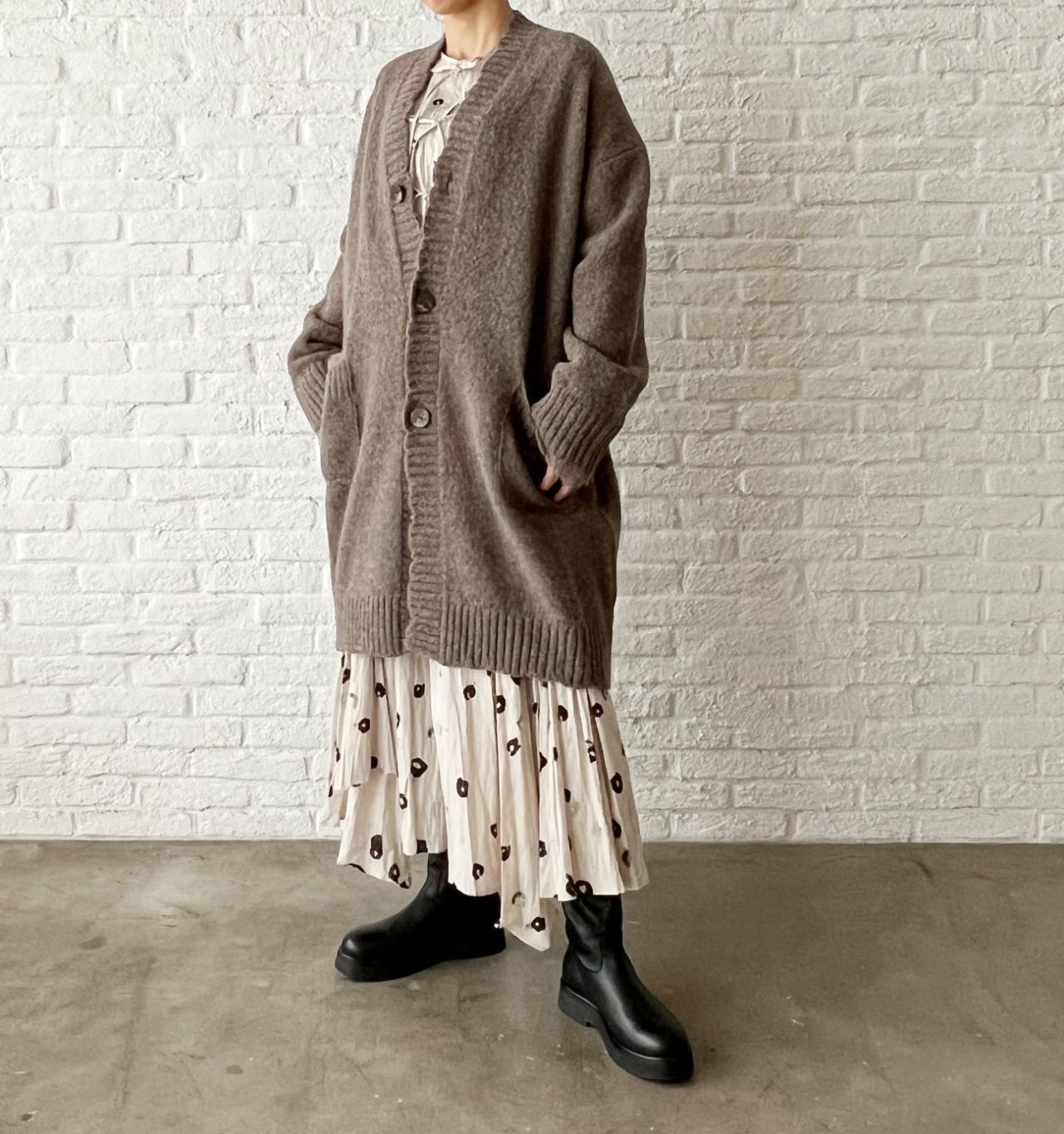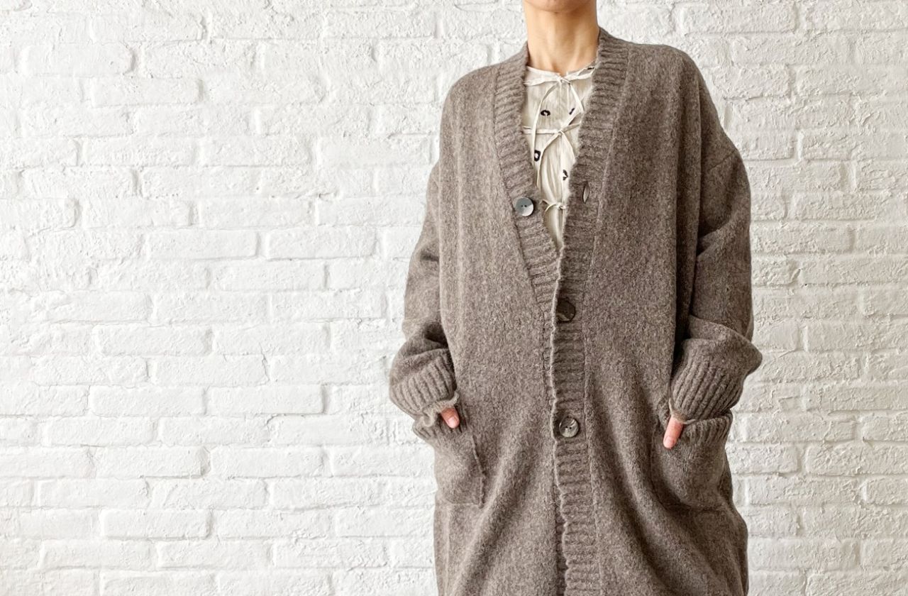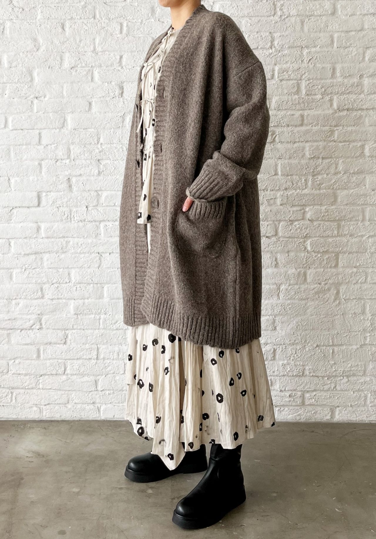 no.2295 ヤクアルパカモヘヤ飾り編み ロング カーディガン