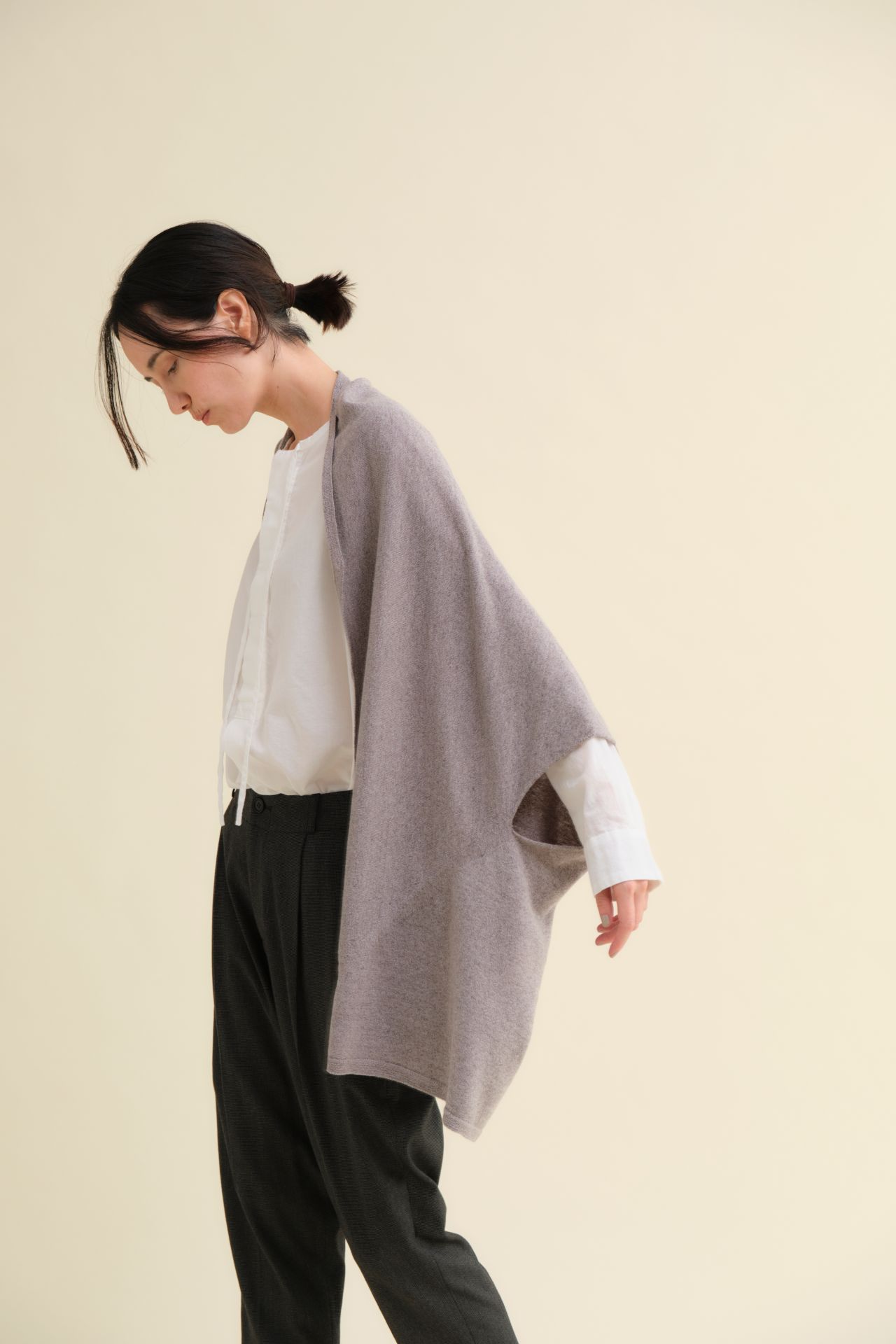 ポンチョのようなイメージの、ゆったりニットジレ。
