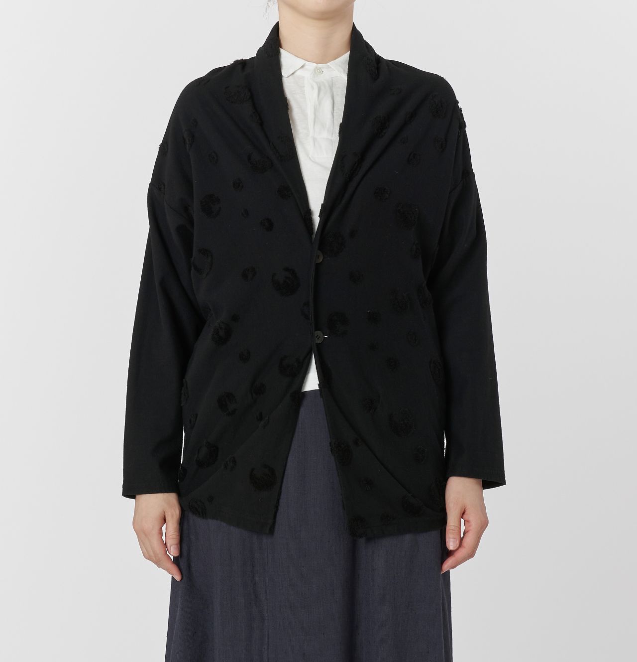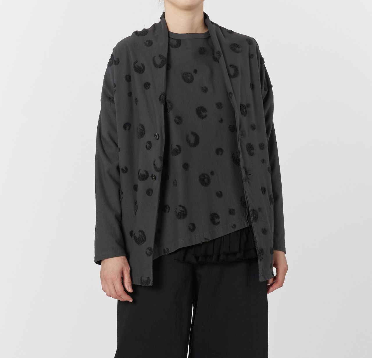 サークルドット柄カーディガンは、無地のブラウスやカットソーに羽織っても、アンサンブルでも