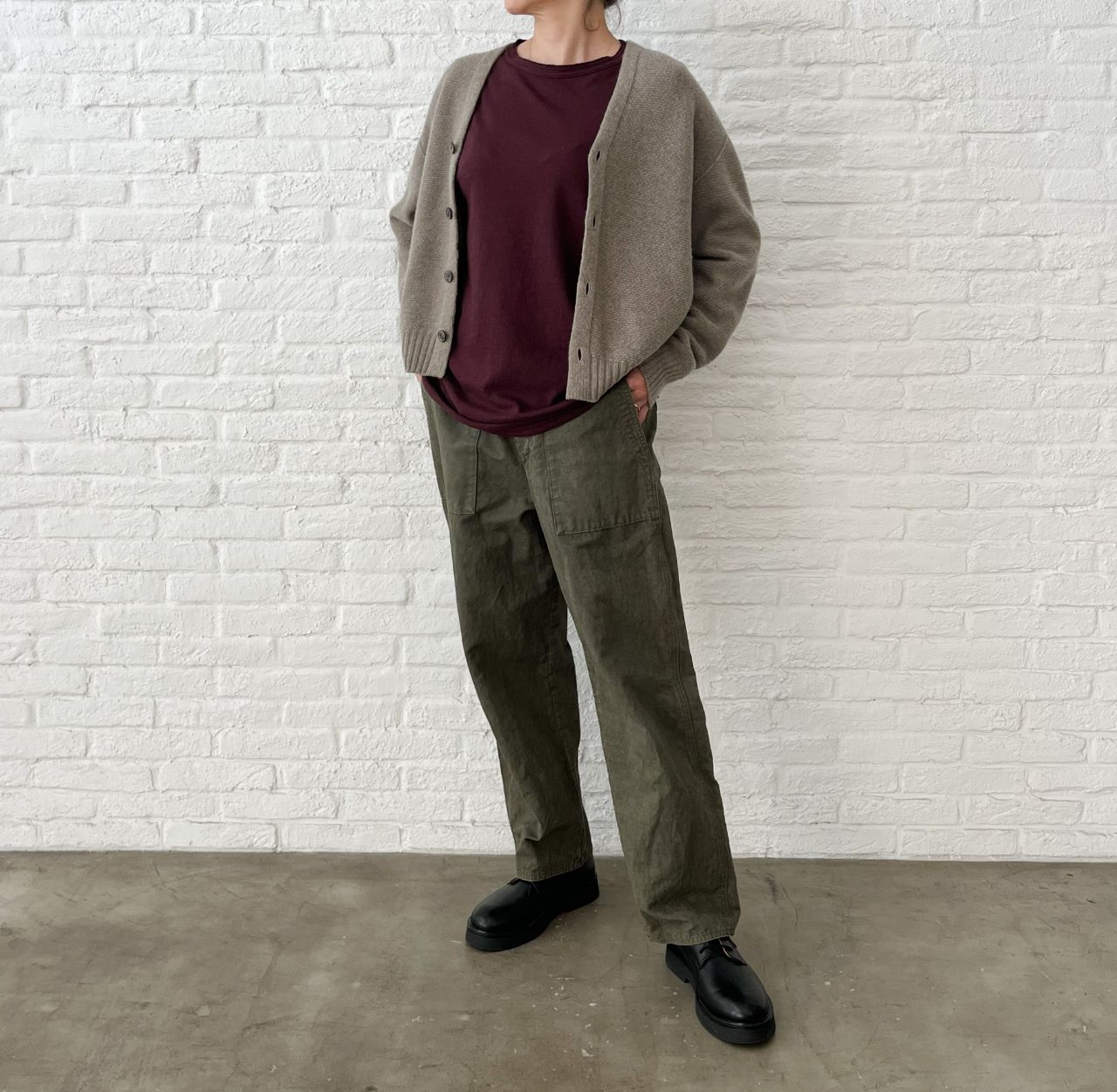 col.74 ボルドー(着用)/44 カーキ ¥13,200