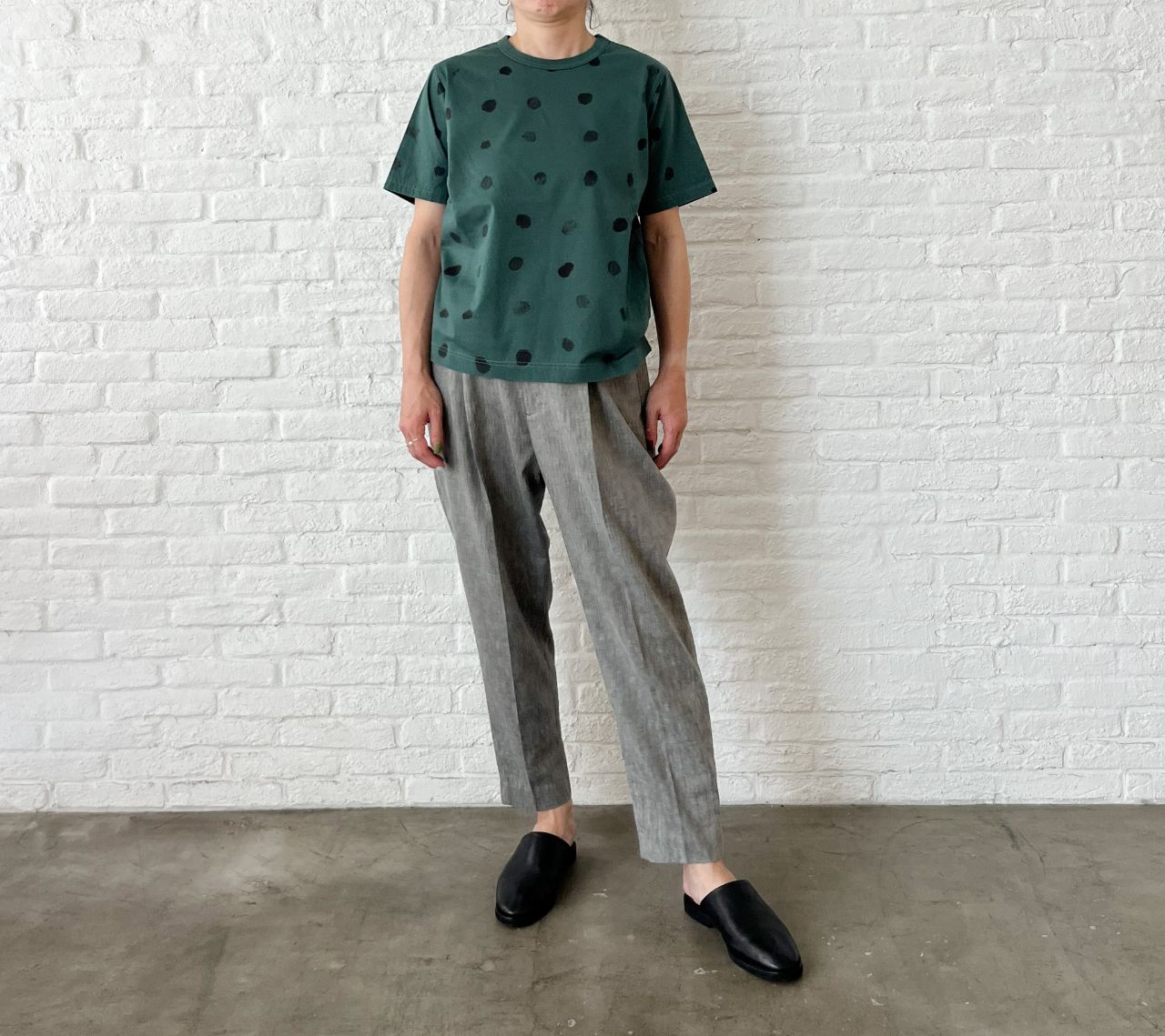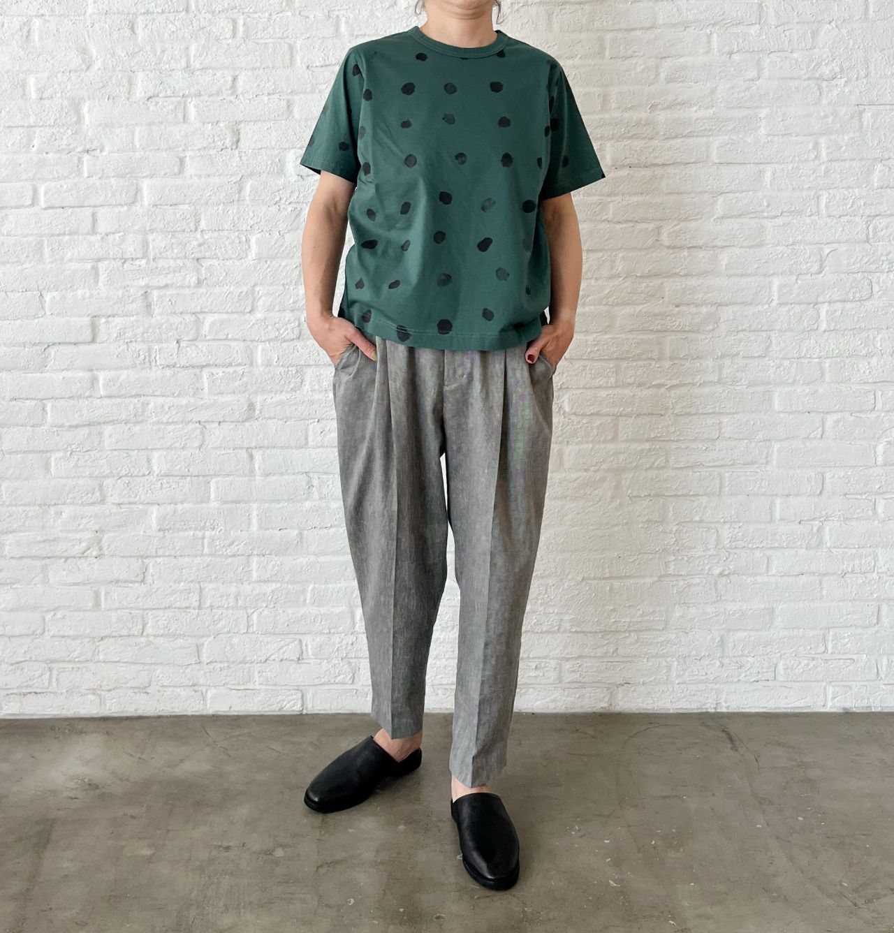 元は こちらのTシャツ で、爽やかで着こなしのポイントにもなる、サックスとグリーンの寒色カラーで別注しました。