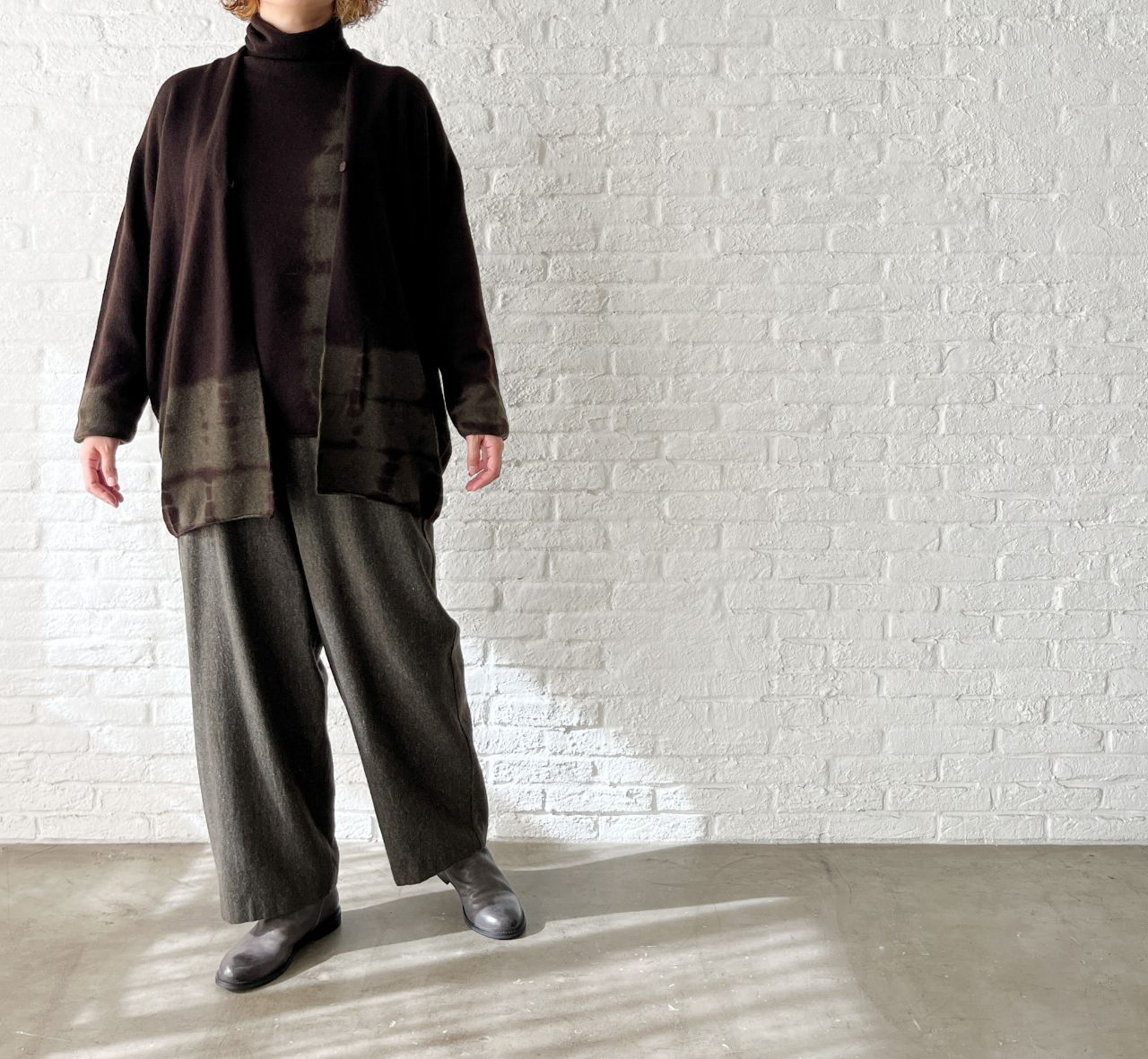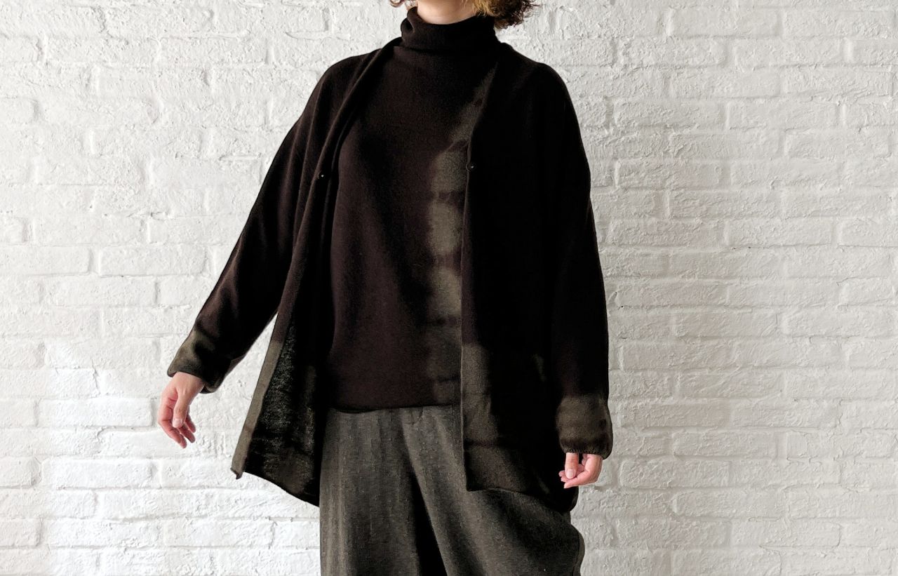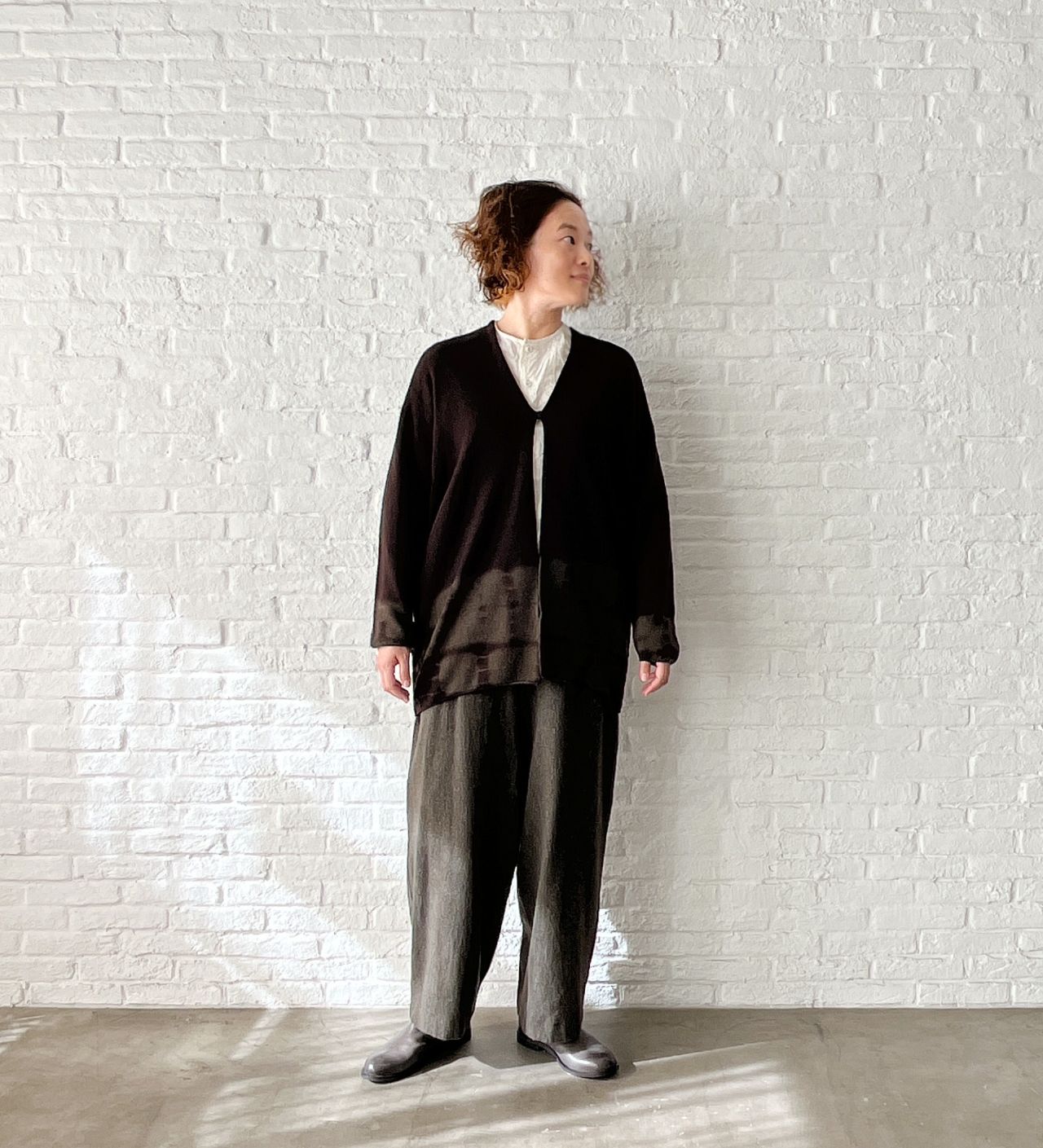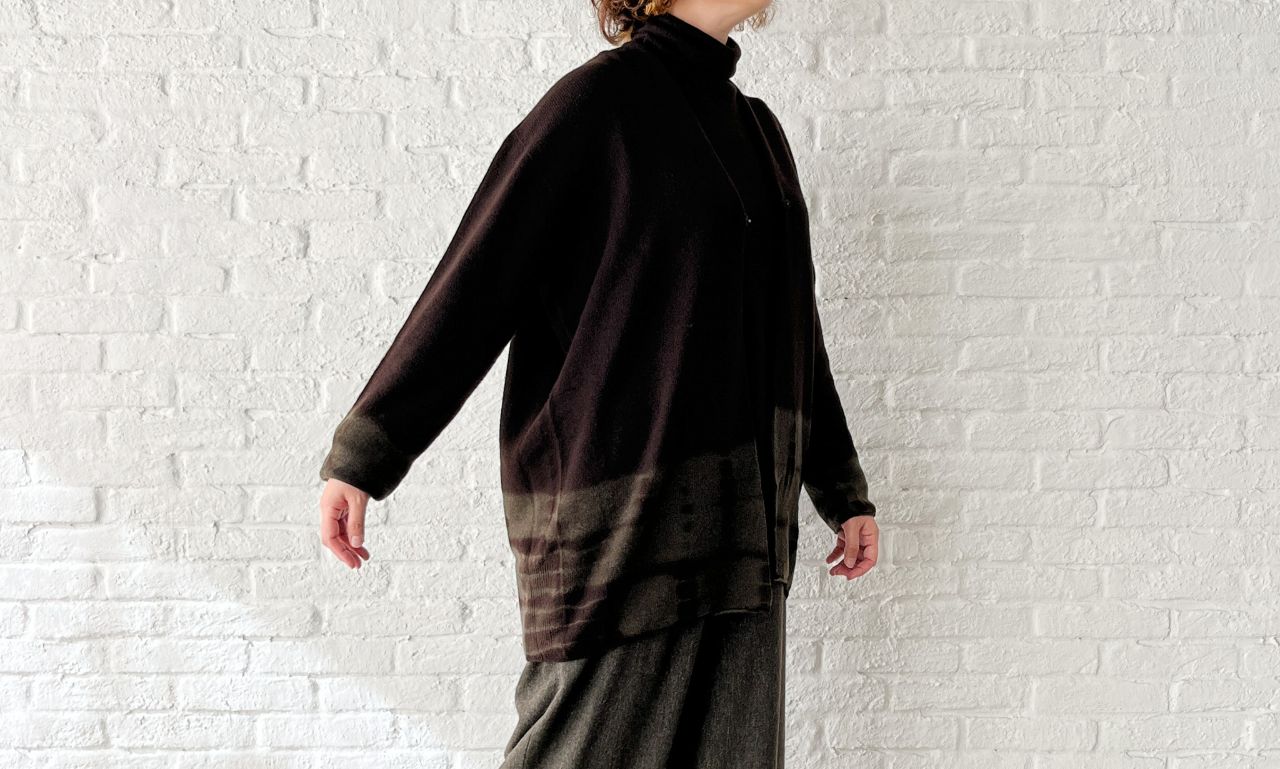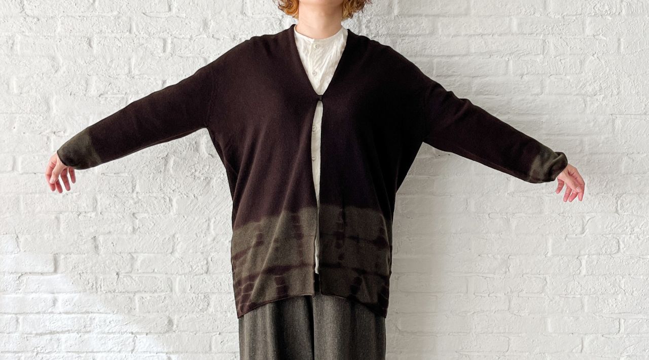 《着回しコーディネート》ピュアカシミヤ・絞り染めカーディガン