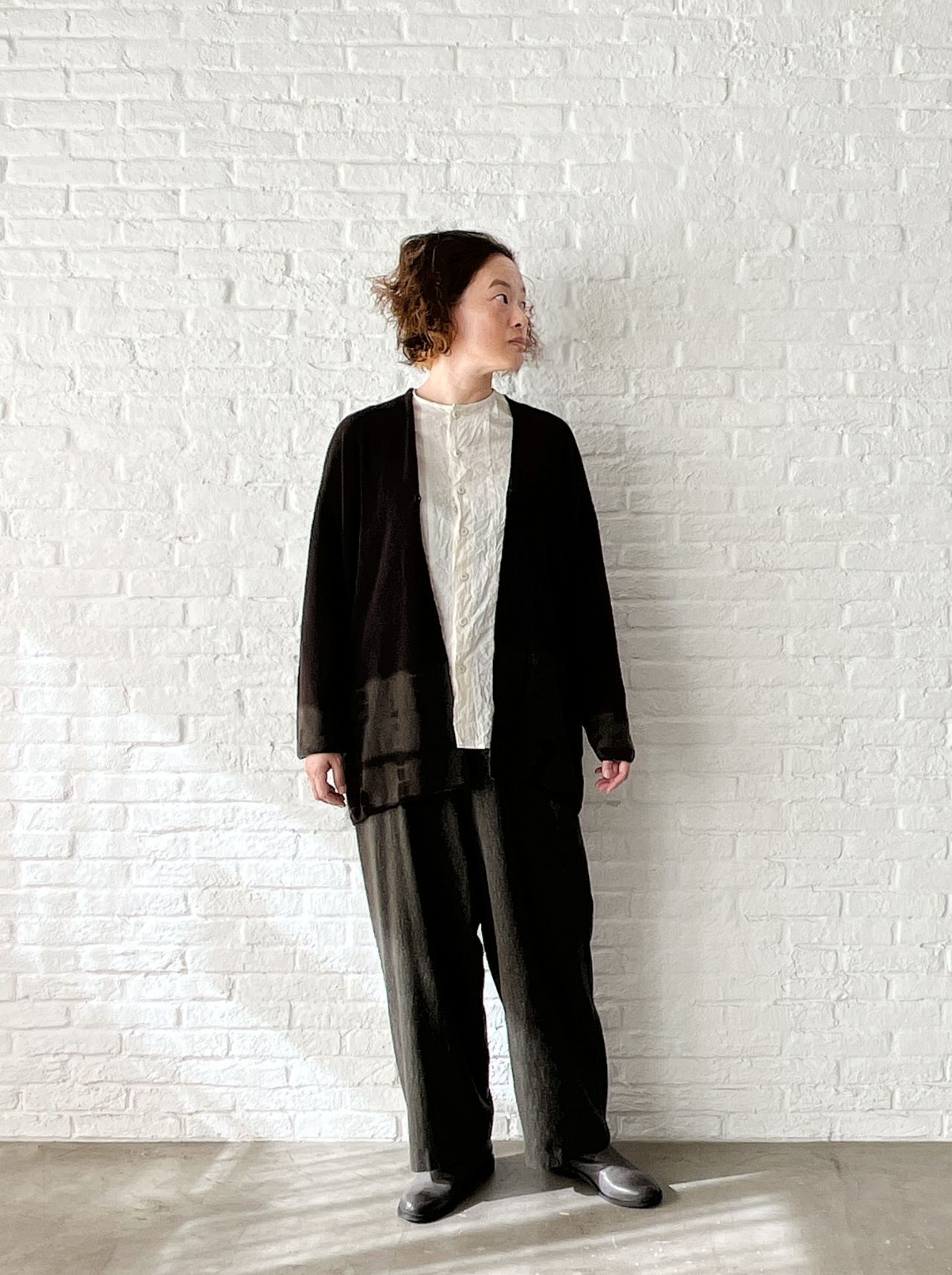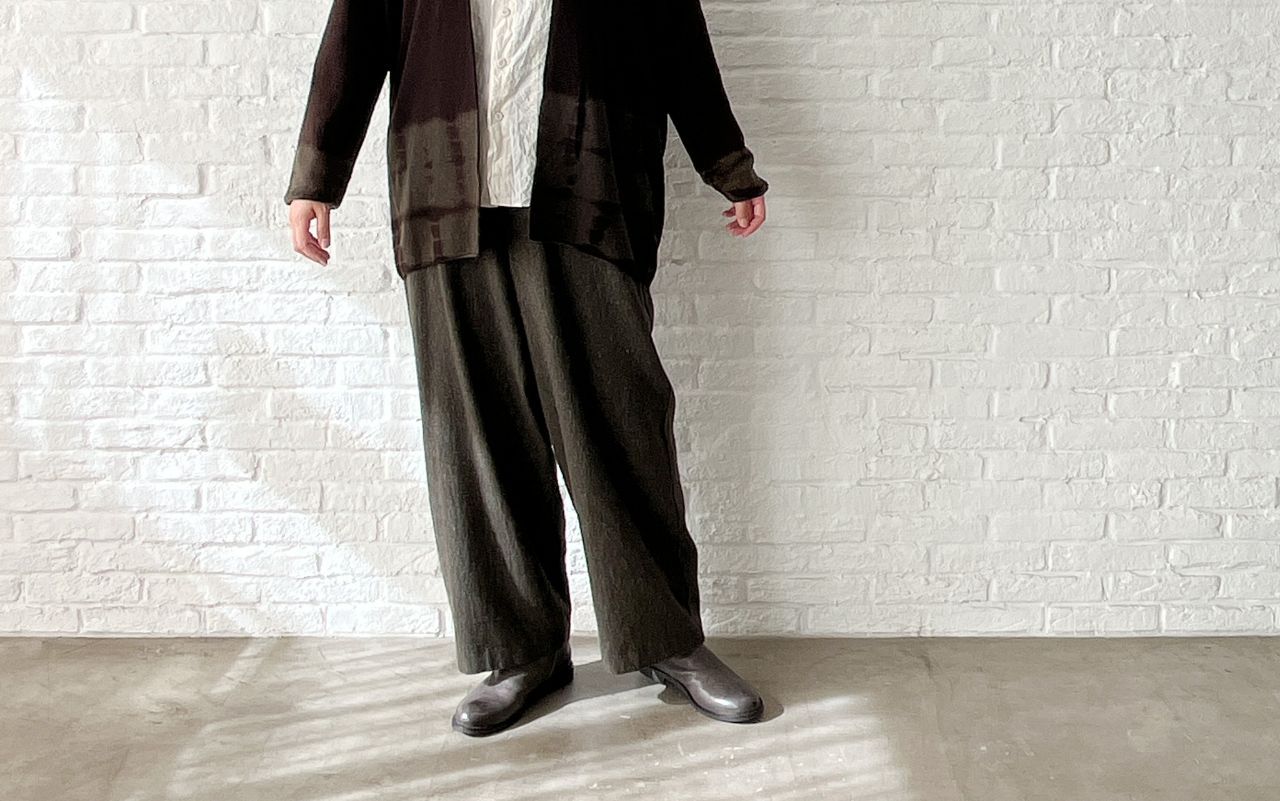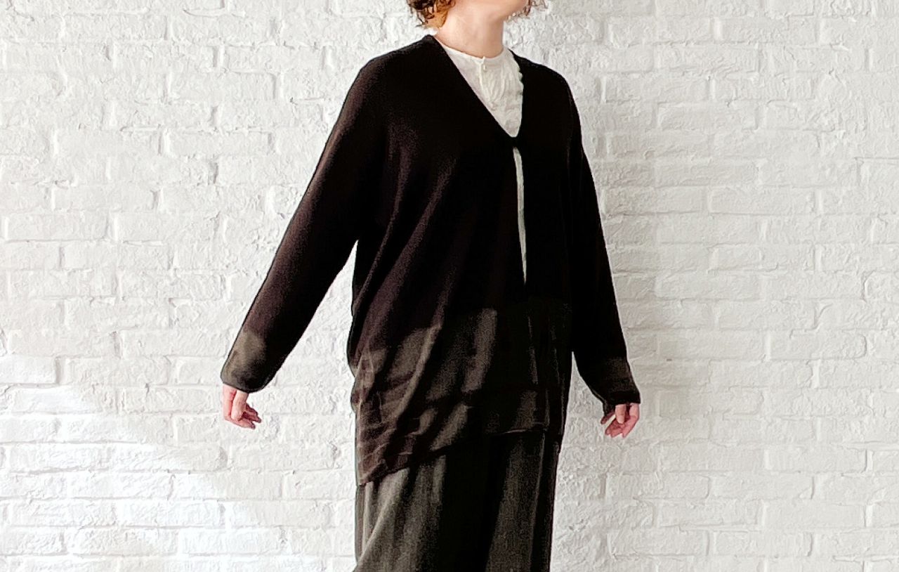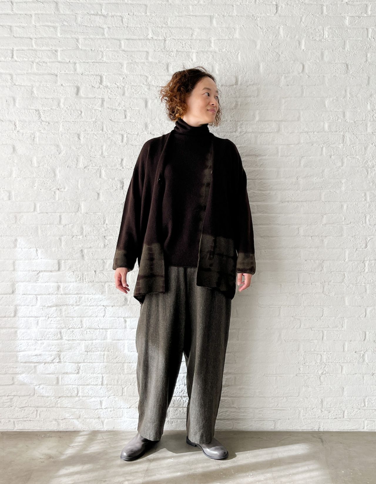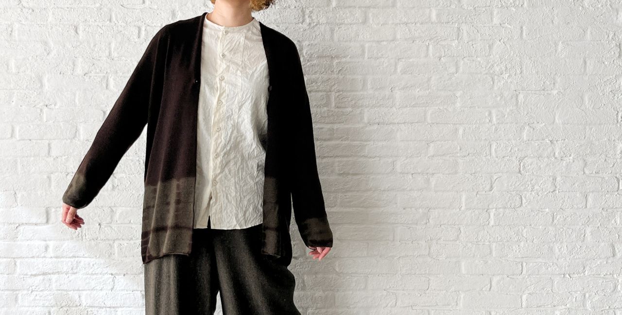 《着回しコーディネート》ピュアカシミヤ・絞り染めカーディガン