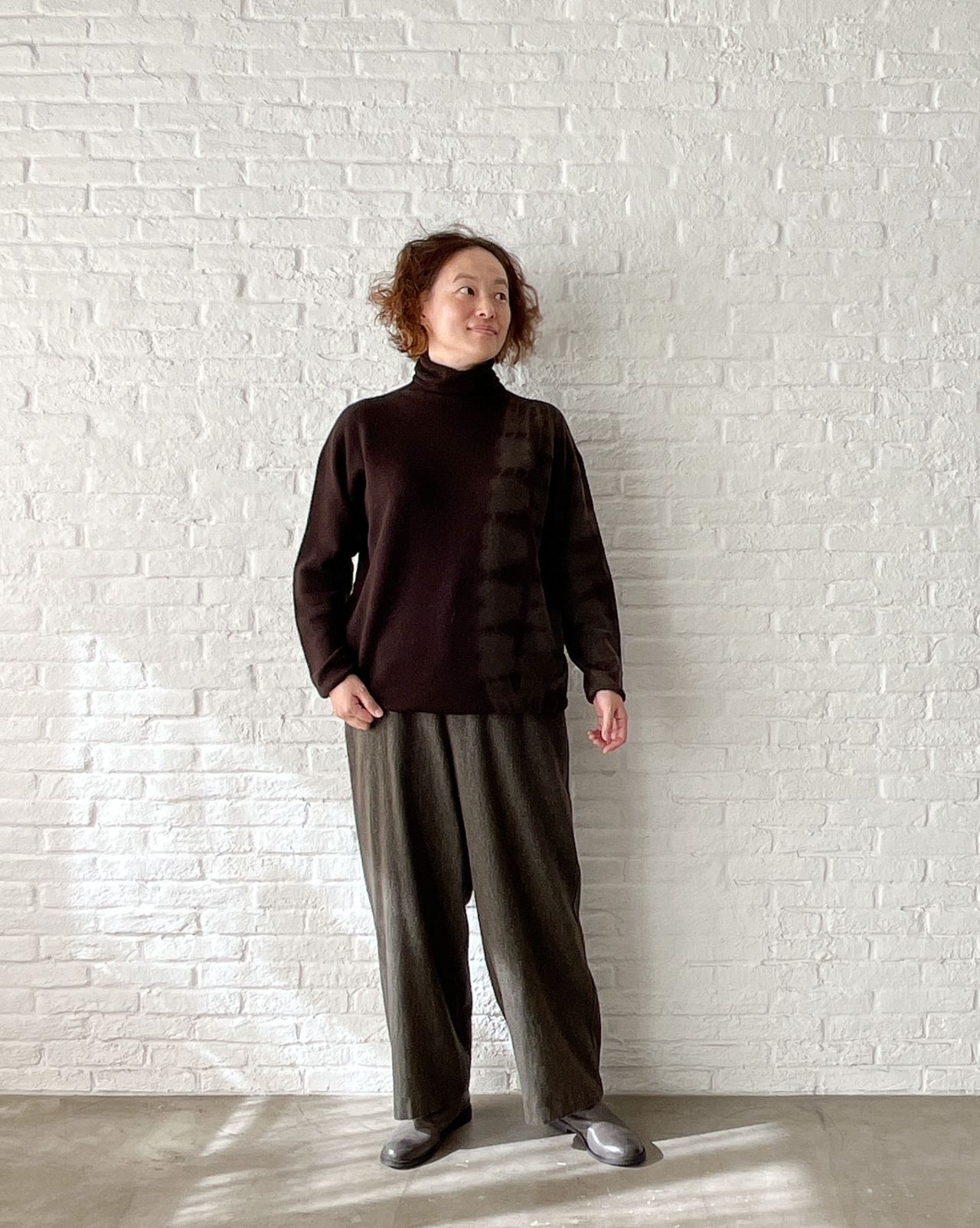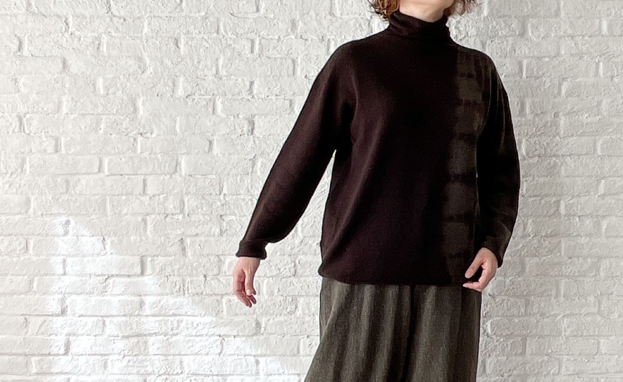 no.2401 ピュアカシミヤ・絞り染め オフネックプルオーバー