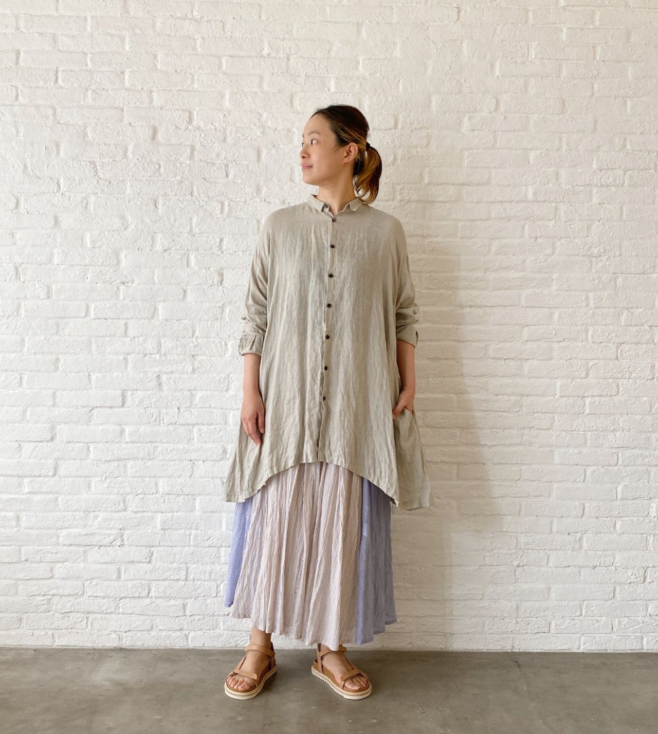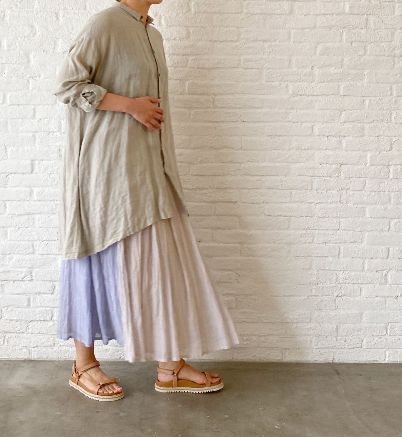 少し長めにした袖は、気になる二の腕を隠すシルエットです。