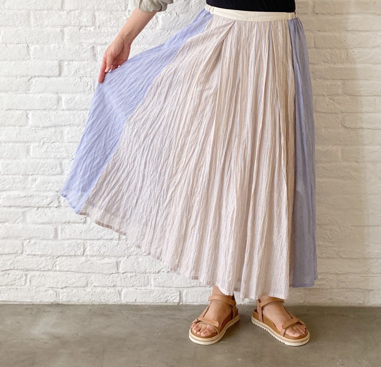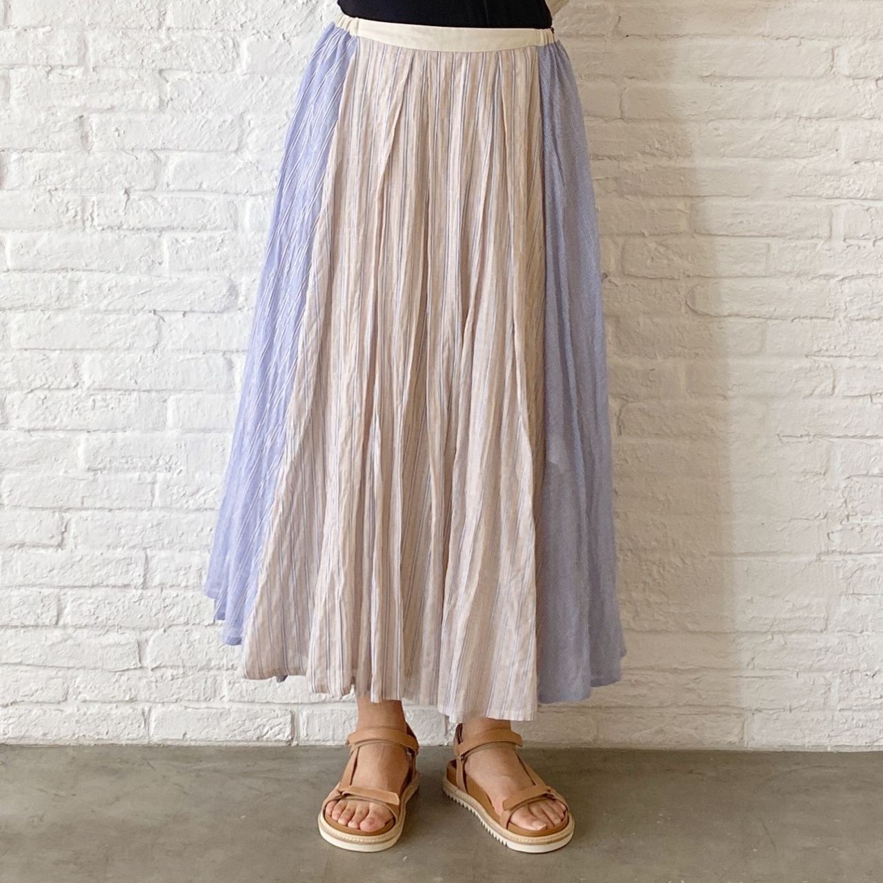 no.7093【期間限定!10%OFF】 テンセルコットンシャーリングストライプ スカート