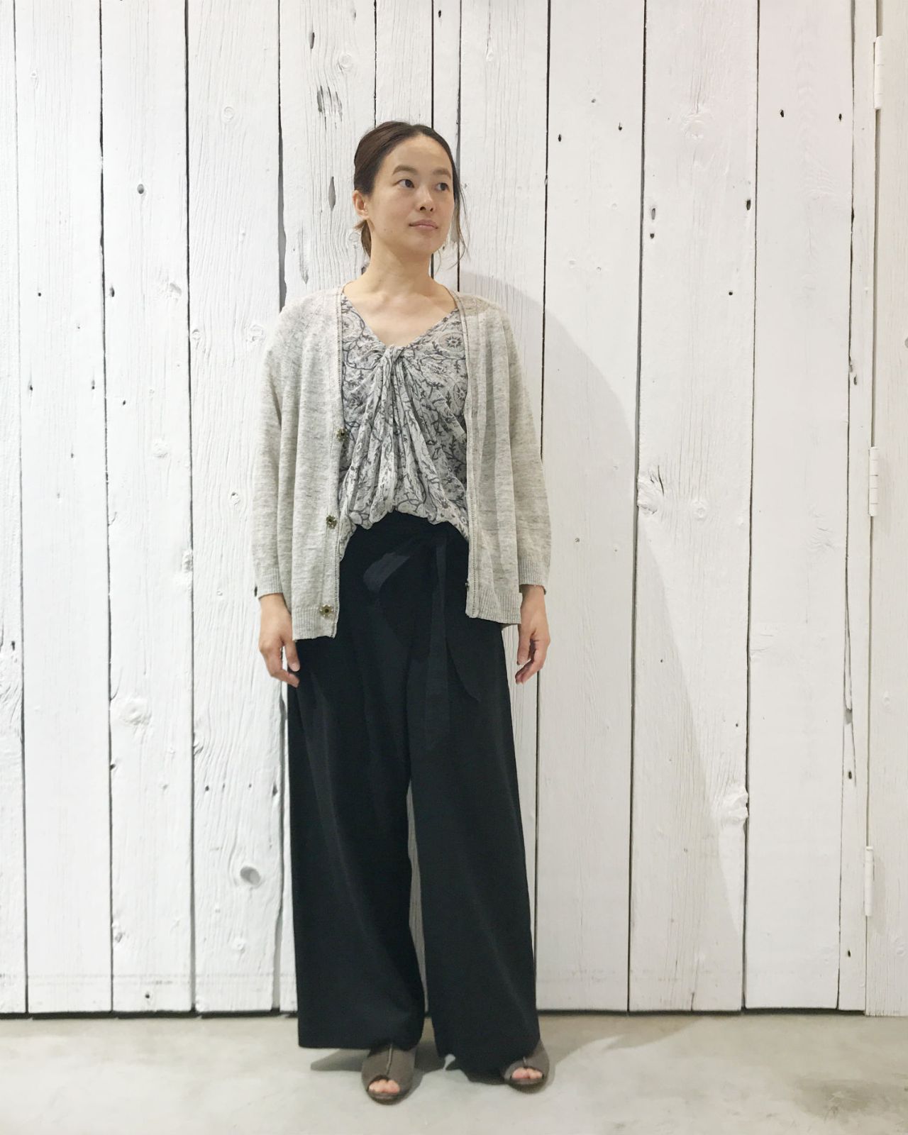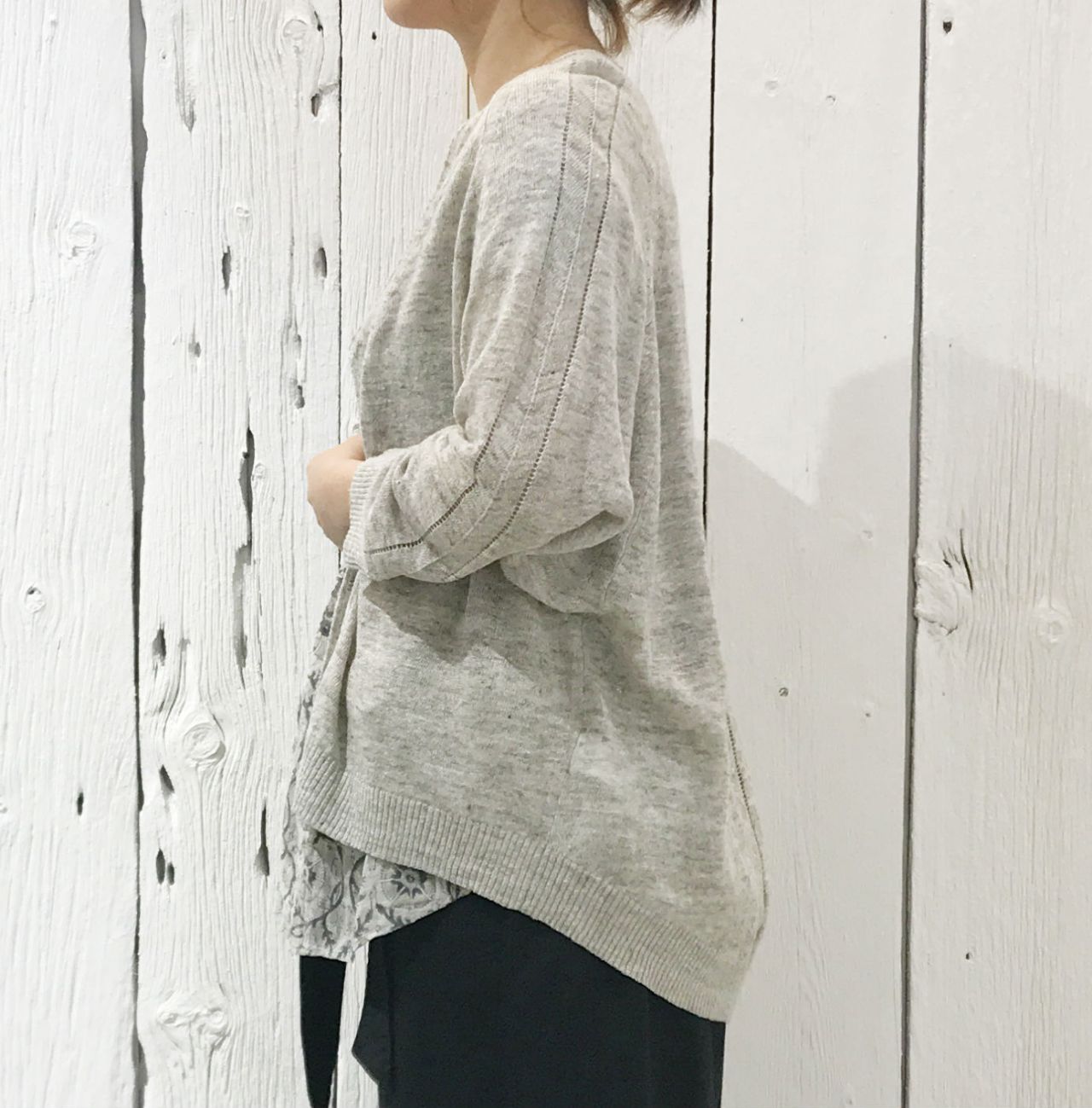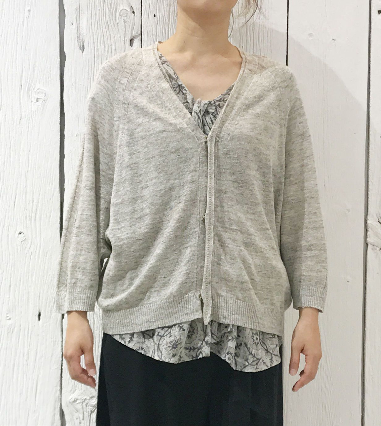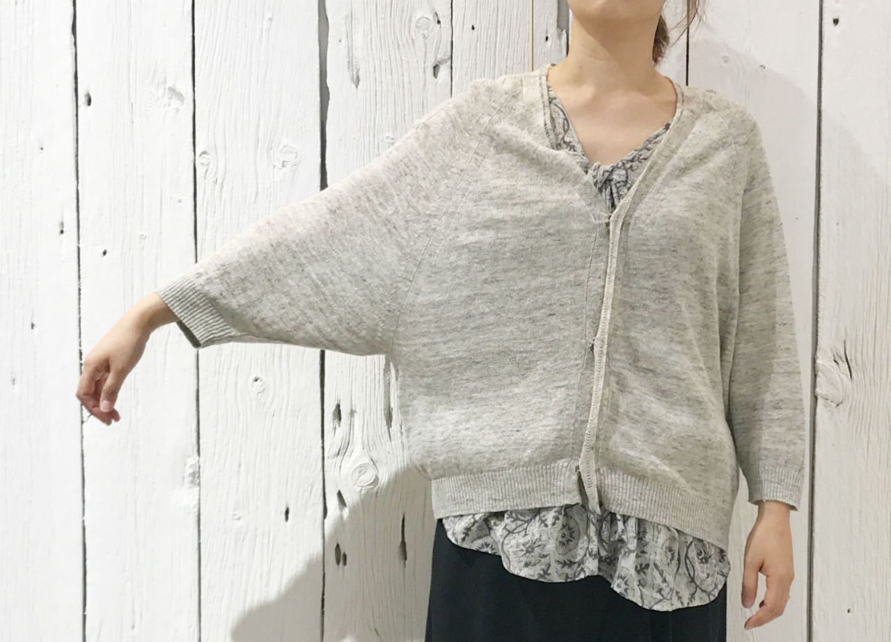 ドルマンスリーブのゆったりしたカーディガンも、新作。