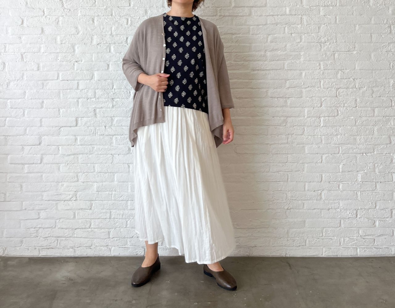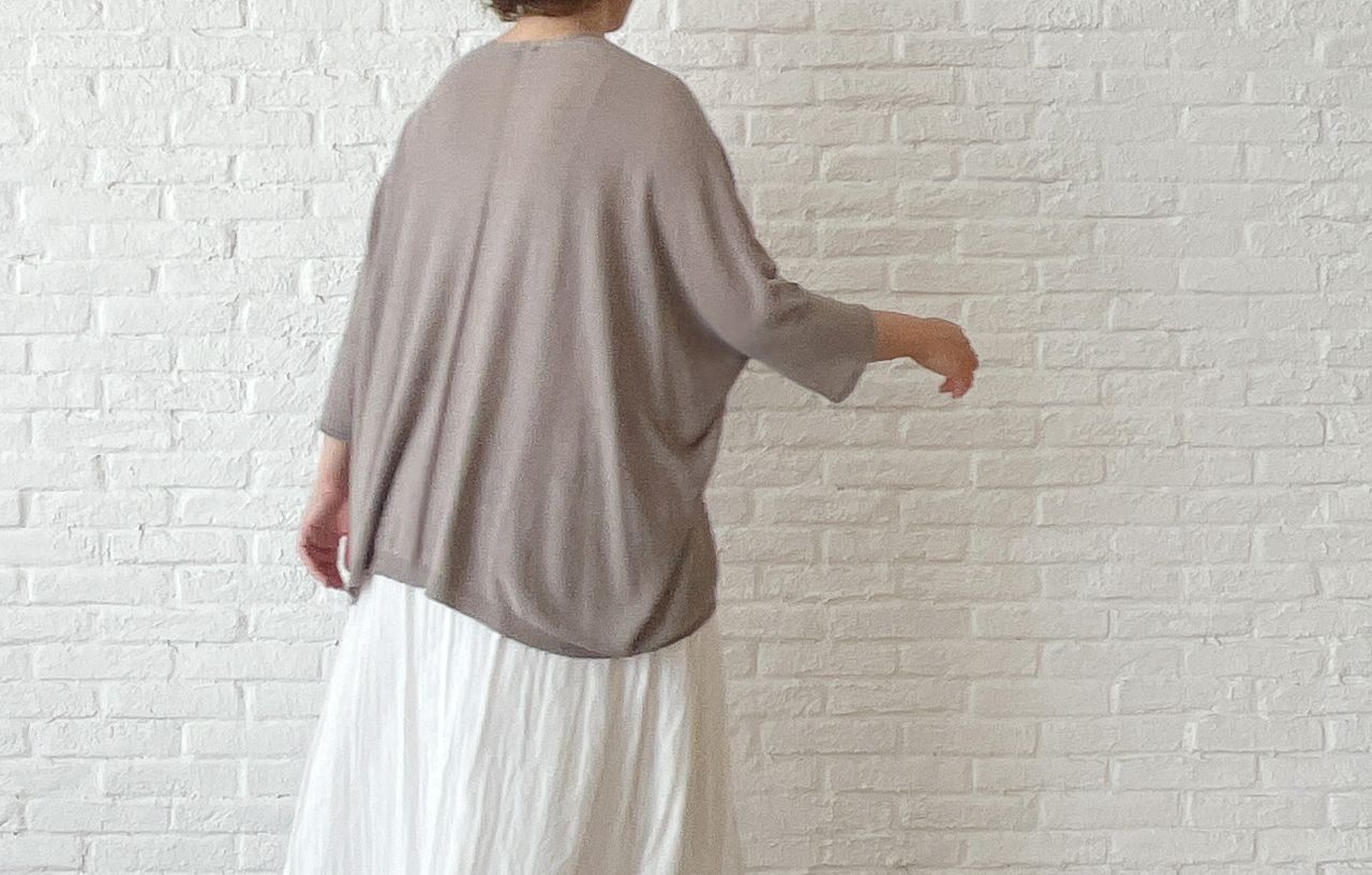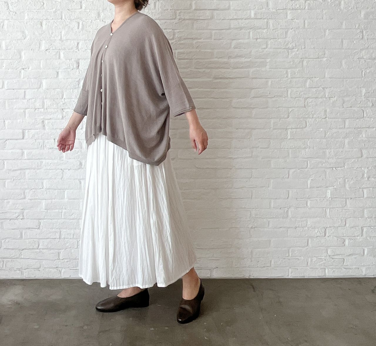 身幅をたっぷりとっていて、着用時のサイドのドレープ感が綺麗にでるシルエット。