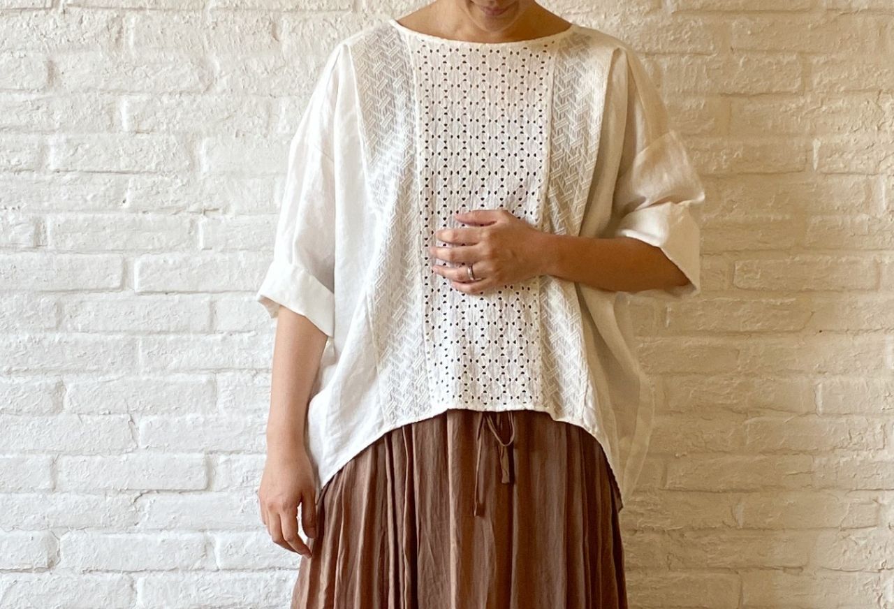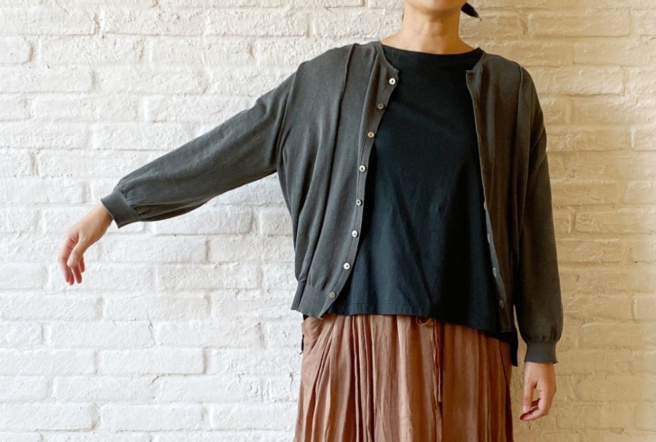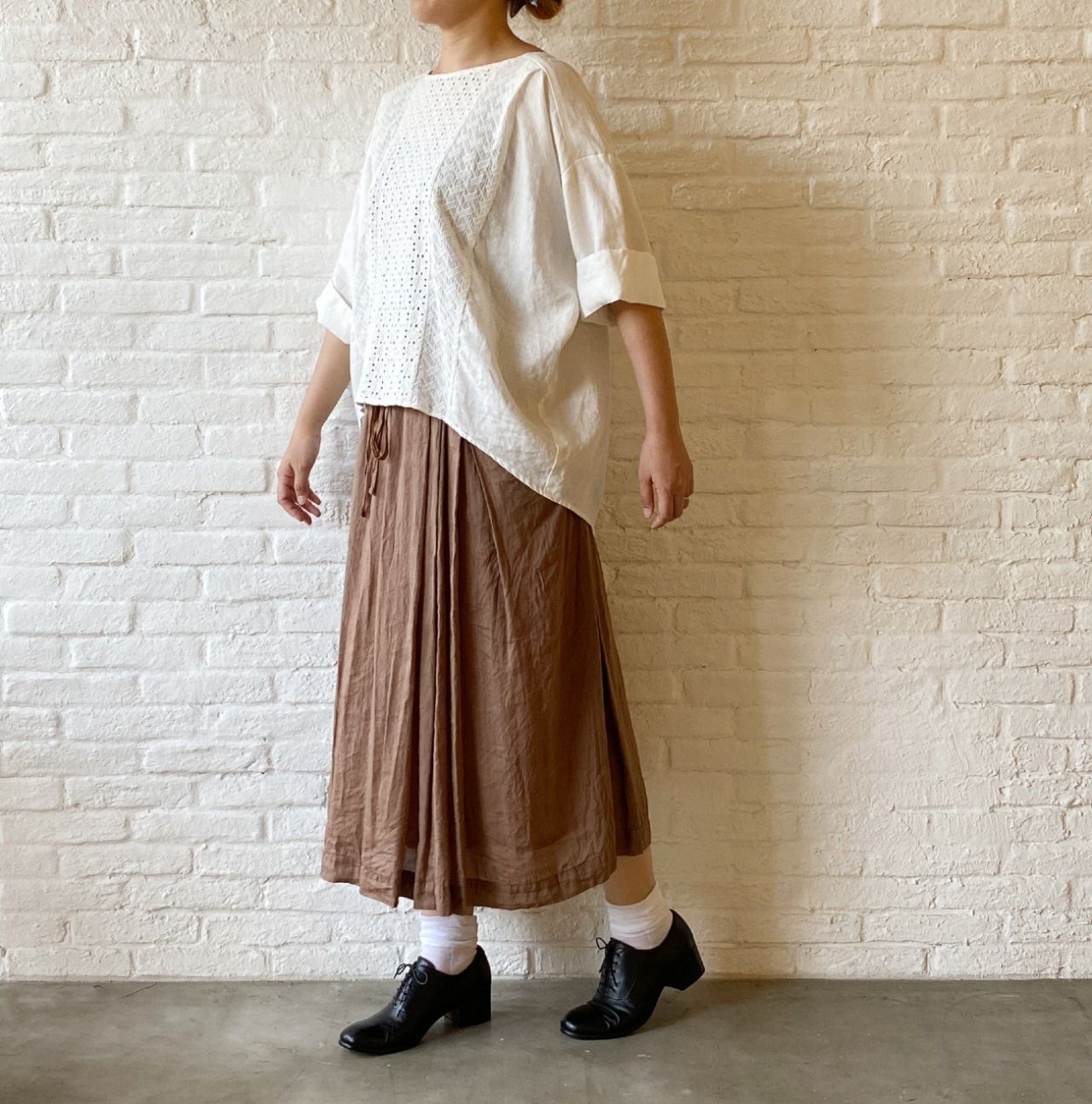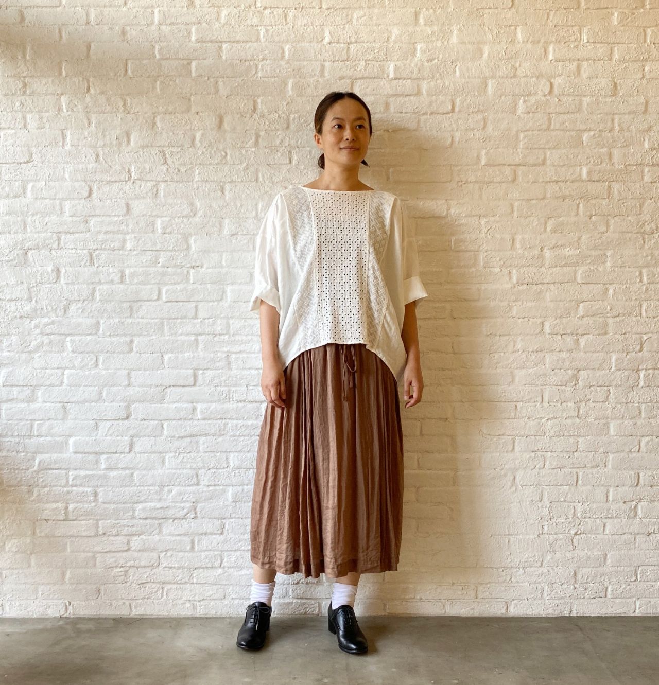 本日の「BROWN」アイテムは、北フランス・パドカレ地方の煉瓦で染めたロングスカートで、着回しコーディネートです。