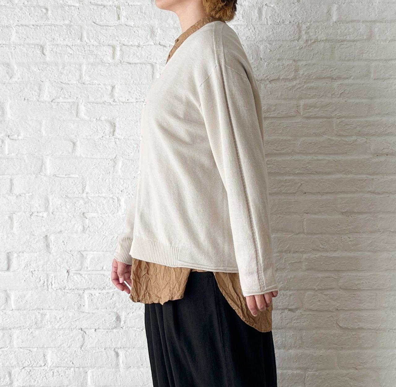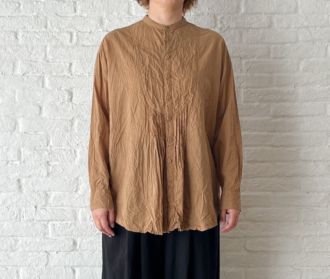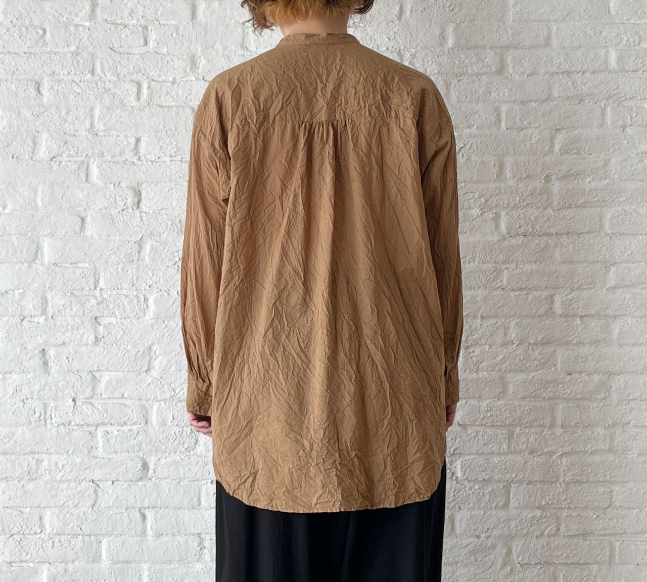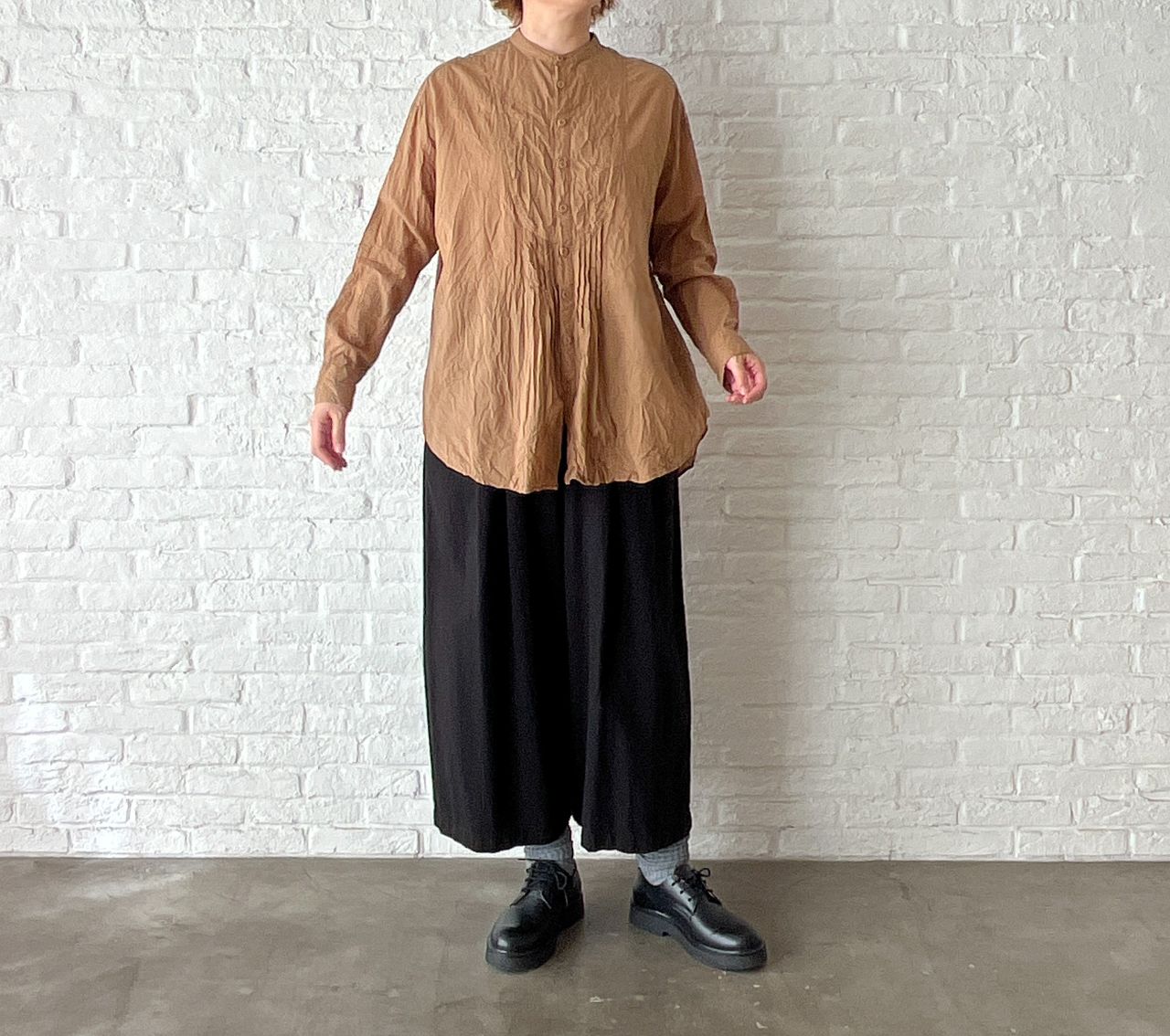 肌に馴染むような色で、着合わせしやすいブラウスです。