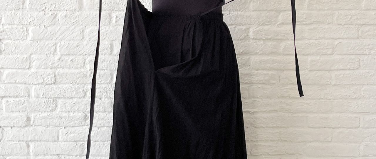 ただ結ぶだけですと、長めのウエスト紐が垂れてポイントになります。