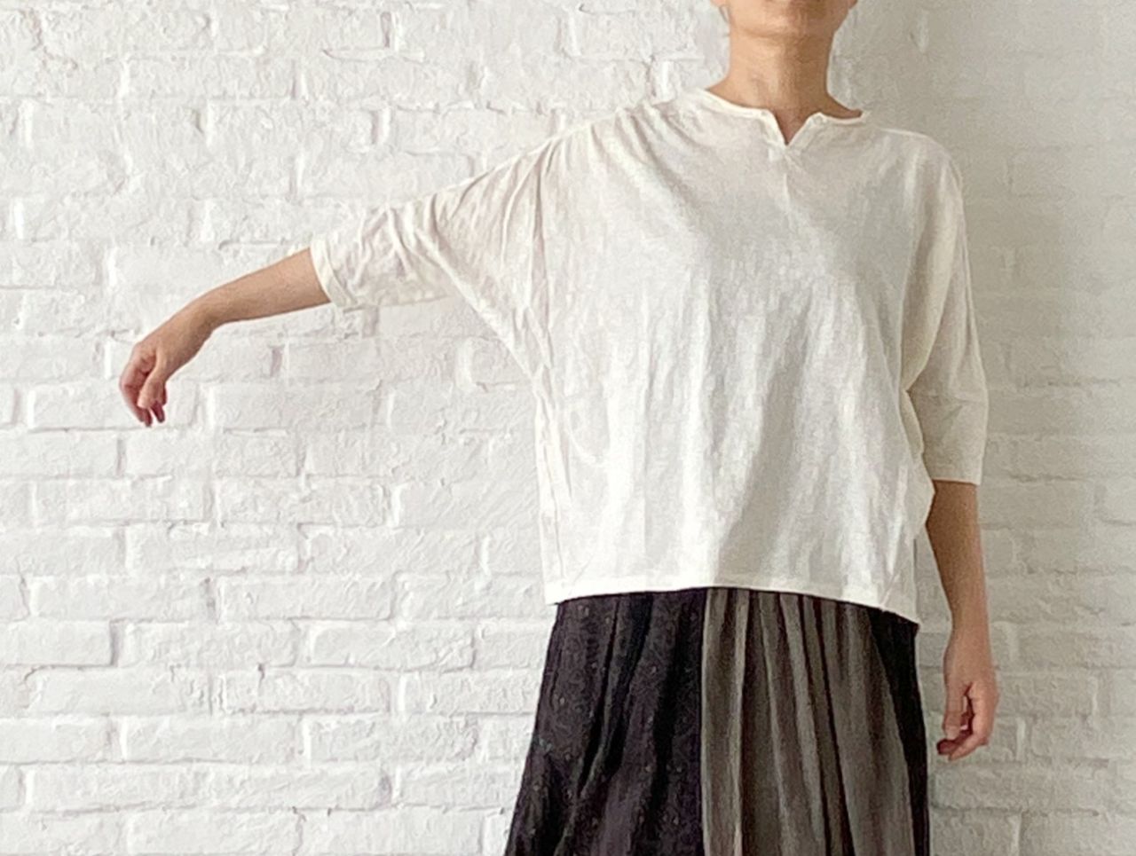 ドルマンスリーブなので、身幅がゆったりしたサイズ感です。