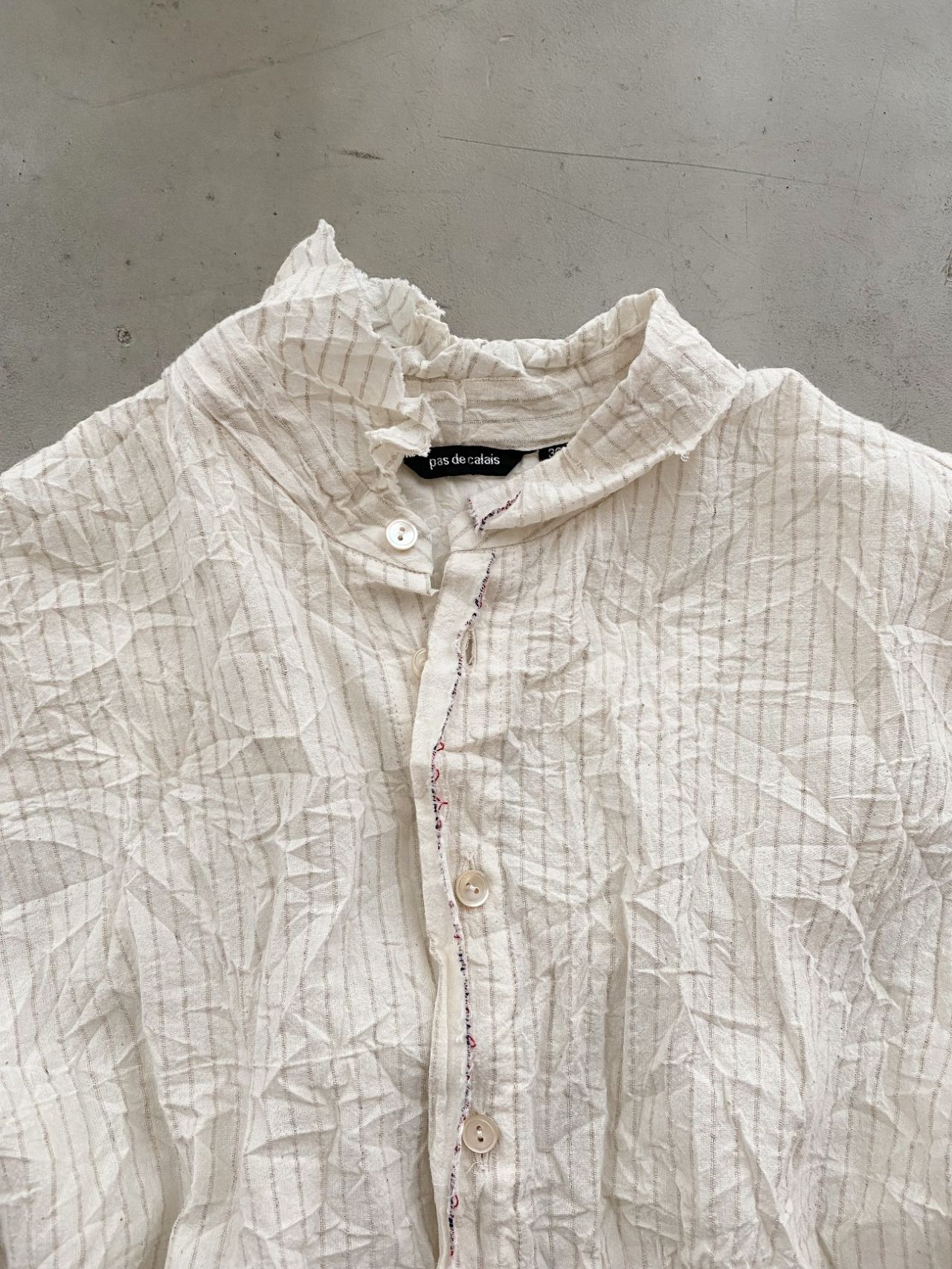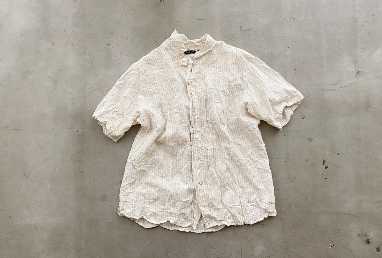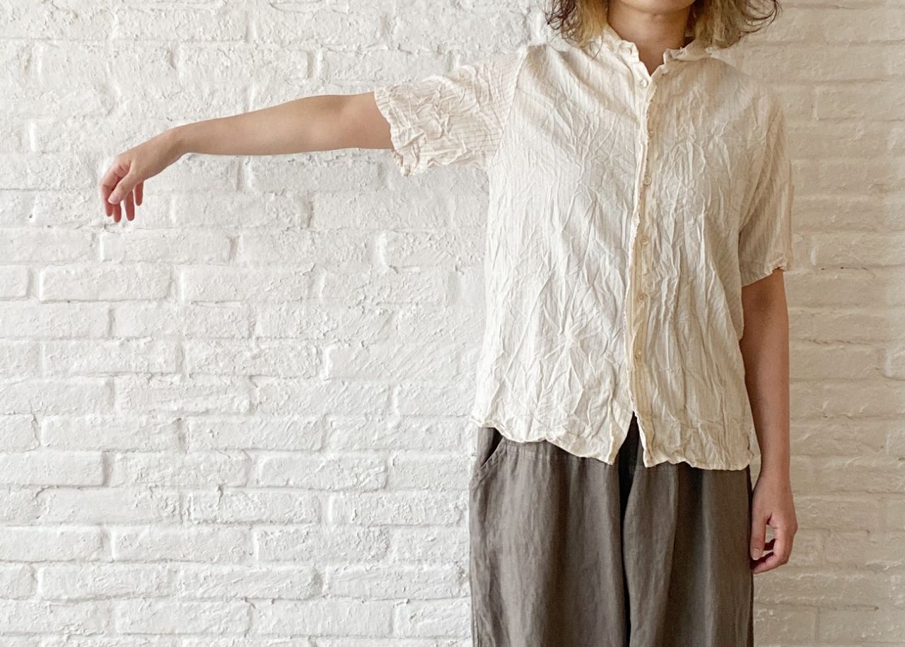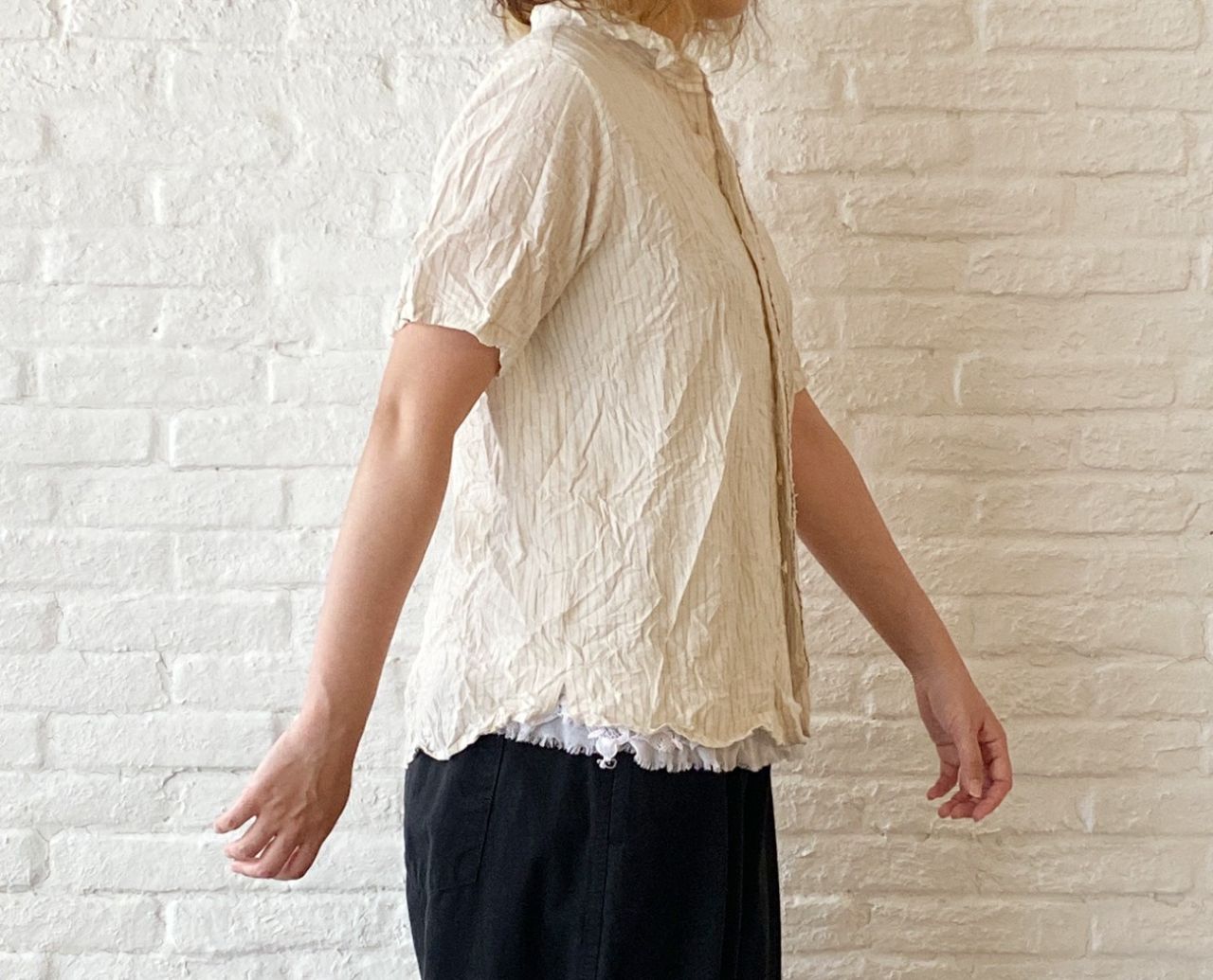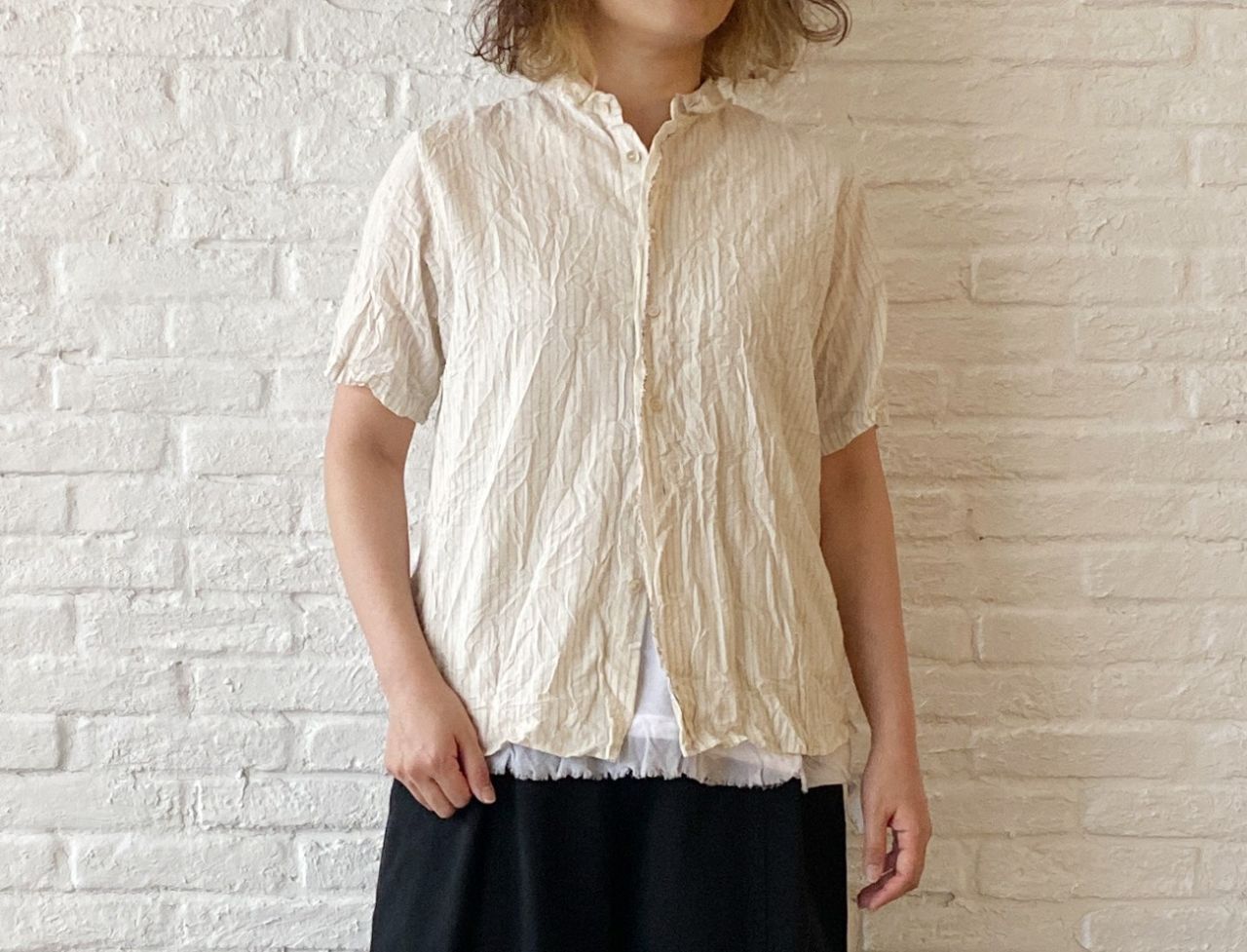 ストライプが入ったブラウスにギュッとシワを施しました。