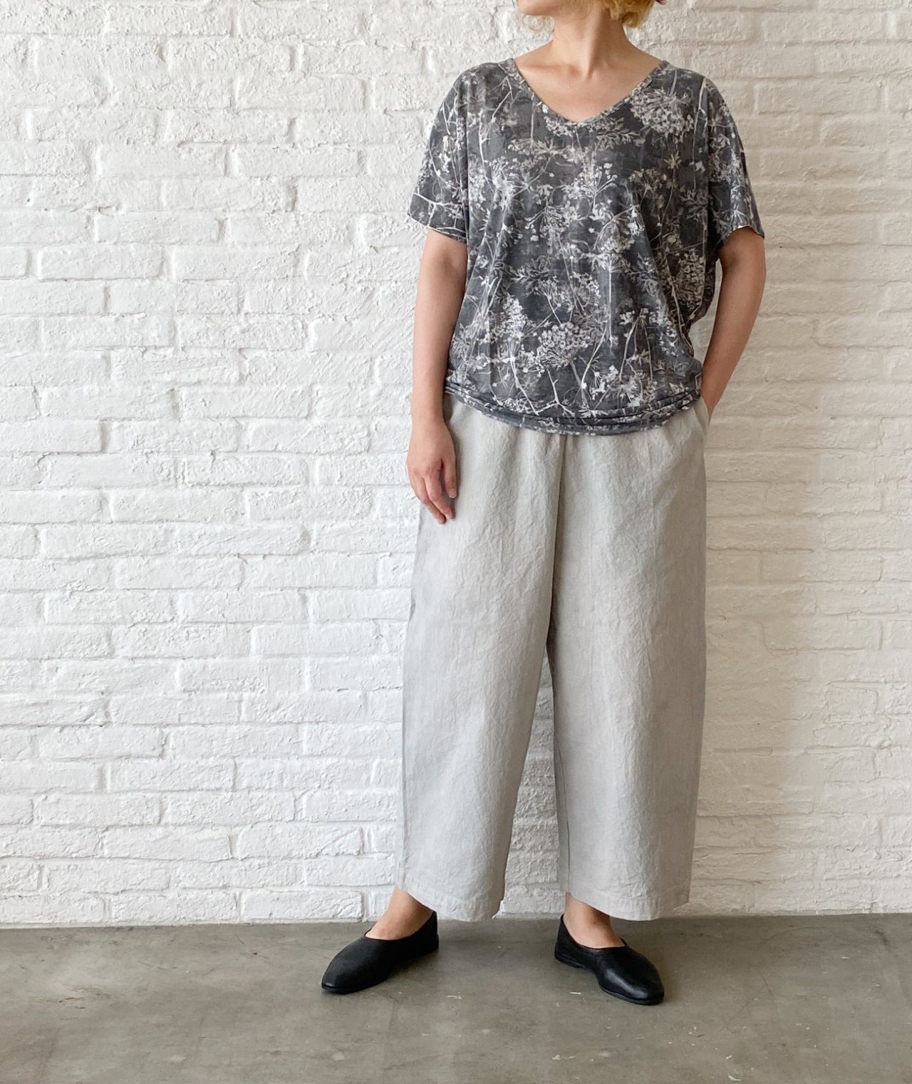 no.1434【30%OFF】Clear flowerプリント天竺 スラウチプルオーバー