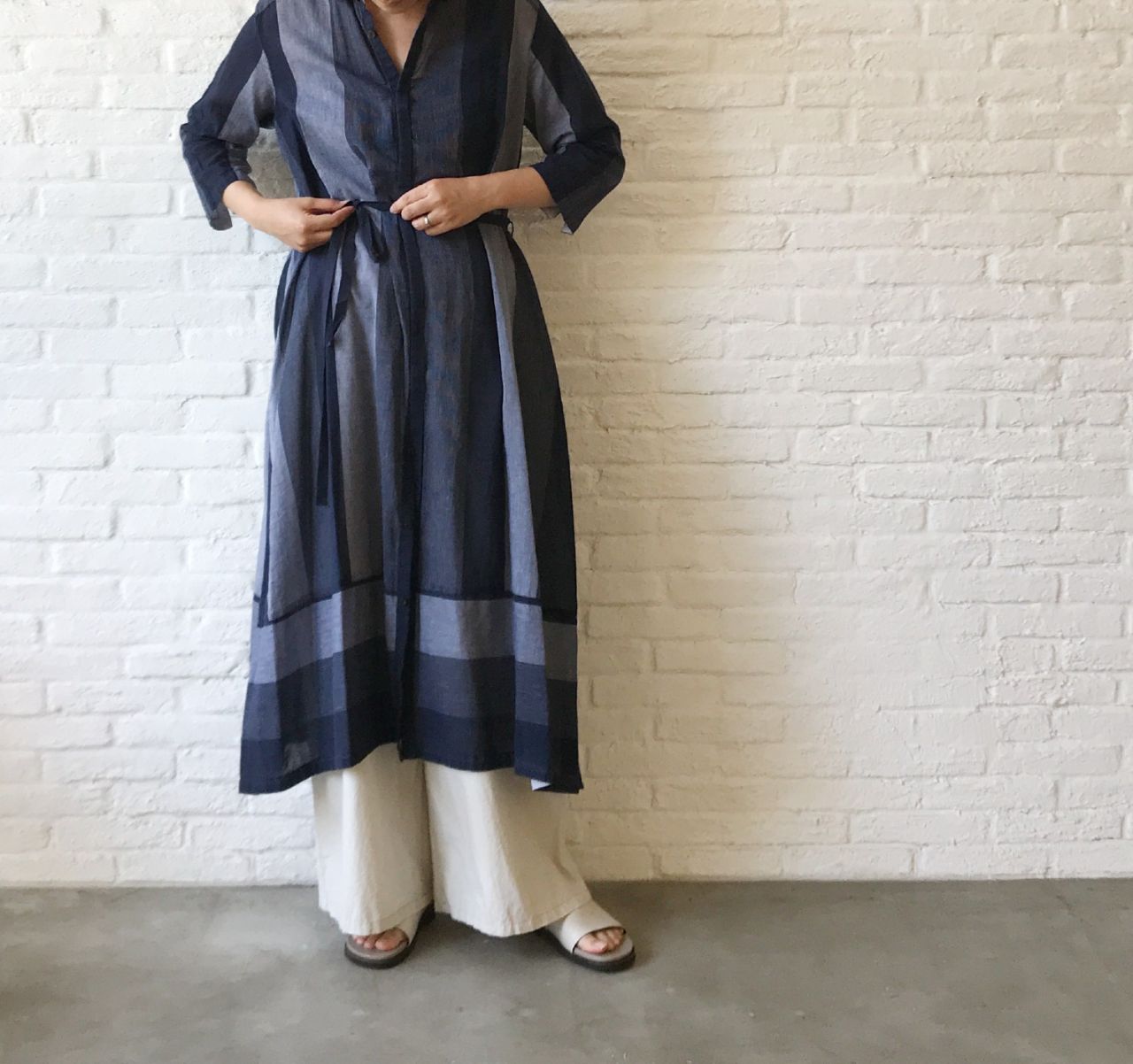 少し短めの袖丈に、サラッとした肌触りのシャツワンピース。