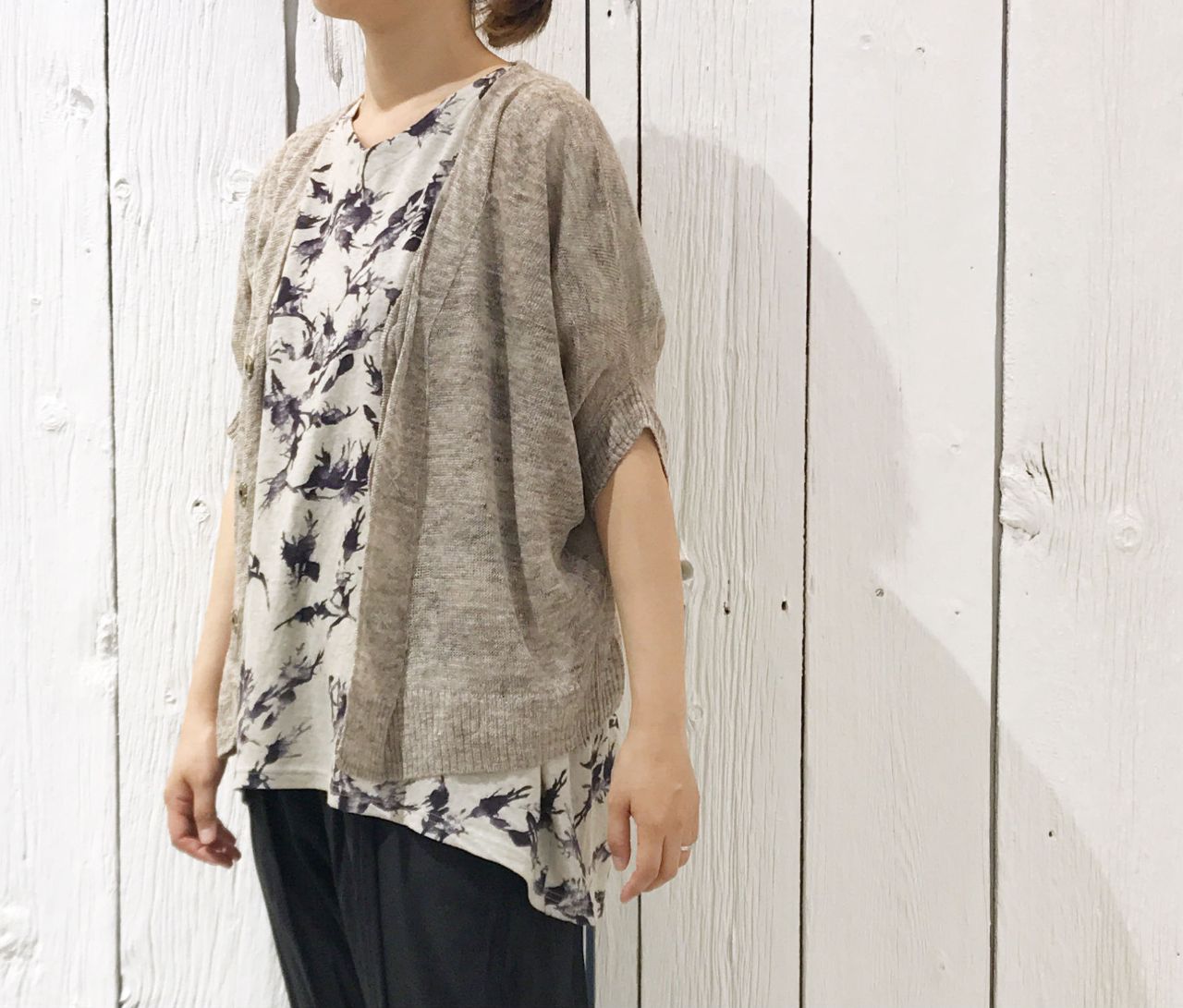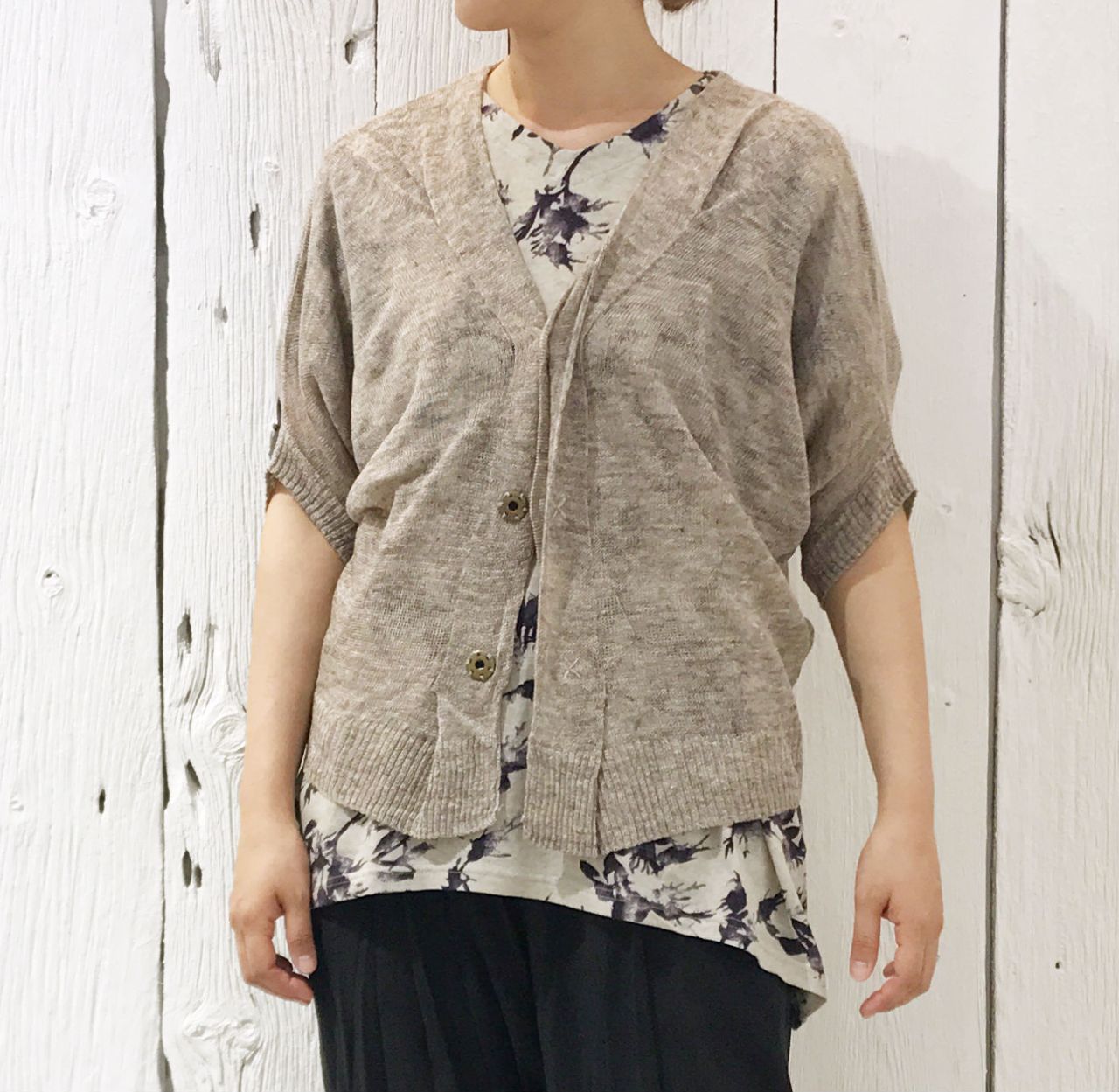 甘く編んでいるので通気性も良い、コンパクトなカーディガンです。
