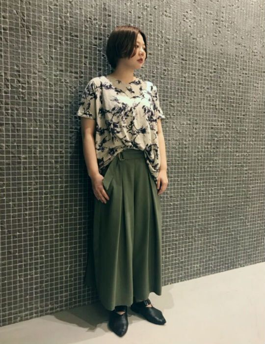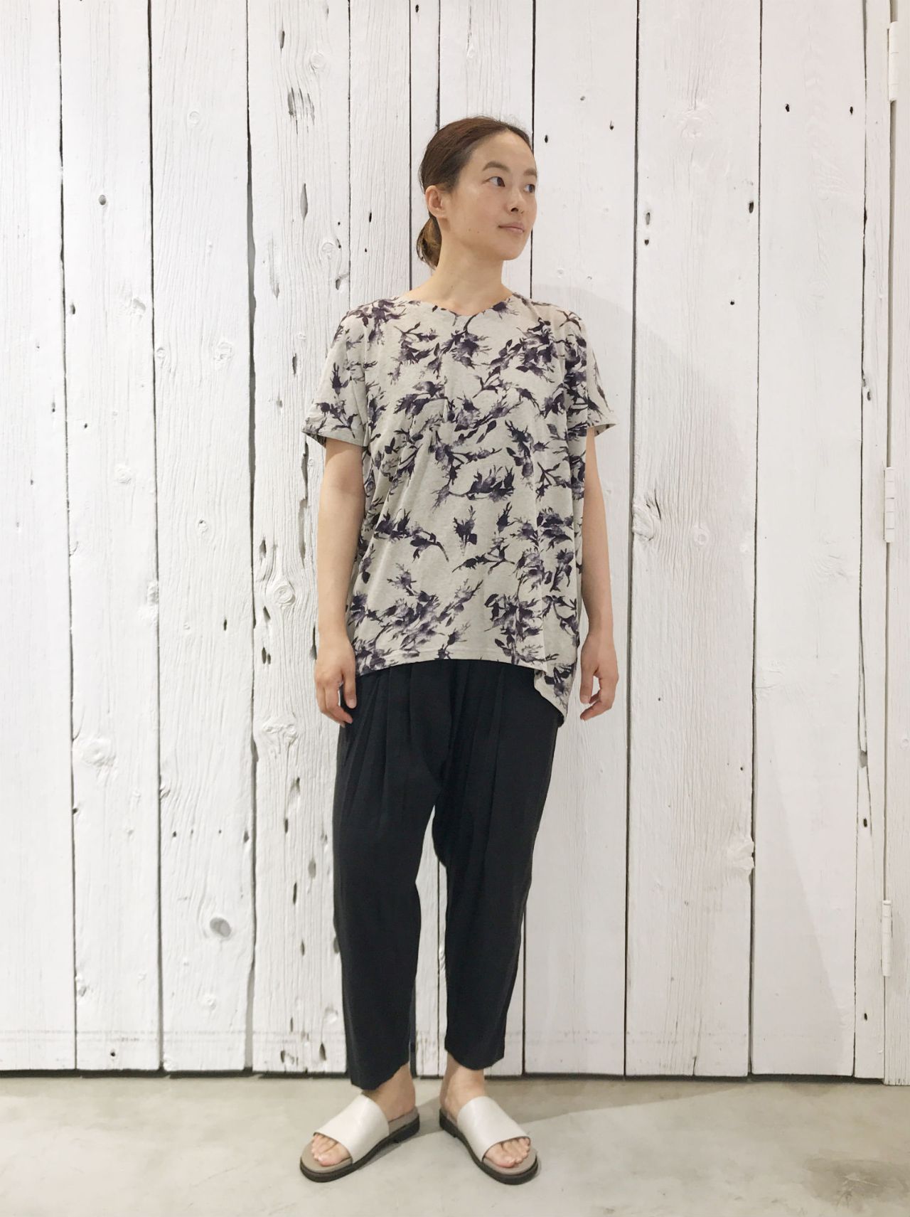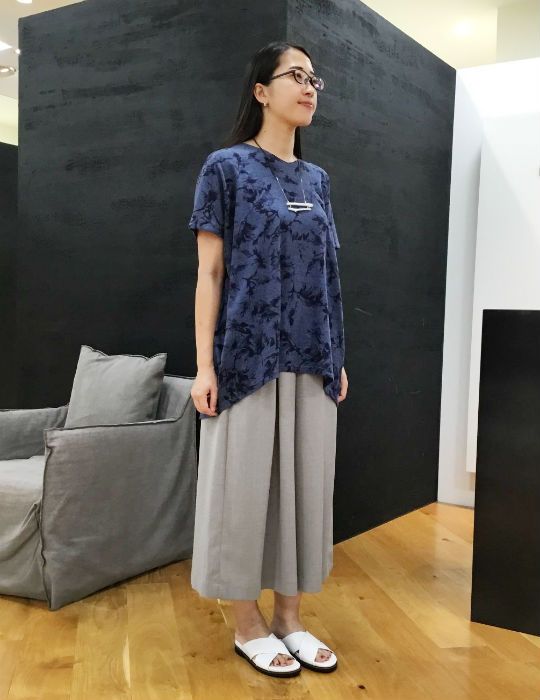 四角い形を着ていただくと、身幅がゆったりとした半袖カットソーに。