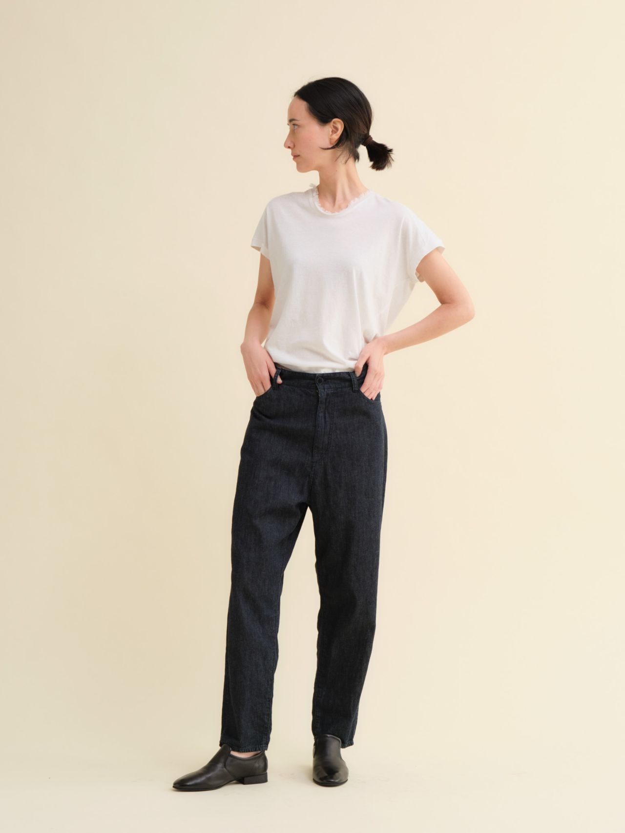 従来のストーンウォッシュは多量の石を使用するため過酷な作業だったが、ドライウォッシュは人的災害の軽減も実現されている、地球にやさしいサスティナブル加工。