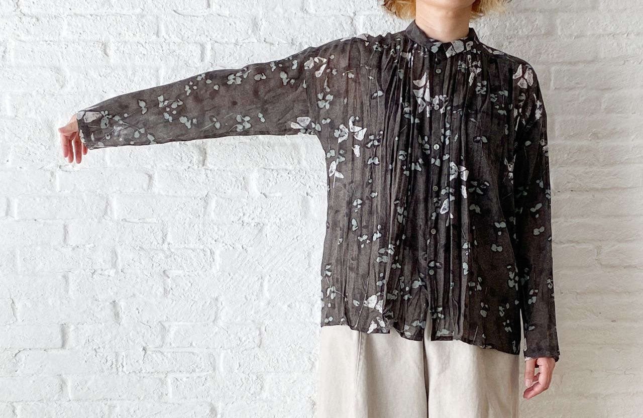 インナーに着たニットやブラウスは『寒椿カプセルコレクション』
