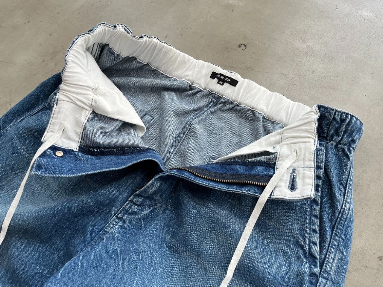 ウエストはゴム+紐調節で、腰周りはゆったりなのでデニムでも履き心地はラクなんです。