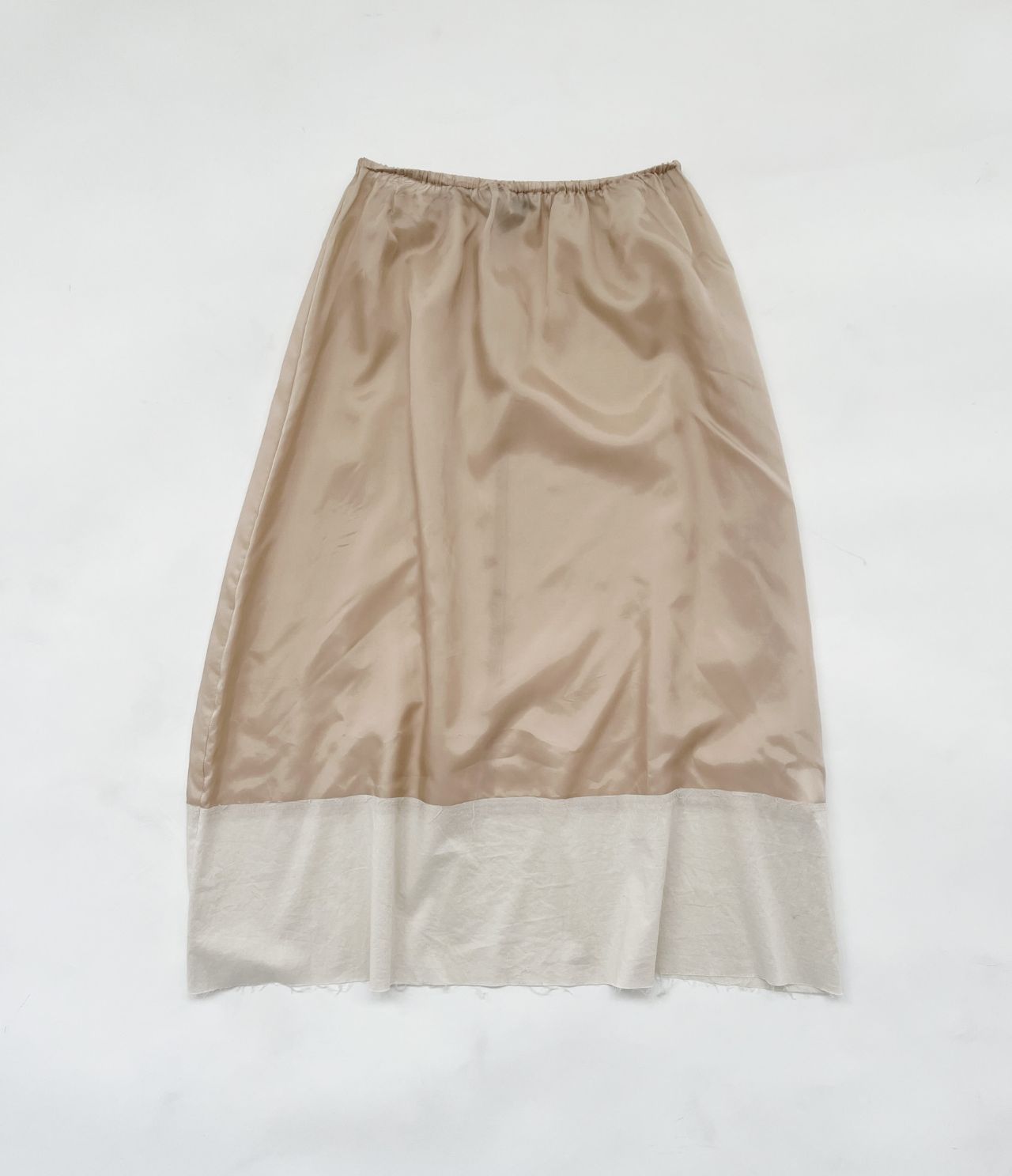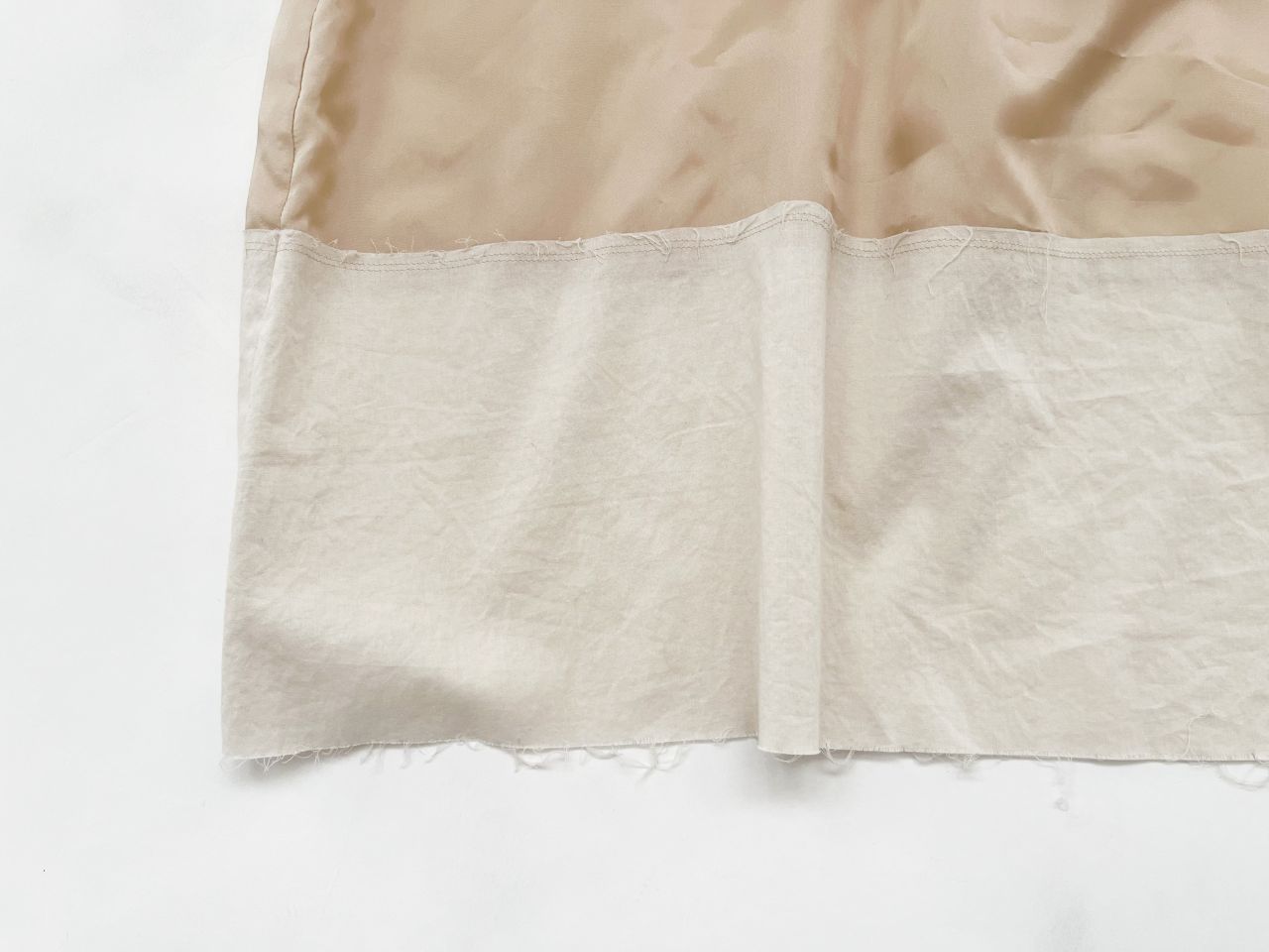 下部には裾をカットオフしたコットンの別地を付けているので、裾から少し出てもおしゃれ感あるデザイン。