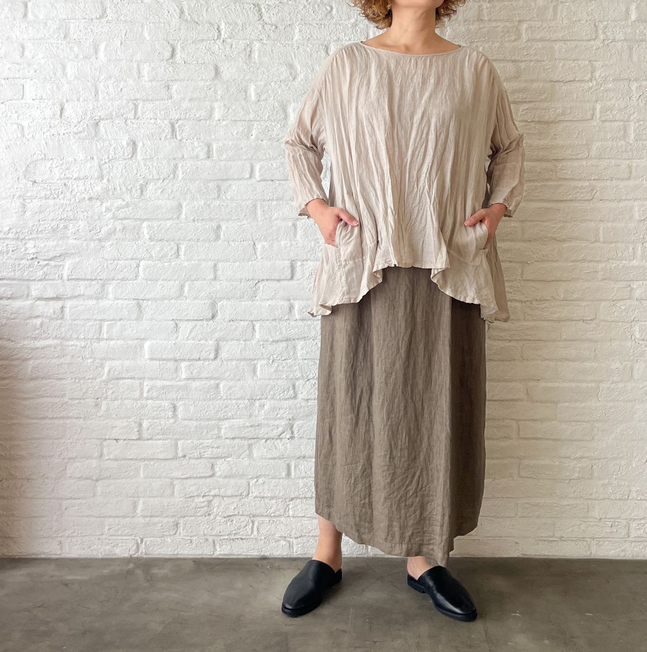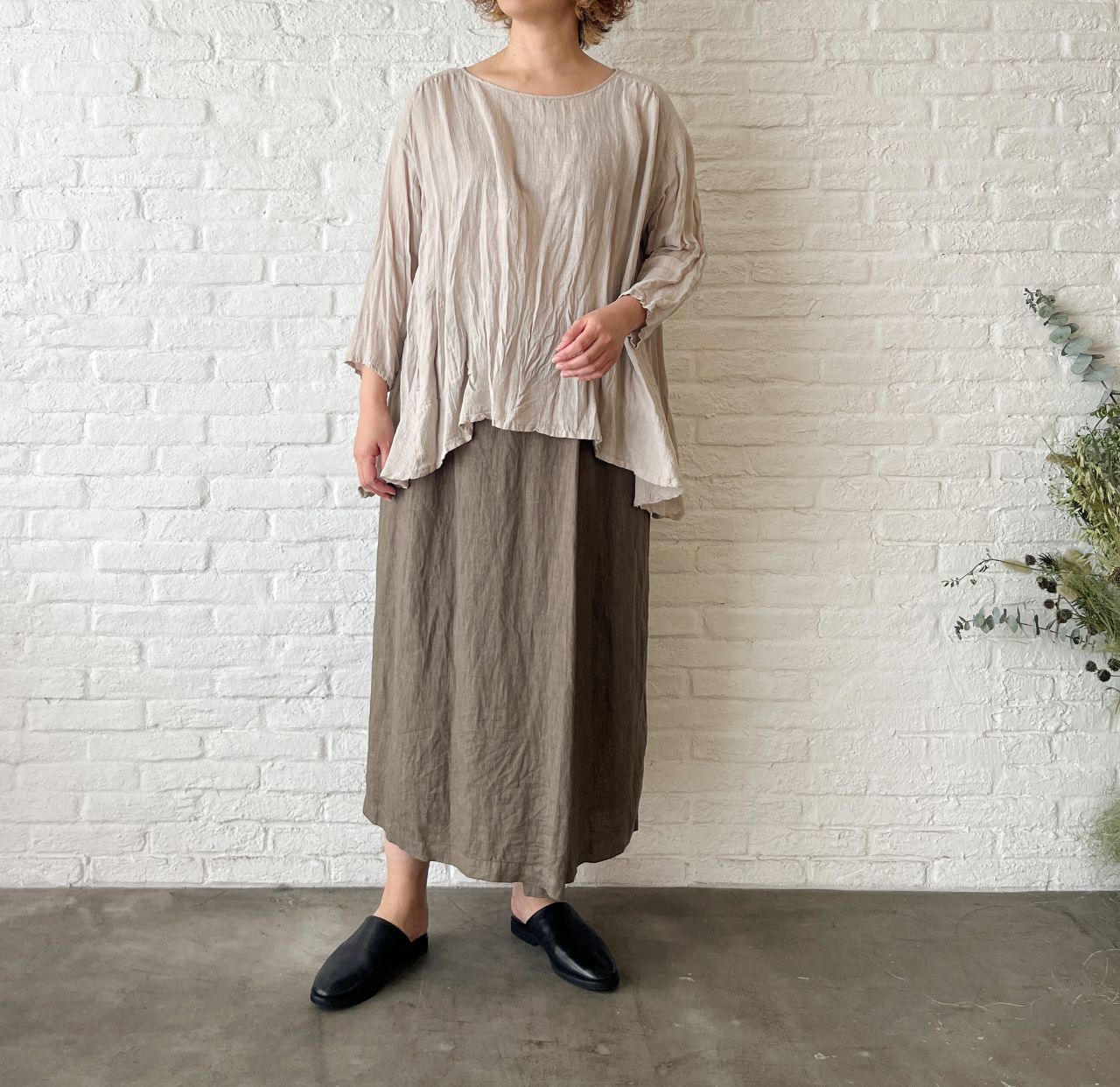 no.7364【W POINT】テンセルリネンハケメ スカート