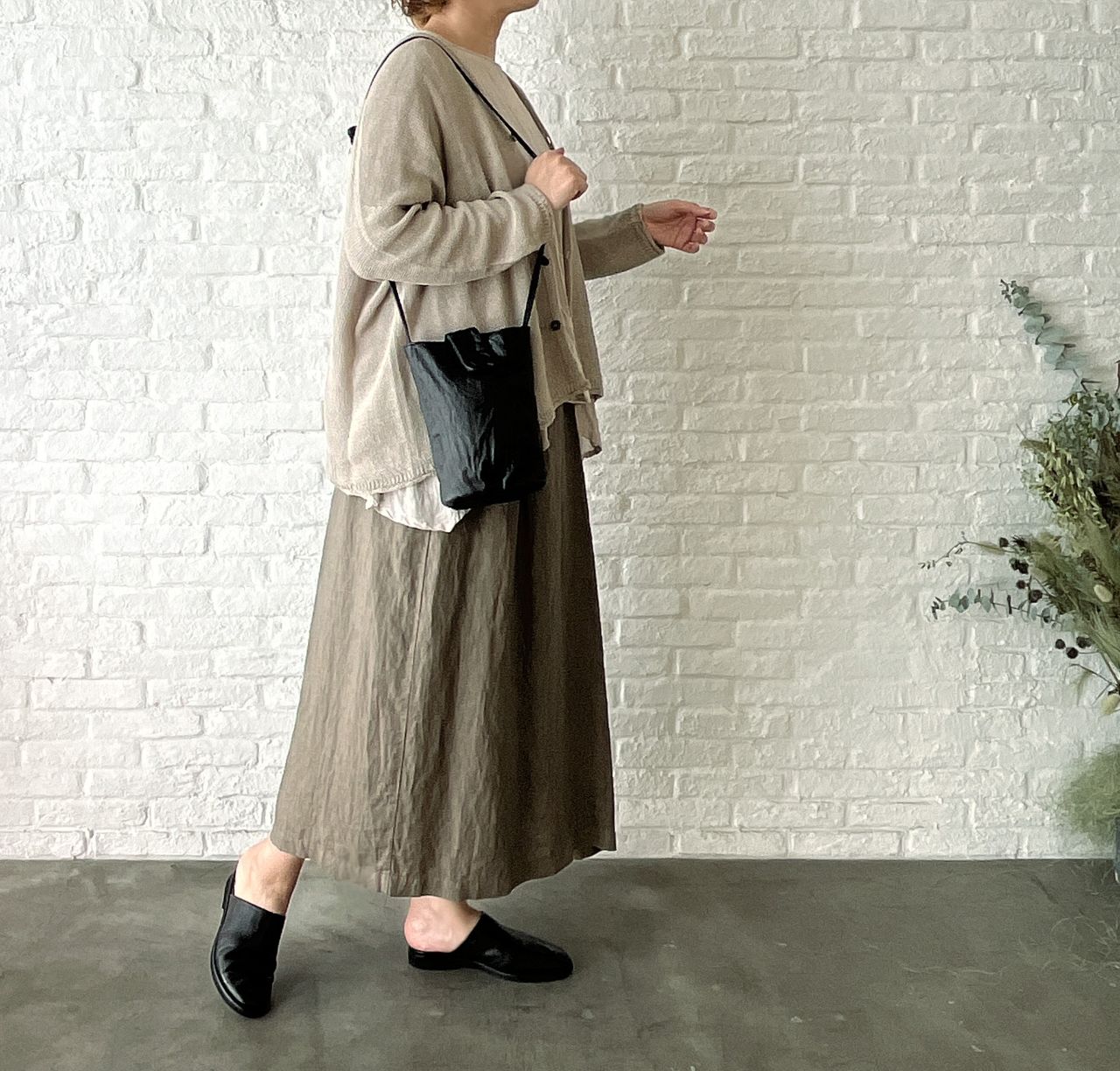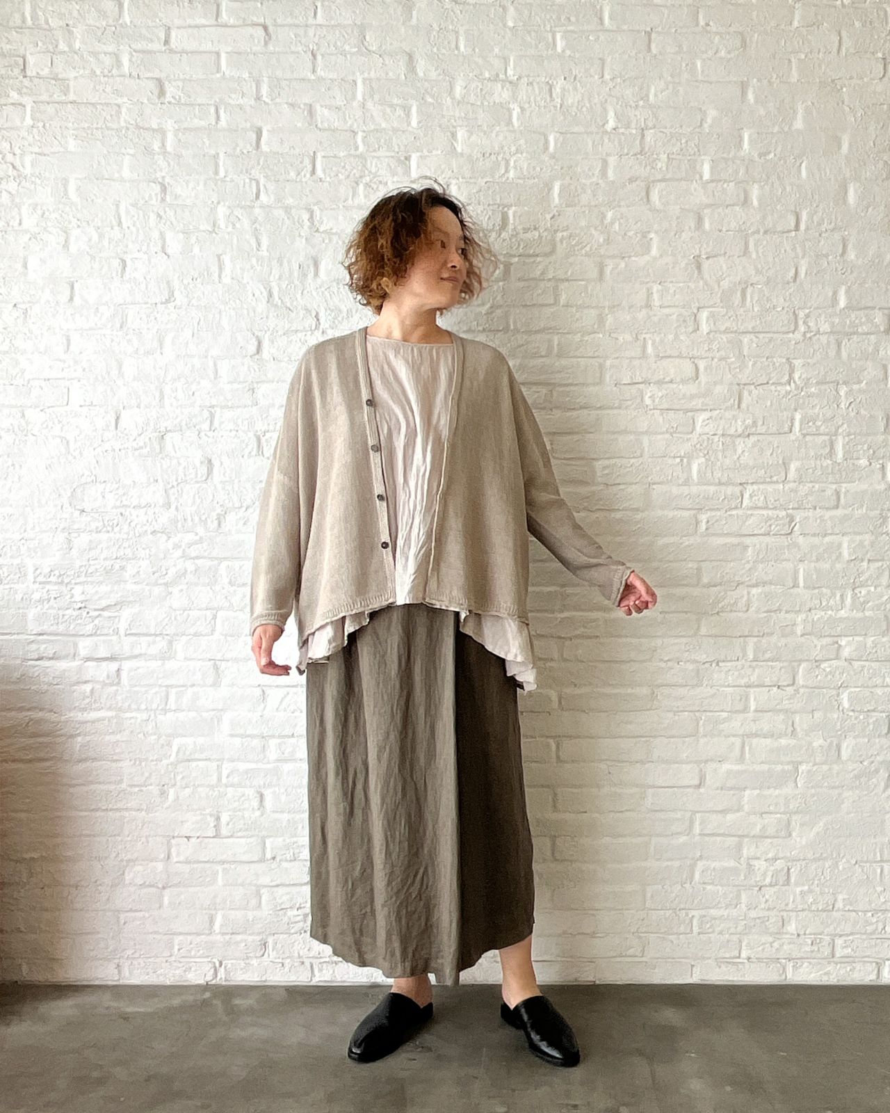 カーキの色味も感じるニュアンスカラー。