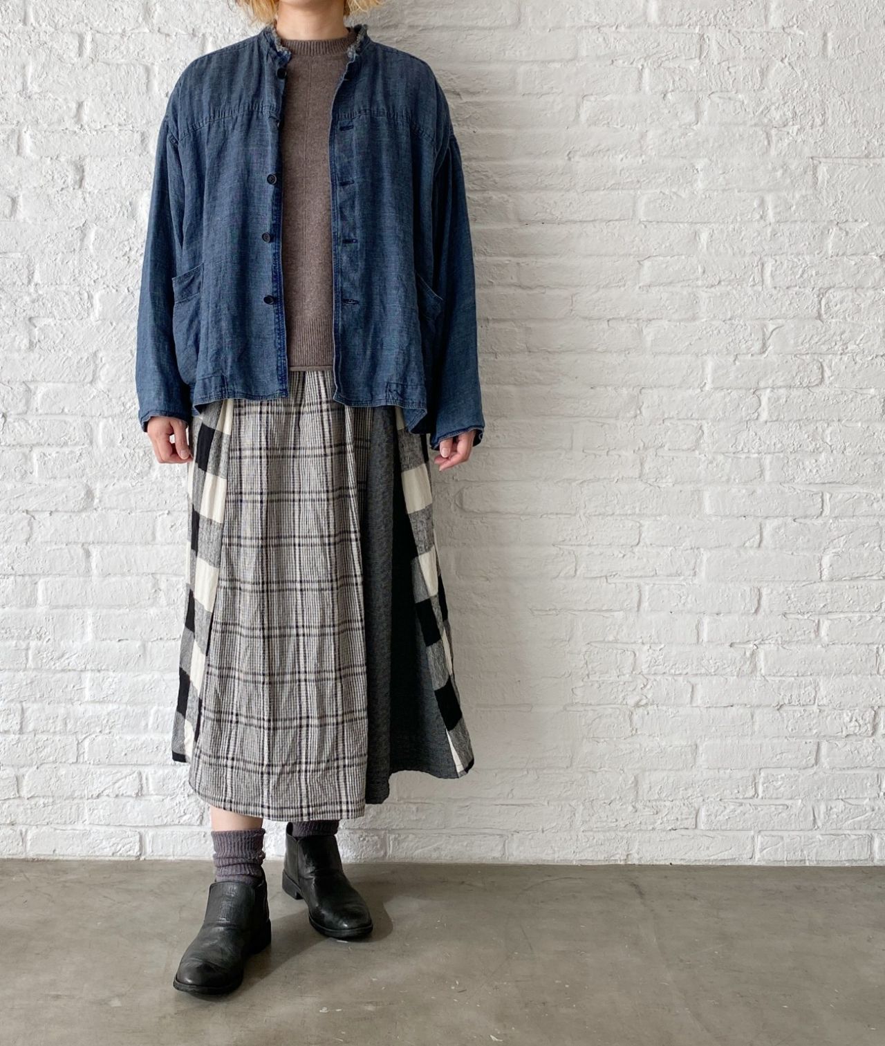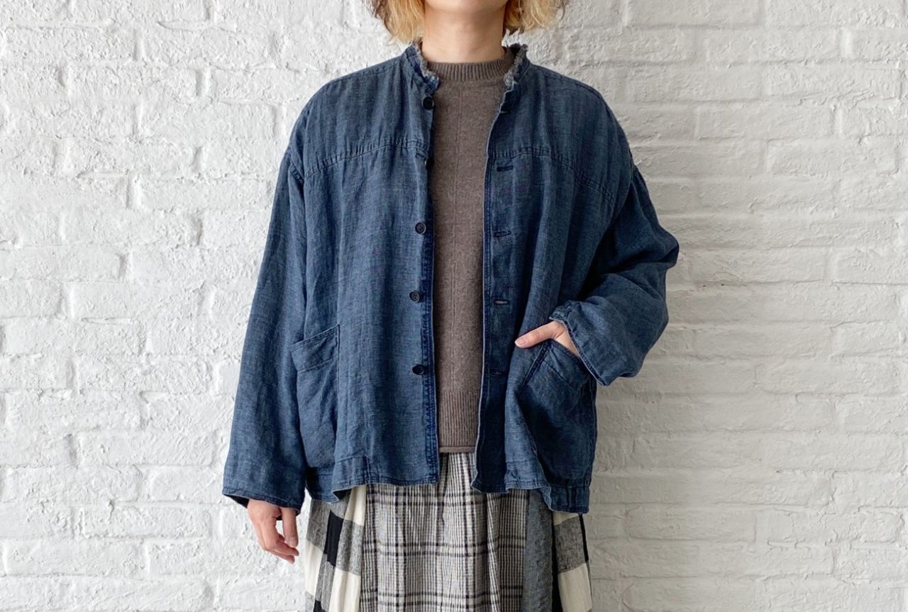 no.3143【W point】リネンデニム ジャケット col.24 インディゴ(着用) ¥62,700